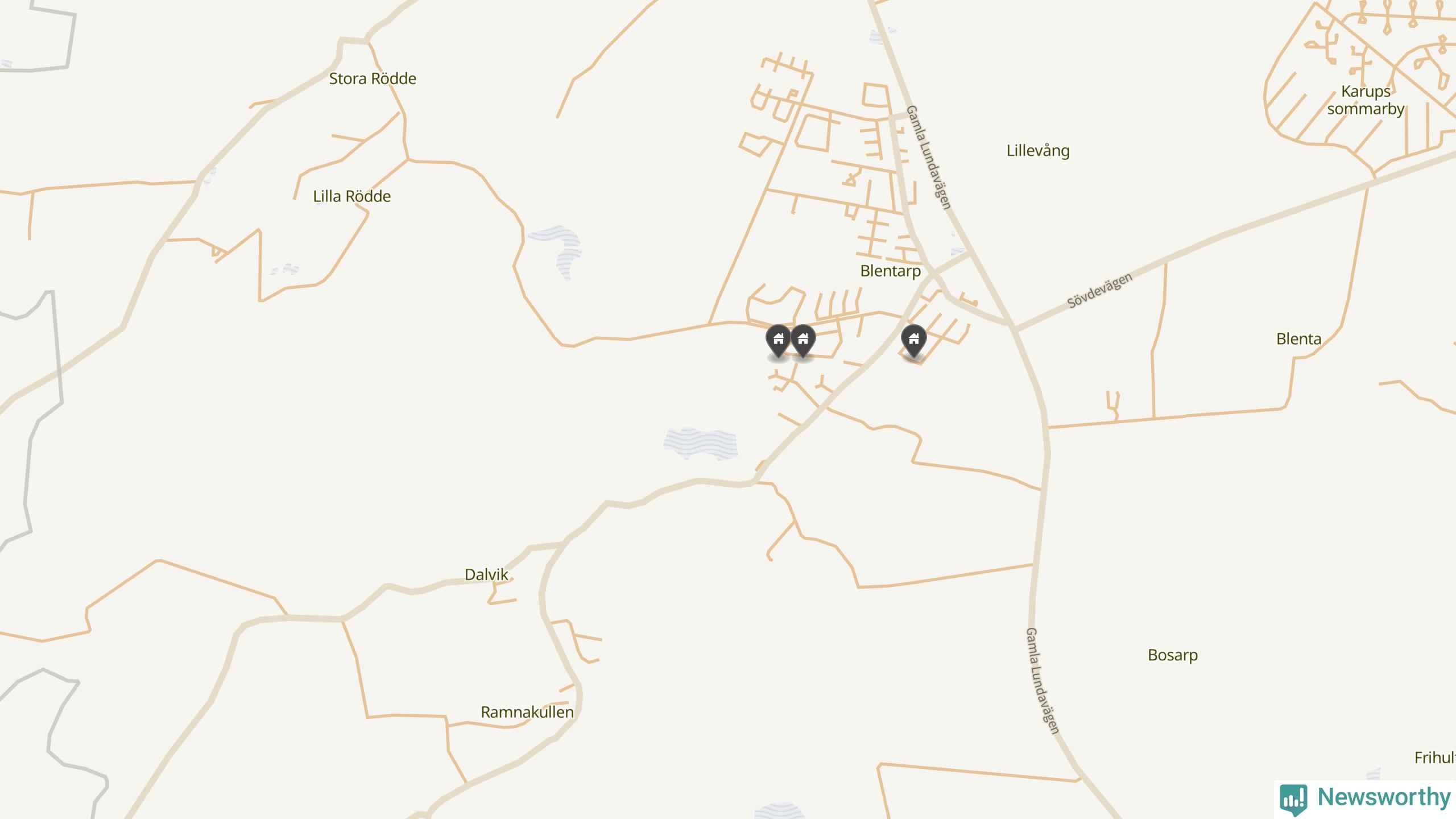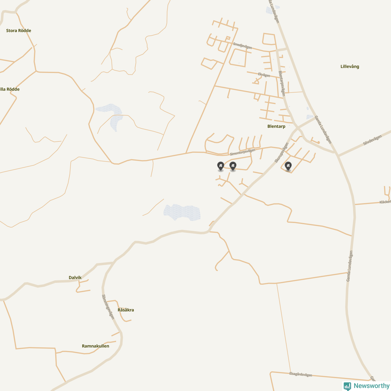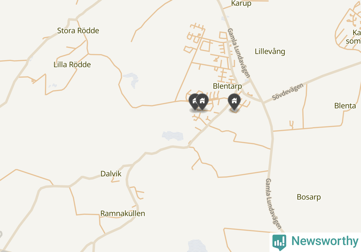 | 98 | Sjöbo Blentarp 17:107 | Slimmingevägen | 3,6 miljoner | 7 430 m² | Visa |