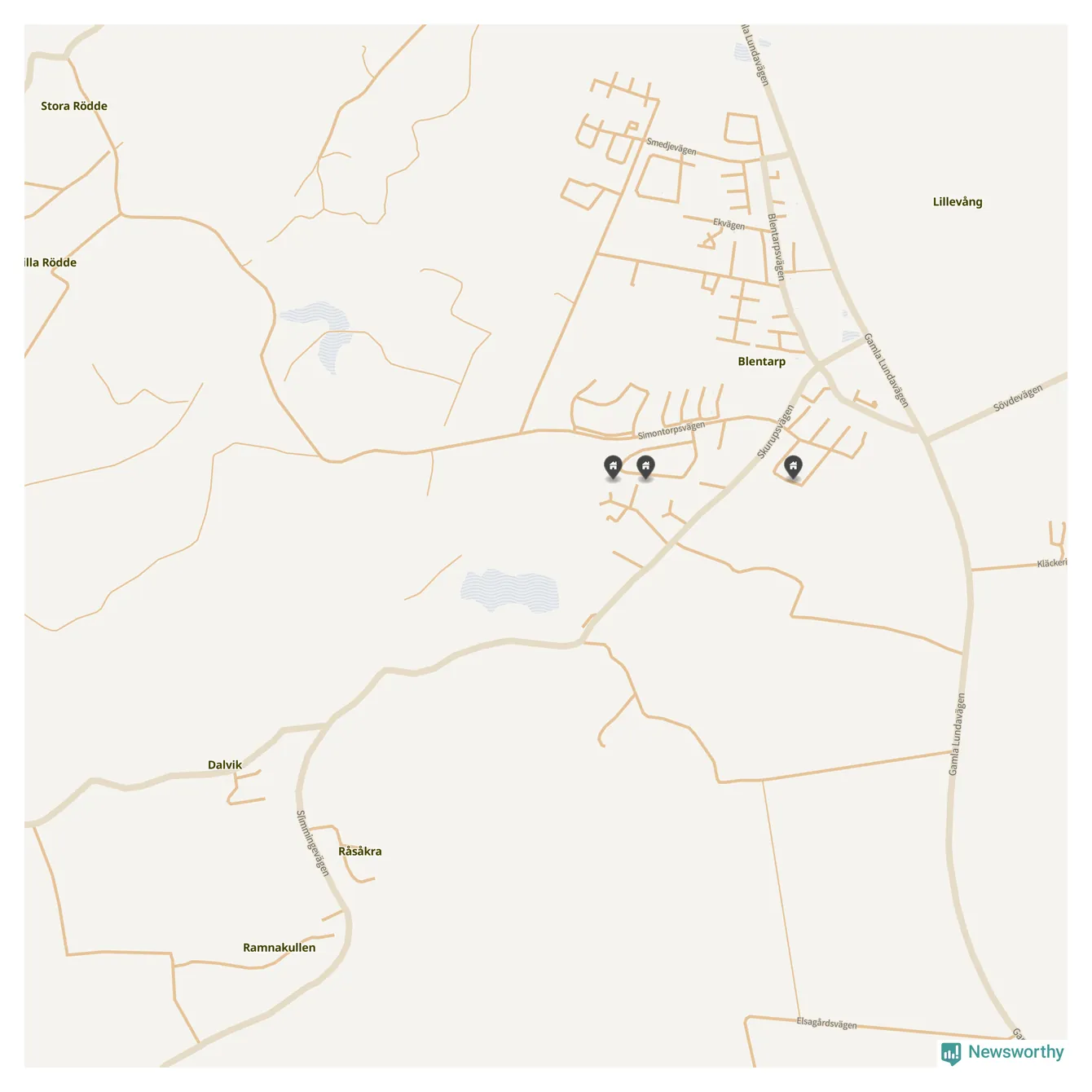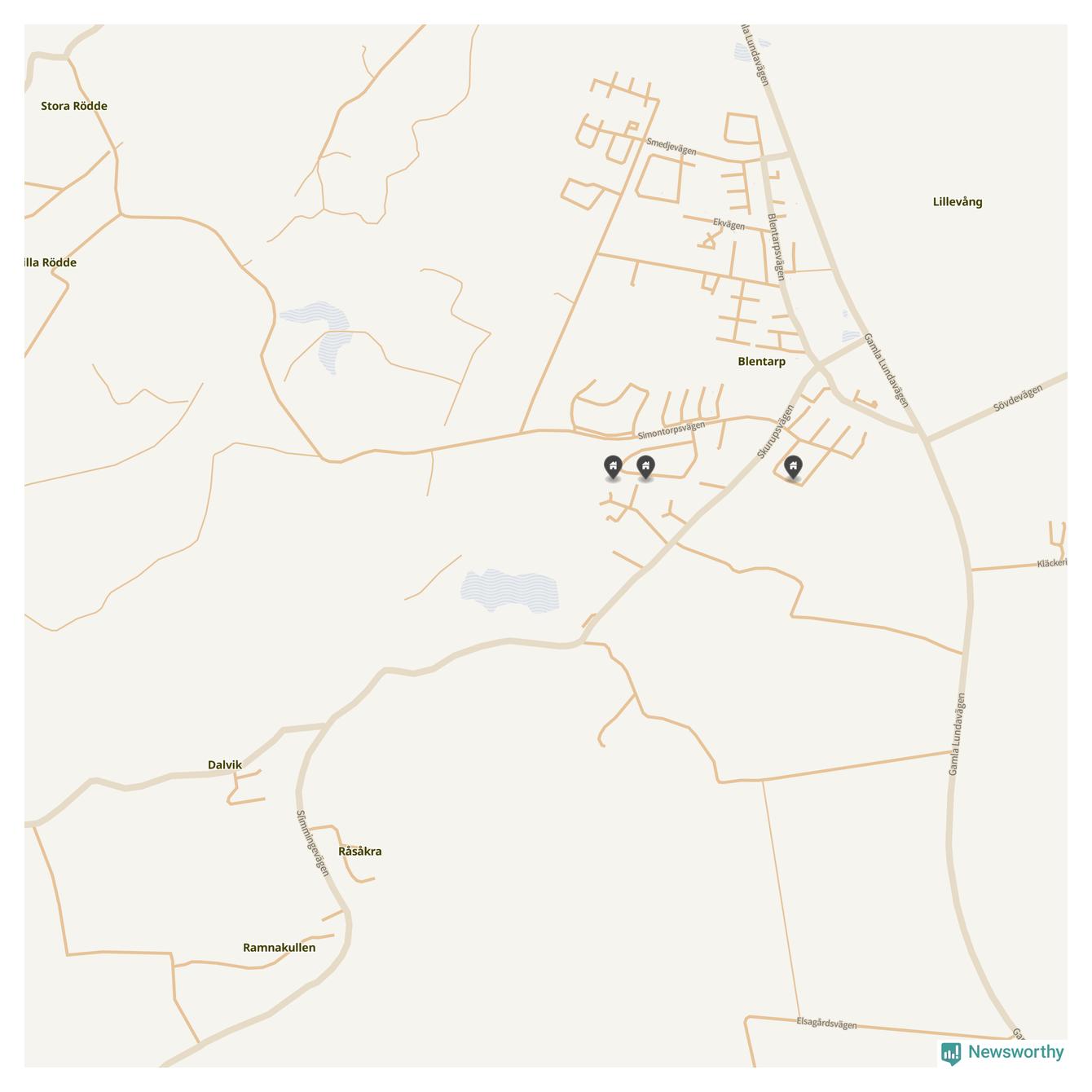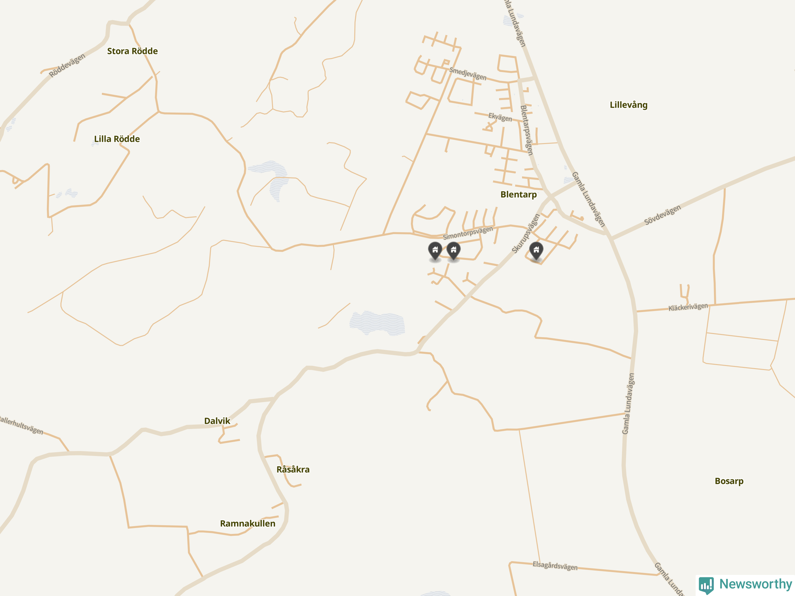 | 98 | Sjöbo Blentarp 17:107 | Slimmingevägen | 3,6 miljoner | 7 430 m² | Visa |