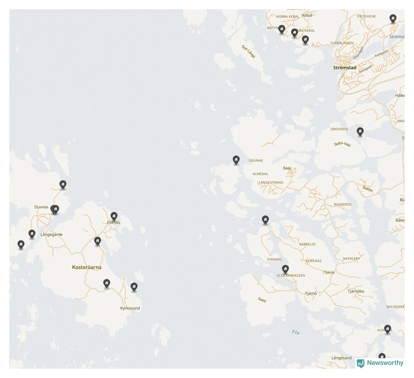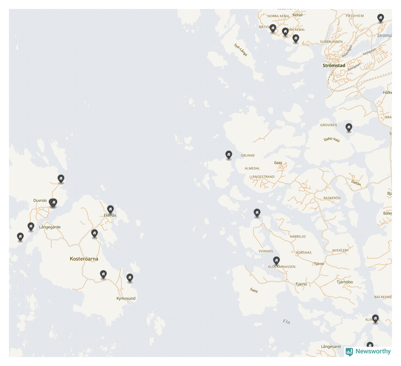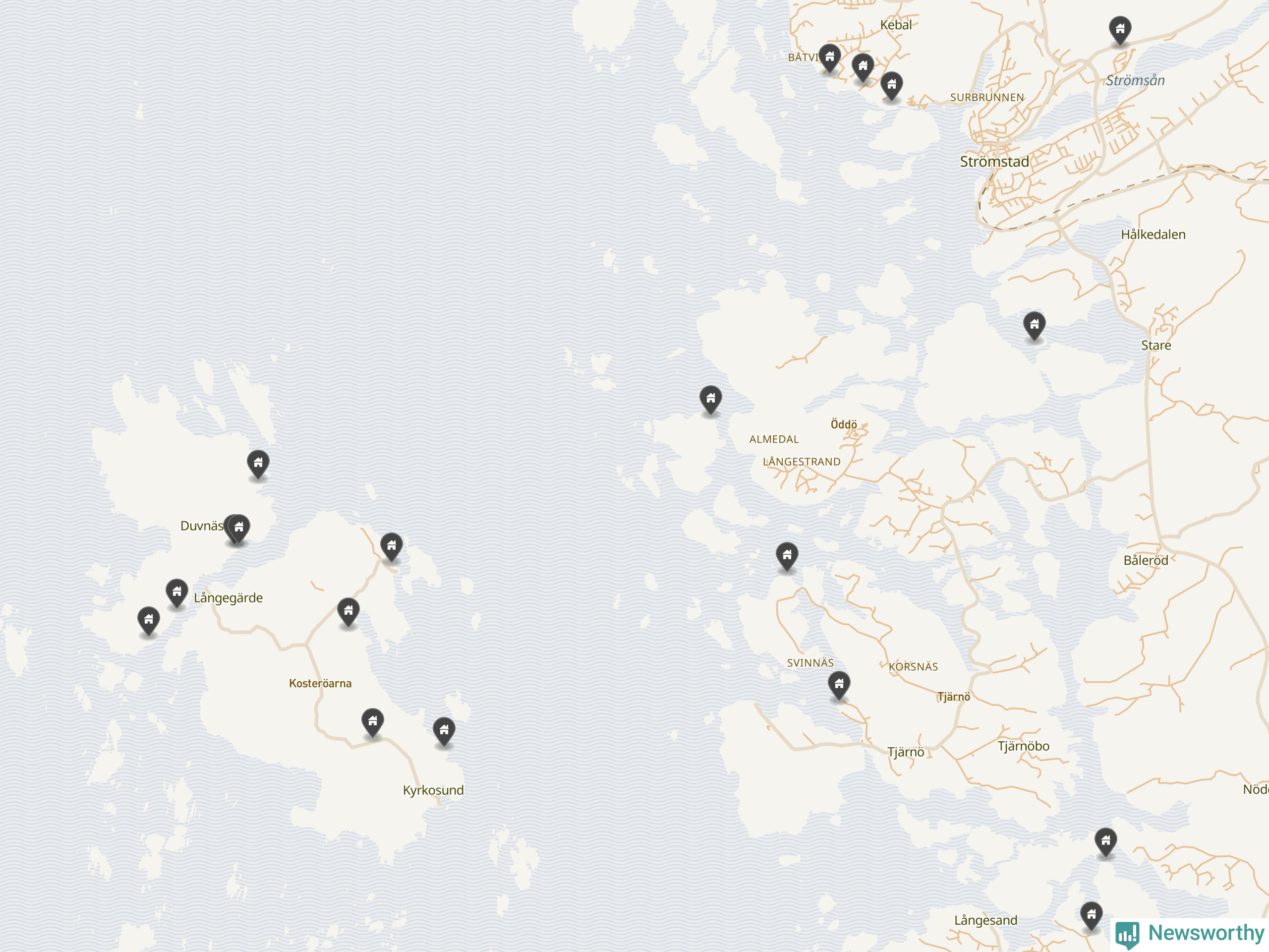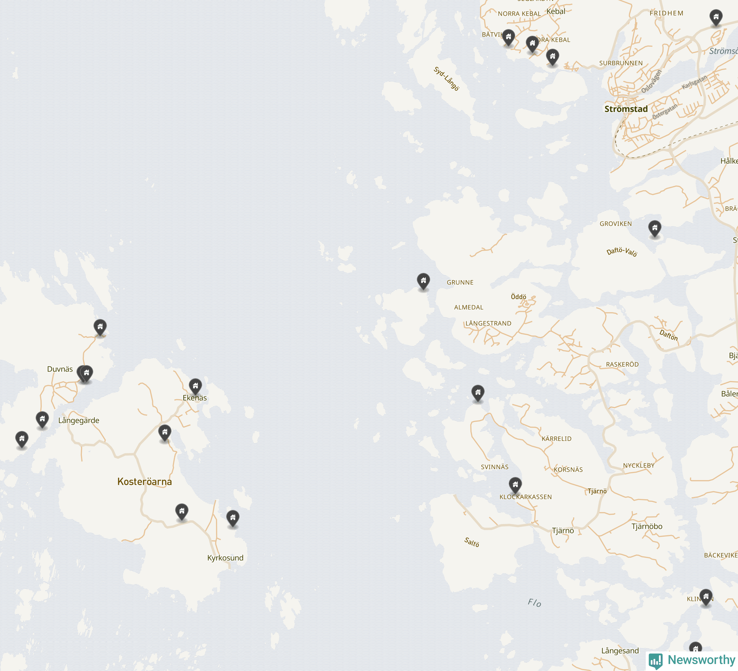 De 100 högst taxerade småhusfastigheterna i Strömstad har ett snittvärde på 7,5 miljoner kronor, vilket är omkring en miljon högre än snittet för alla kommuners 100 högst taxerade småhus. Det visar Newsworthys genomgång av kommunernas högst taxerade småhusfastigheter, som sammanställts med hjälp av data från The intelligence company.