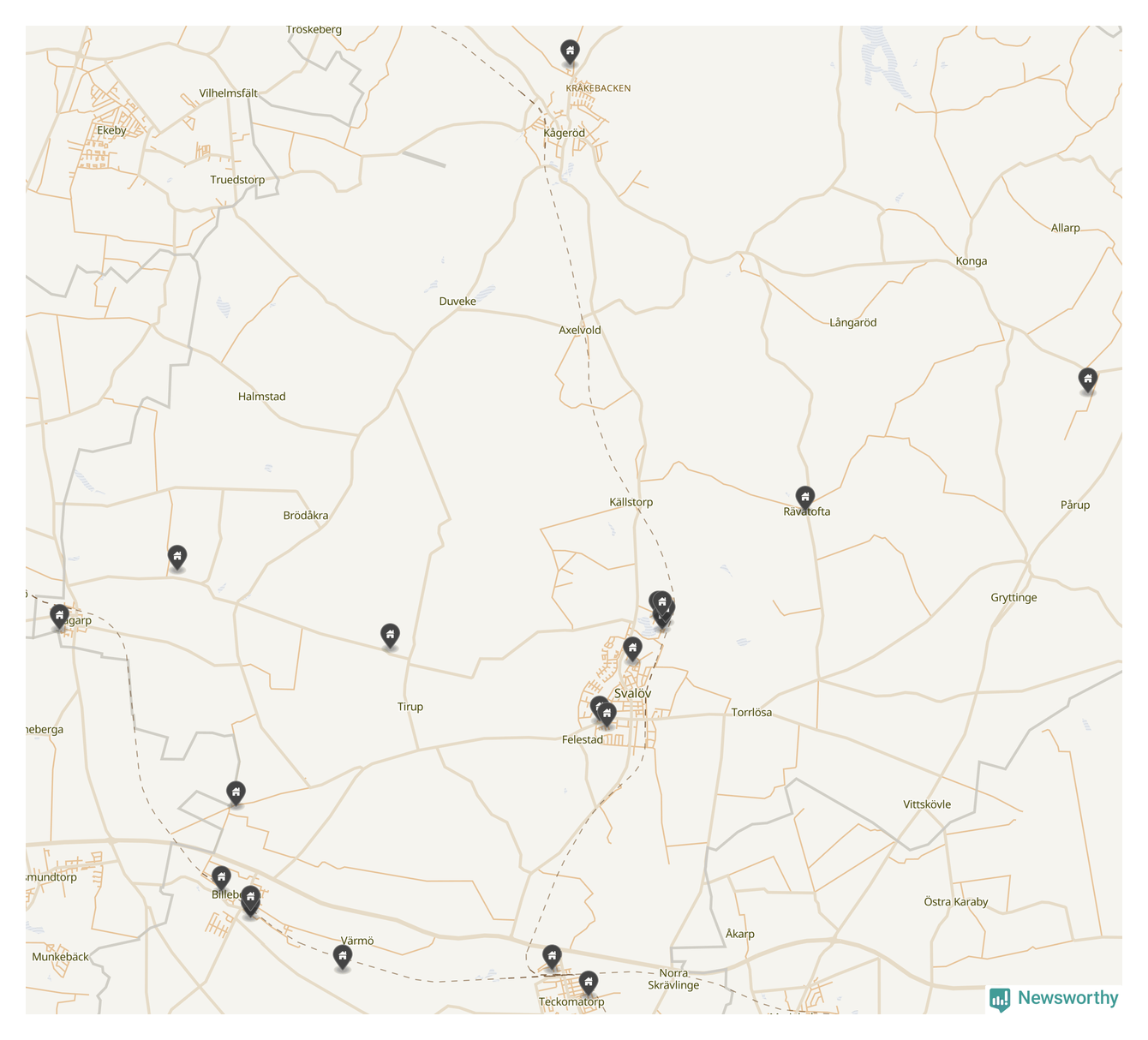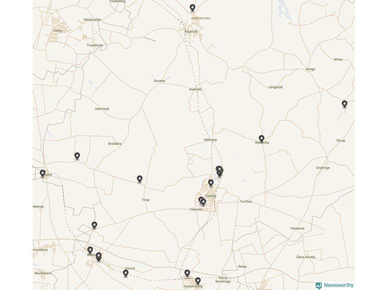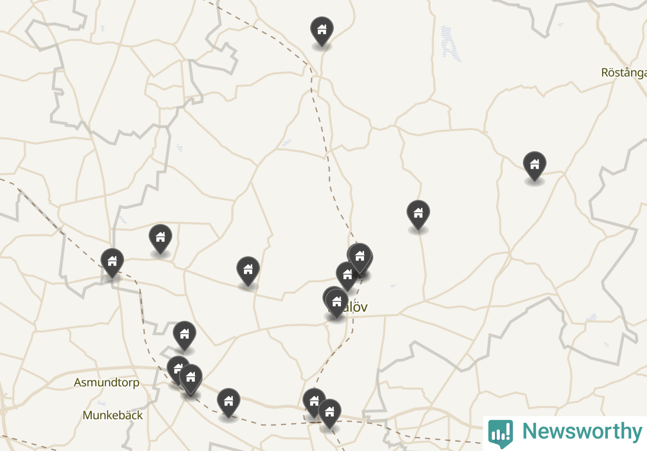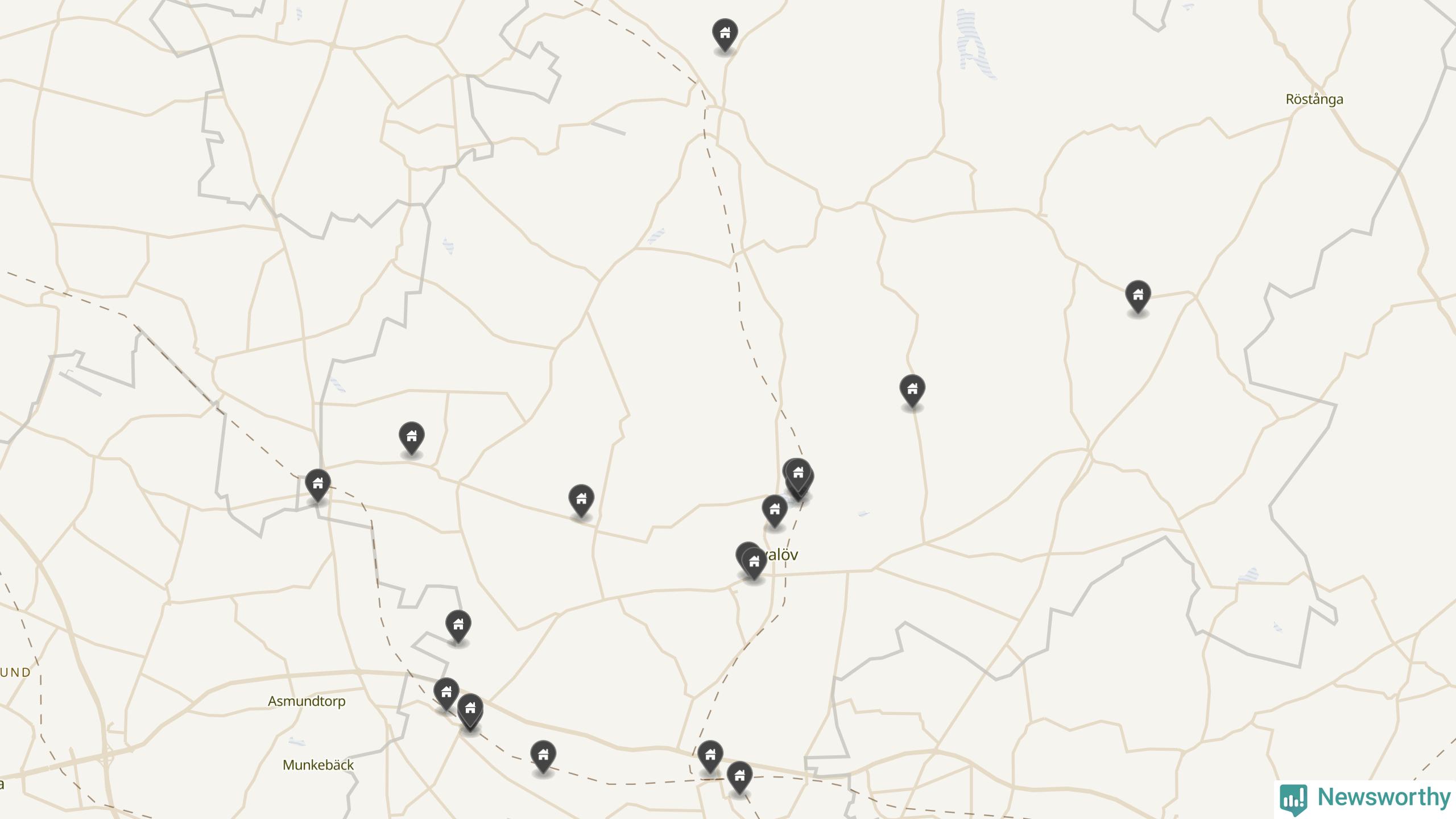 | 33 | Svalöv Röstånga 1:123 | Blinkarpsvägen 871 | 3,7 miljoner | 5 058 m² | Visa |