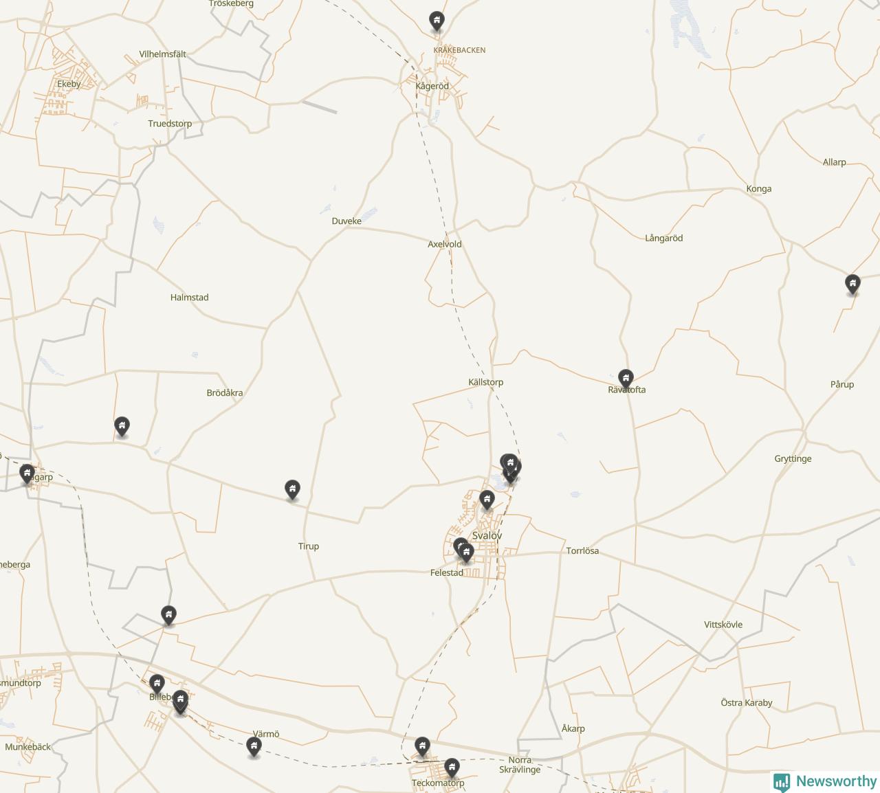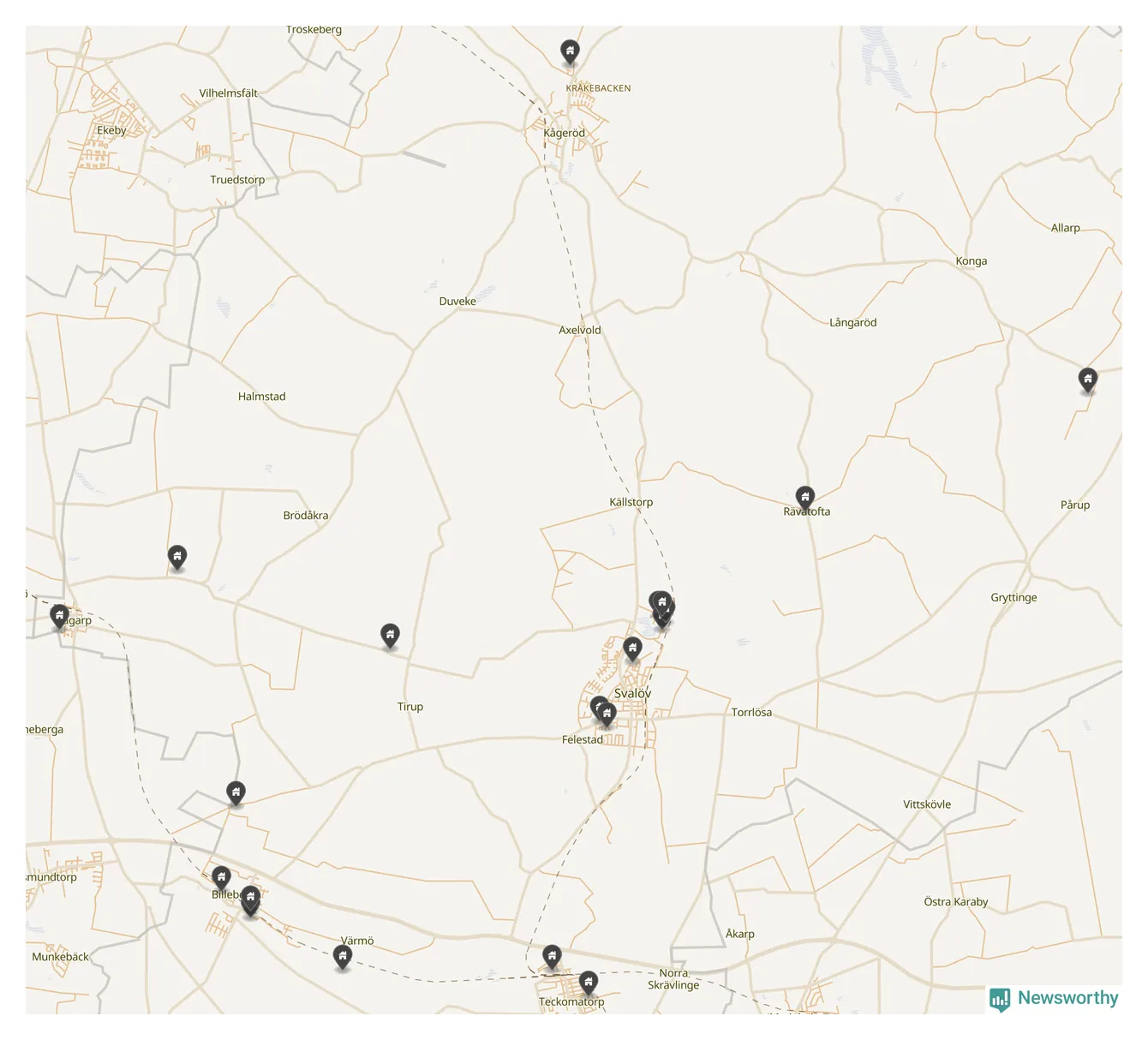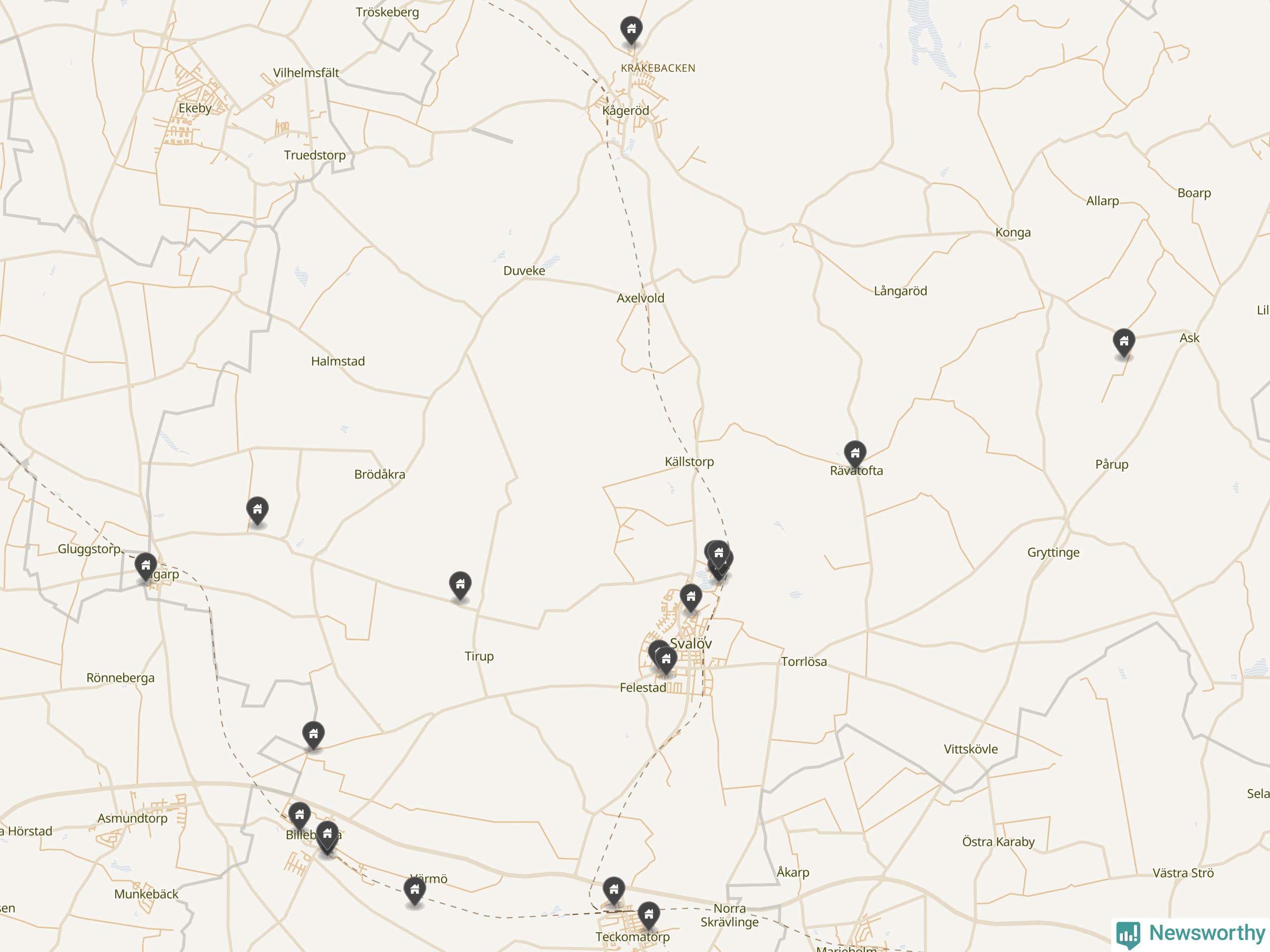 | 33 | Svalöv Röstånga 1:123 | Blinkarpsvägen 871 | 3,7 miljoner | 5 058 m² | Visa |
