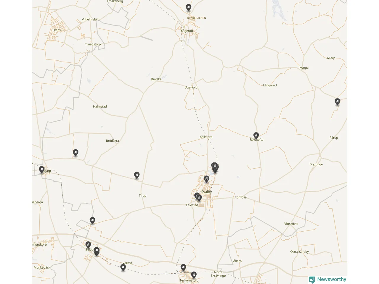 De 100 högst taxerade småhusfastigheterna i Svalöv har ett snittvärde på 3,6 miljoner kronor, vilket är omkring två miljoner lägre än snittet för alla kommuners 100 högst taxerade småhus. Det visar Newsworthys genomgång av kommunernas högst taxerade småhusfastigheter, som sammanställts med hjälp av data från The intelligence company.