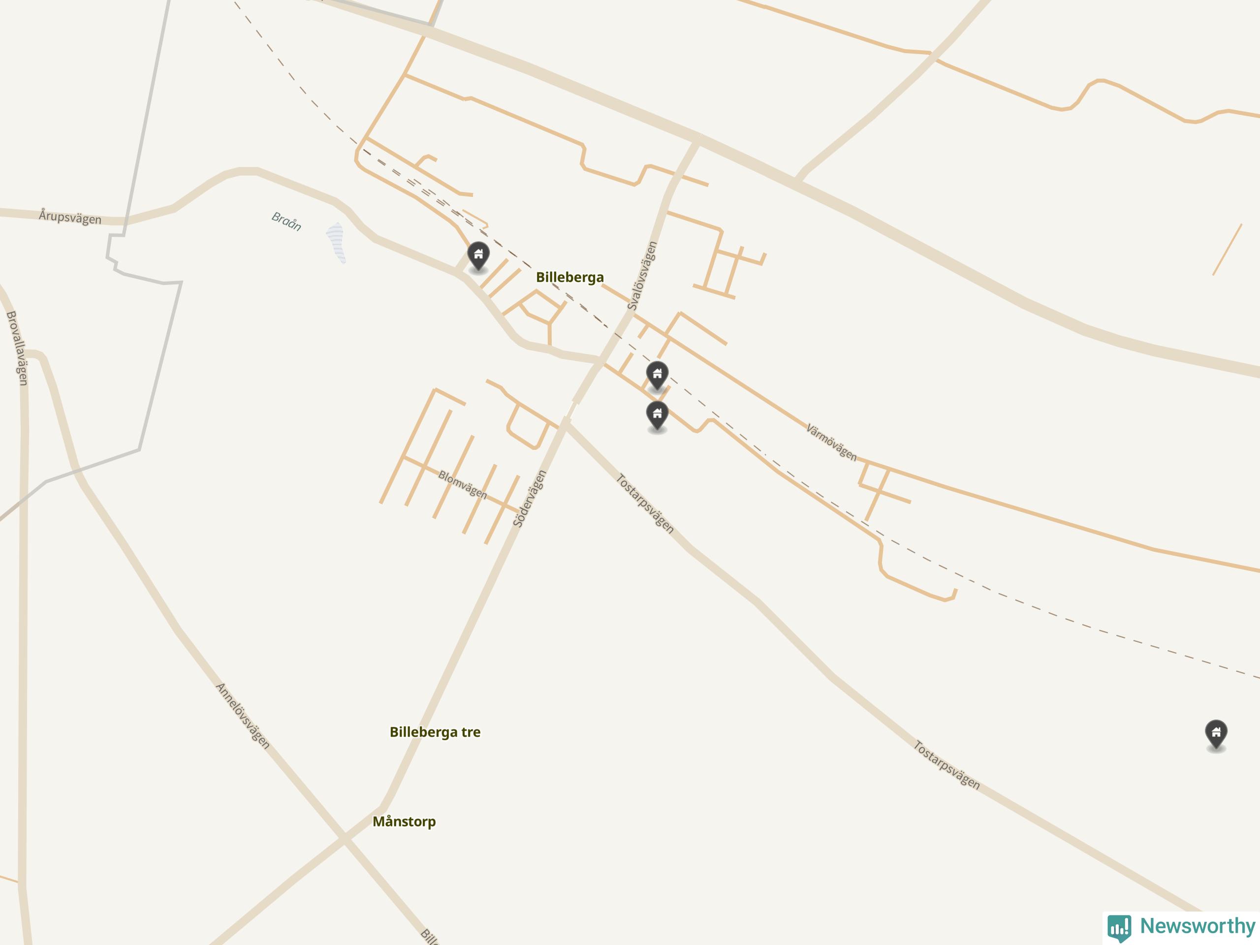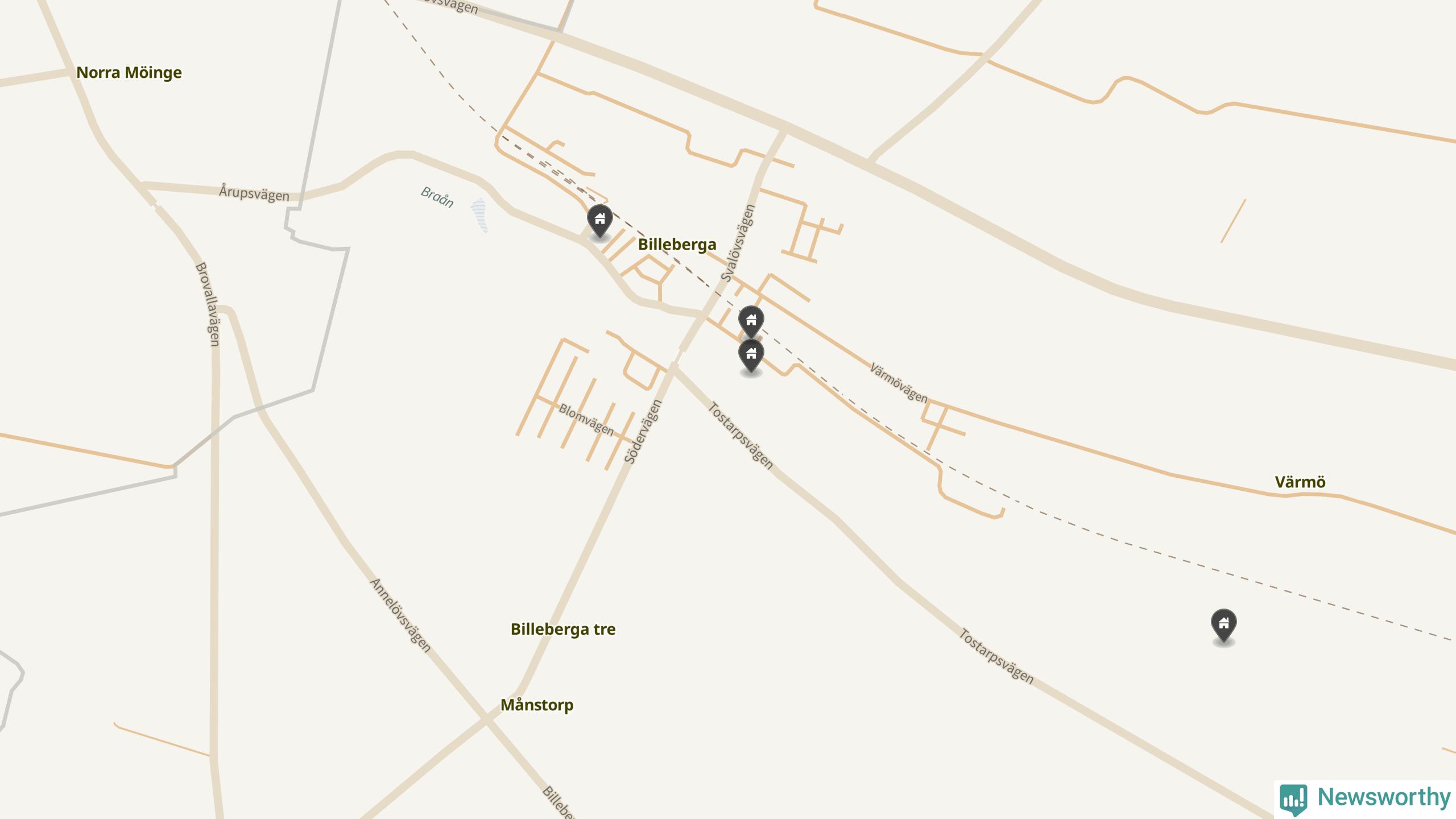 | 4 | Svalöv Billeberga 14:34 | Trädgårdsvägen 16 | 5,2 miljoner | 901 m² | Visa |