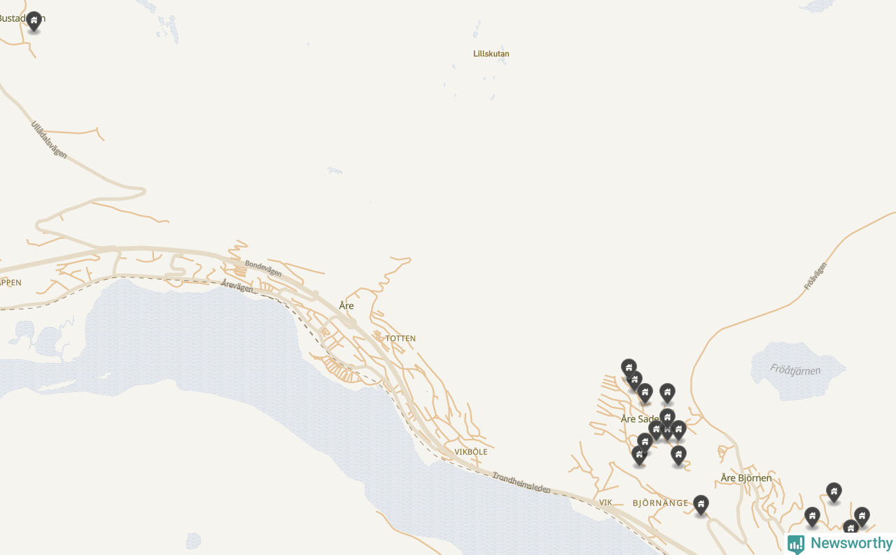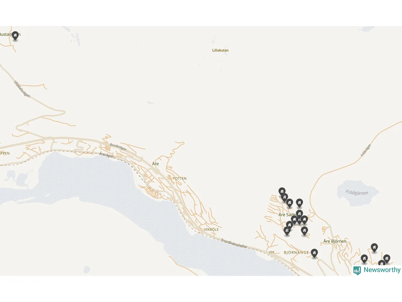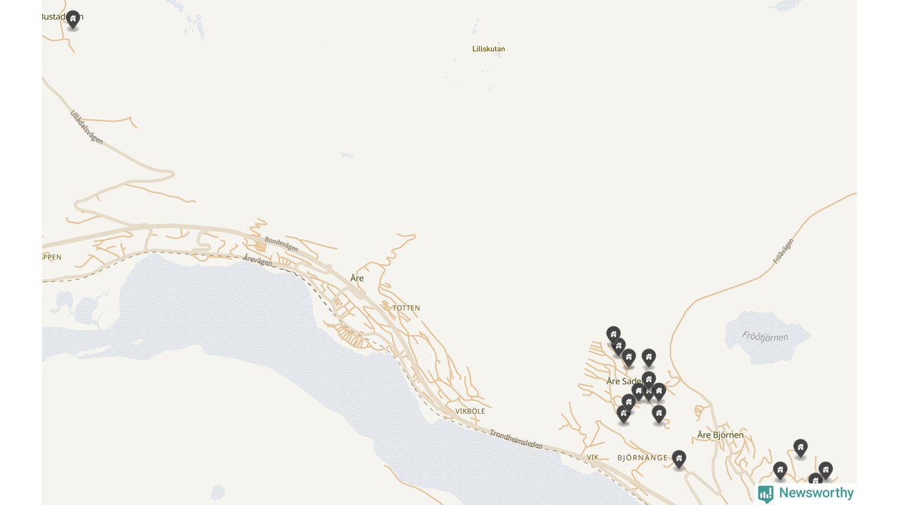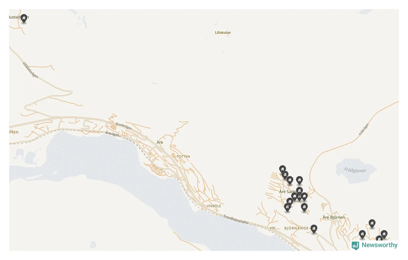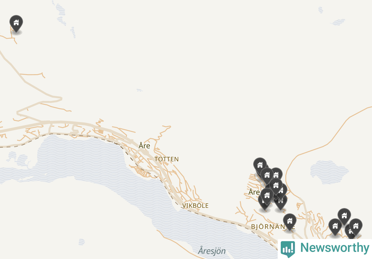 De 100 högst taxerade småhusfastigheterna i Åre har ett snittvärde på 13,9 miljoner kronor, vilket är omkring åtta miljoner högre än snittet för alla kommuners 100 högst taxerade småhus. Det visar Newsworthys genomgång av kommunernas högst taxerade småhusfastigheter, som sammanställts med hjälp av data från The intelligence company.