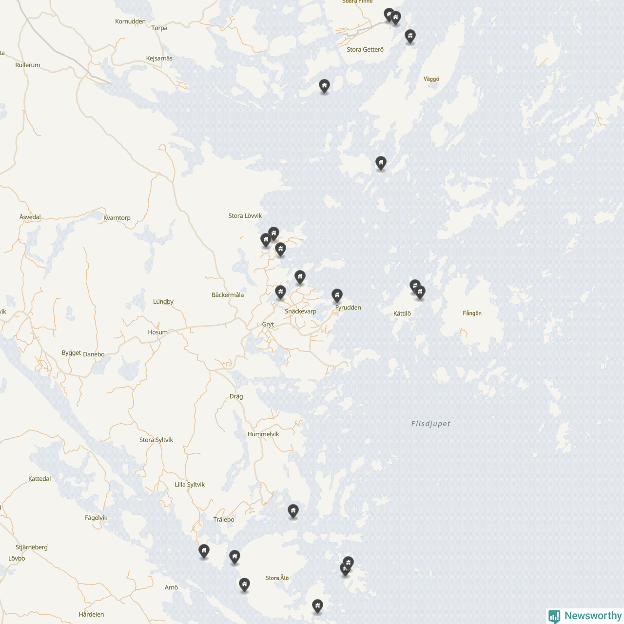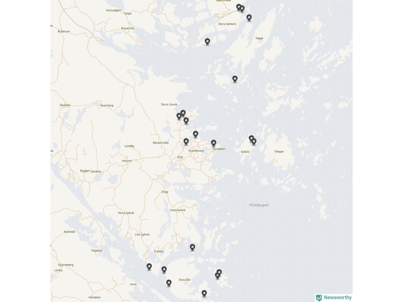 16 | Valdemarsvik Lilla Ålö 3:12 | Lilla Ålö 8 | 6,7 miljoner | 4 752 m² | Visa |