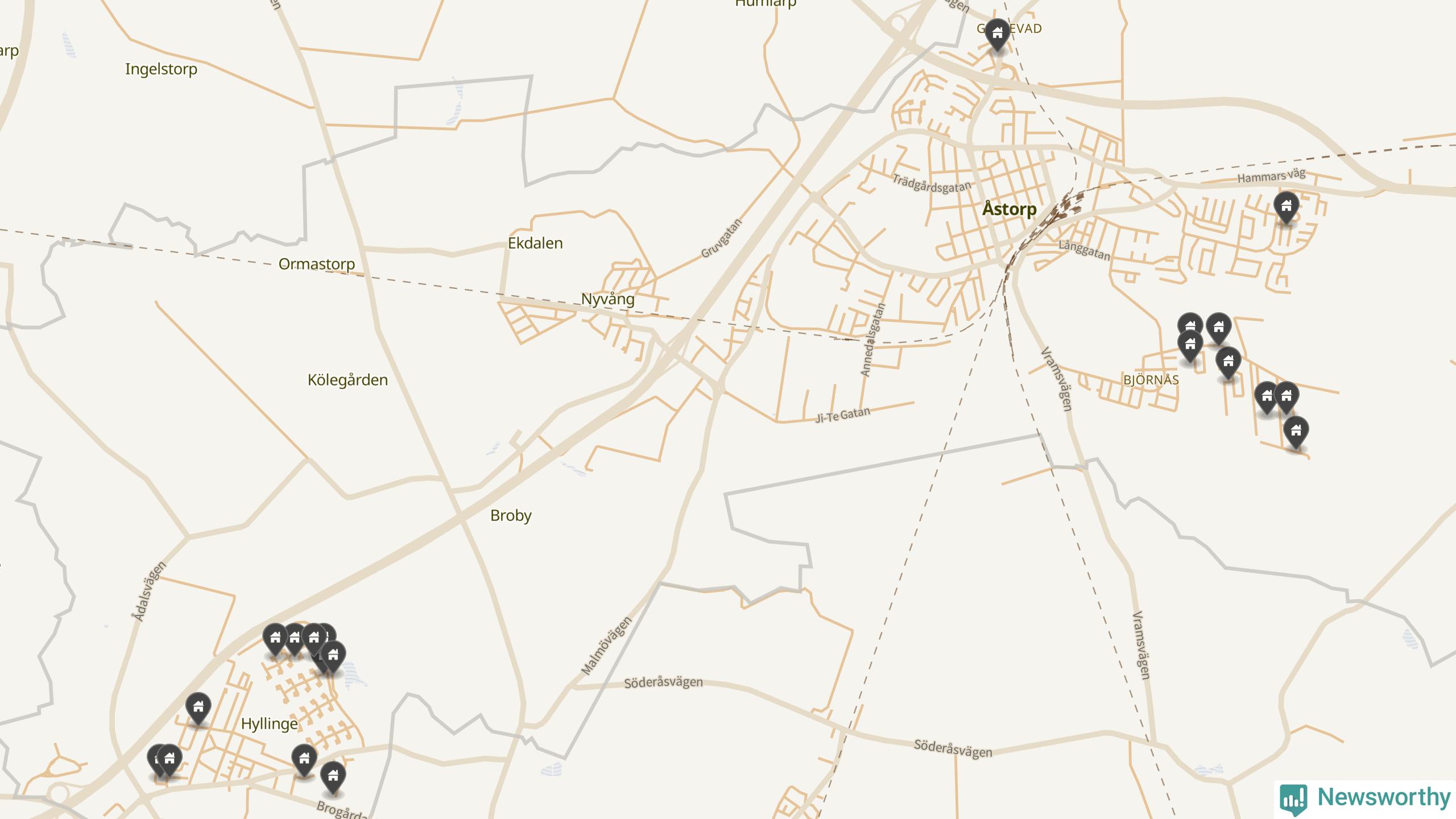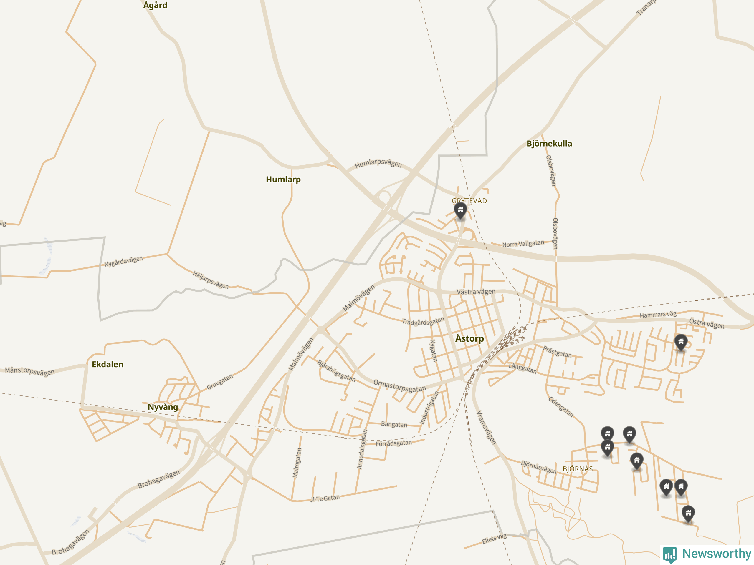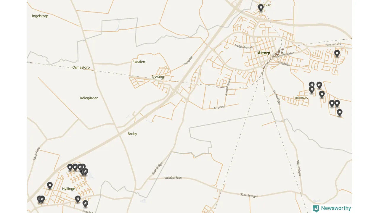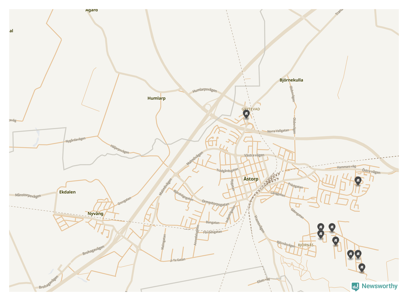 De 100 högst taxerade småhusfastigheterna i Åstorp har ett snittvärde på 3,9 miljoner kronor, vilket är omkring två miljoner lägre än snittet för alla kommuners 100 högst taxerade småhus. Det visar Newsworthys genomgång av kommunernas högst taxerade småhusfastigheter, som sammanställts med hjälp av data från The intelligence company.