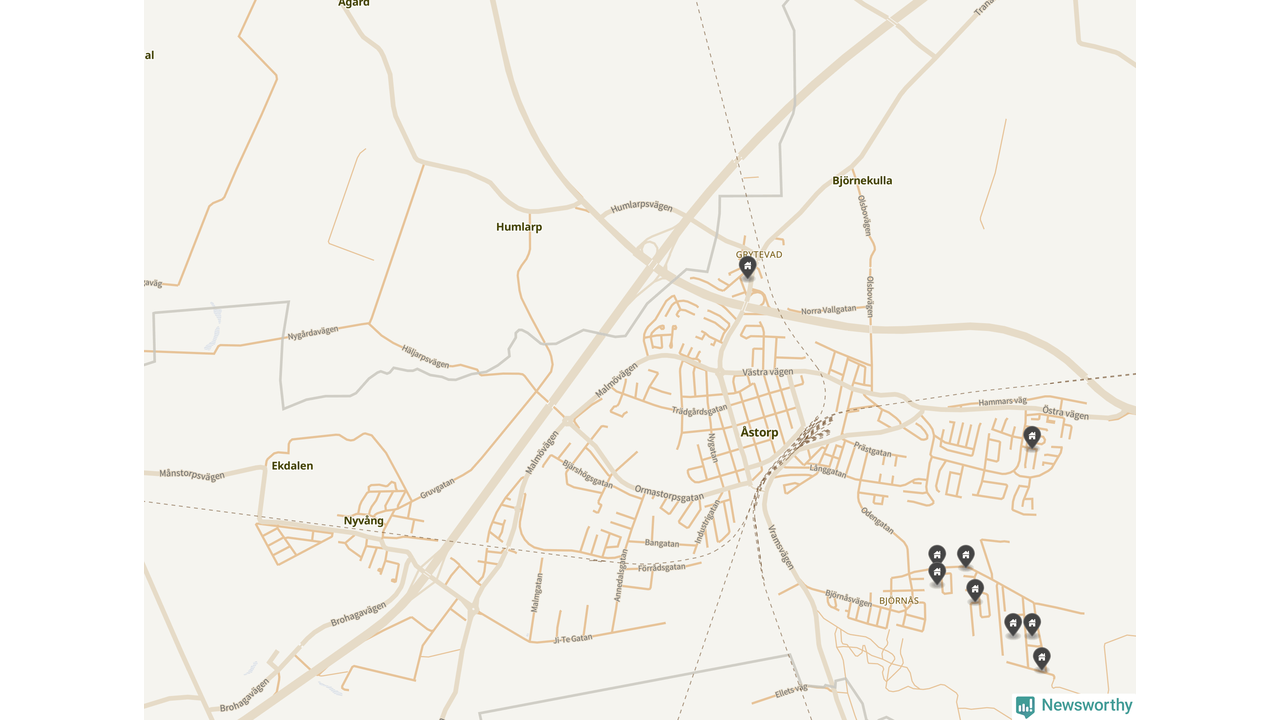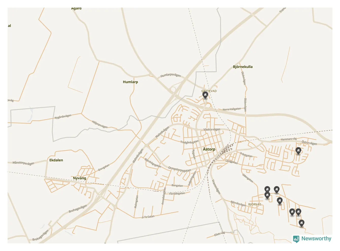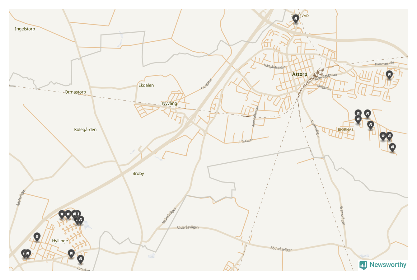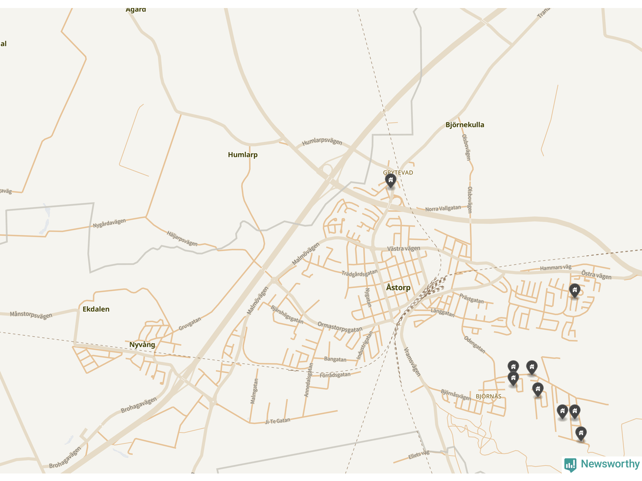 De 100 högst taxerade småhusfastigheterna i Åstorp har ett snittvärde på 3,9 miljoner kronor, vilket är omkring två miljoner lägre än snittet för alla kommuners 100 högst taxerade småhus. Det visar Newsworthys genomgång av kommunernas högst taxerade småhusfastigheter, som sammanställts med hjälp av data från The intelligence company.