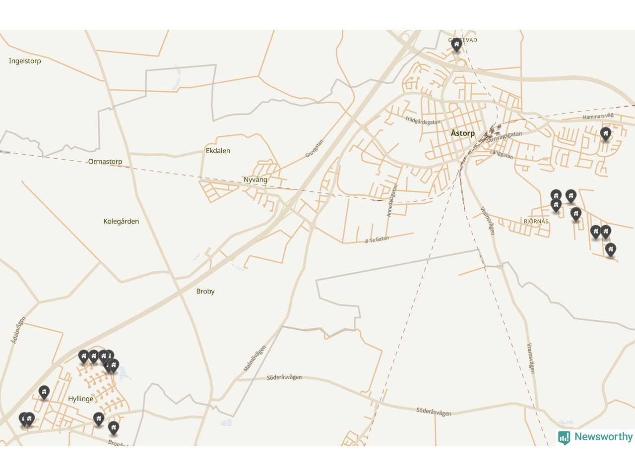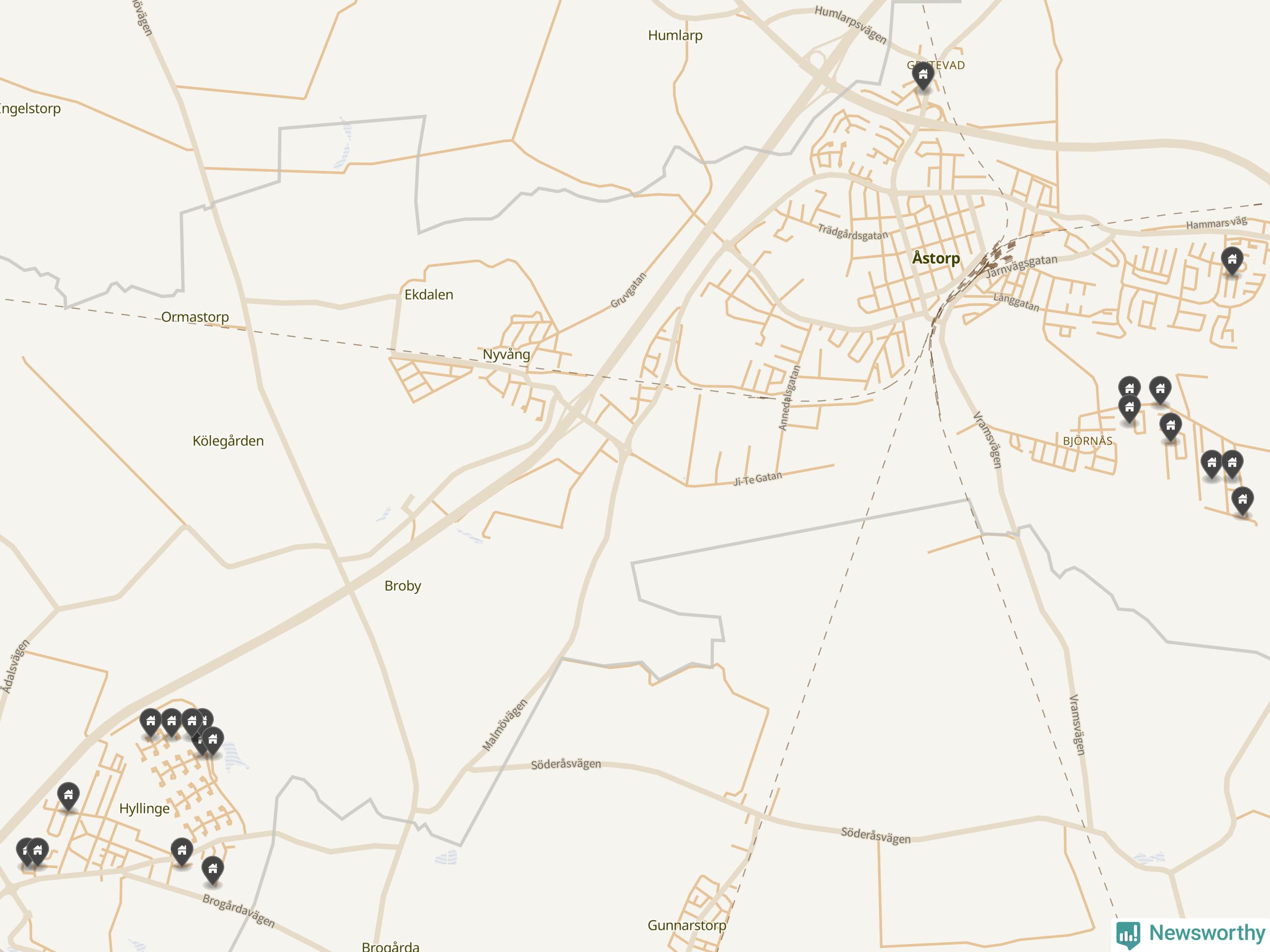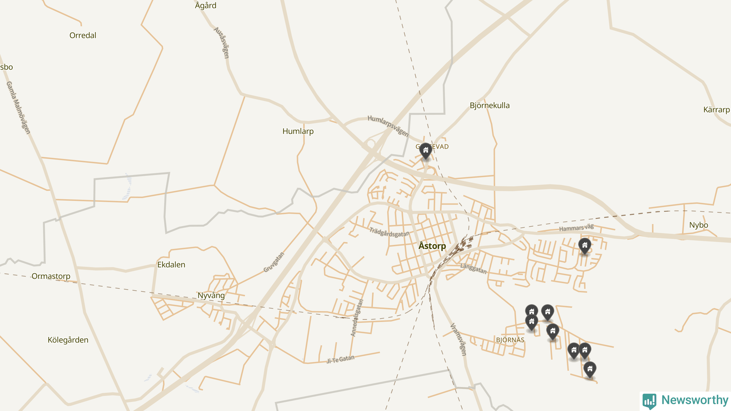 | 96 | Åstorp Hyllinge 36:328 | Åkaregatan 32 | 3,5 miljoner | 736 m² | Visa |