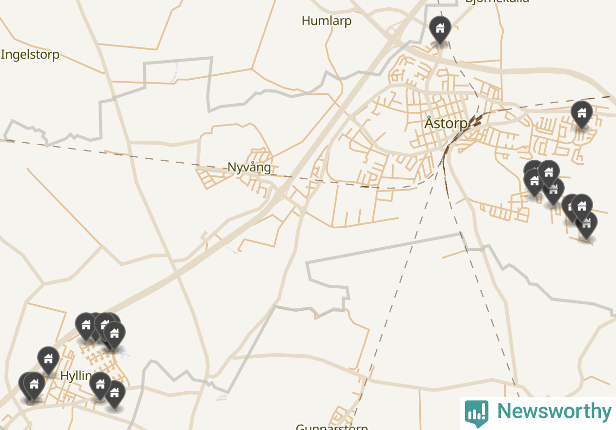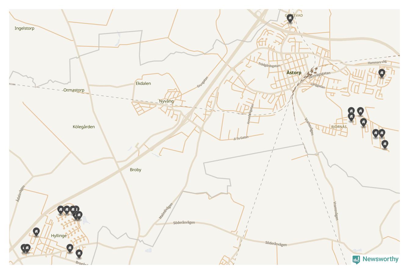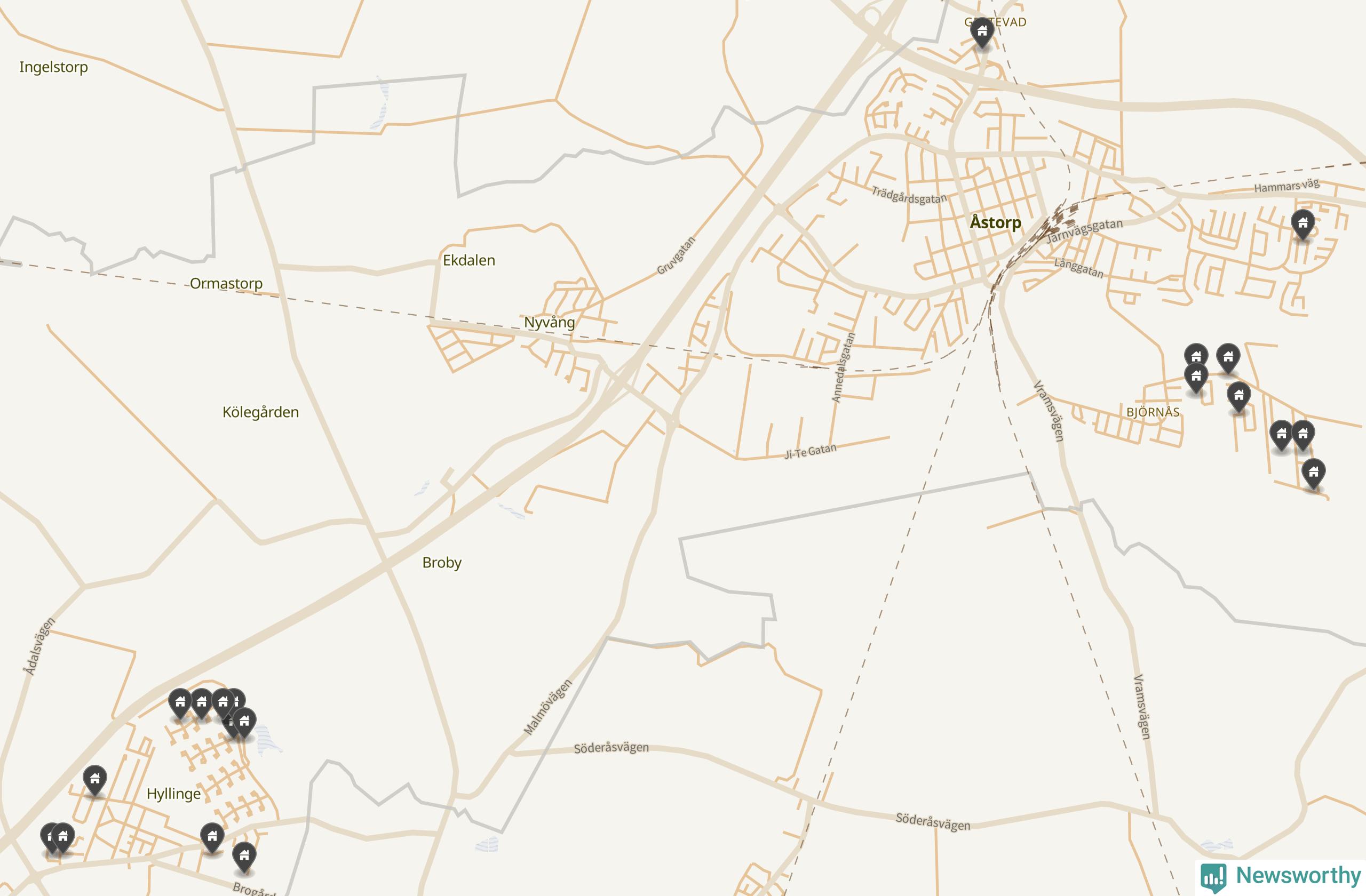 | 96 | Åstorp Hyllinge 36:328 | Åkaregatan 32 | 3,5 miljoner | 736 m² | Visa |