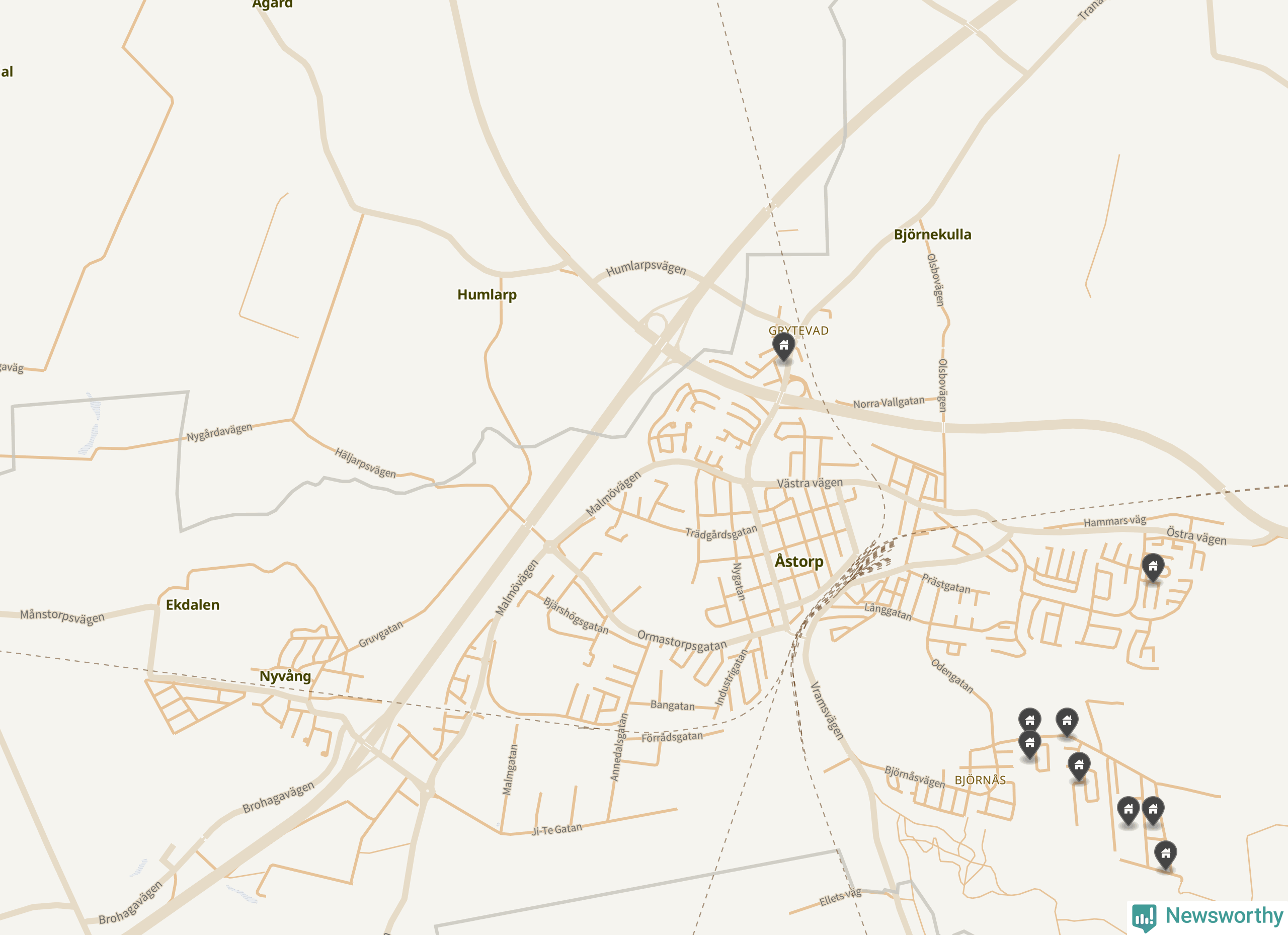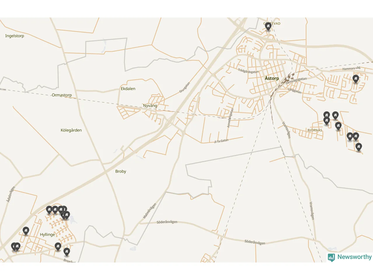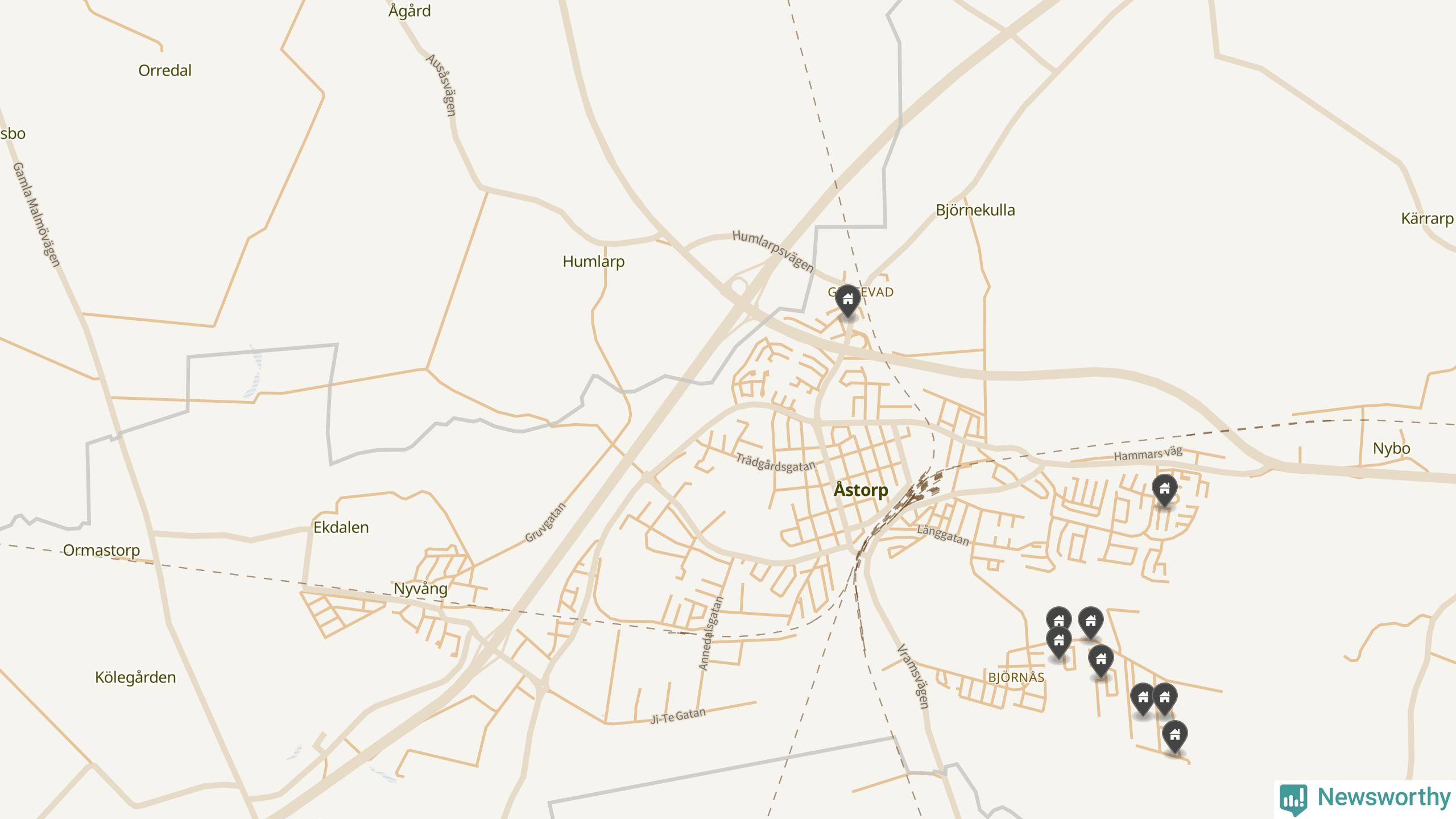| 64 | Åstorp Nyvång 1:346 | Askegatan 16b m.fl. | 3,7 miljoner | 835 m² | Visa |