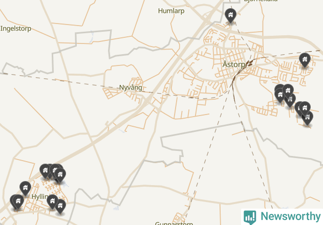 | 21 | Åstorp Hyllinge 36:378 | Tussilagovägen 2 | 4,2 miljoner | 1 769 m² | Visa |