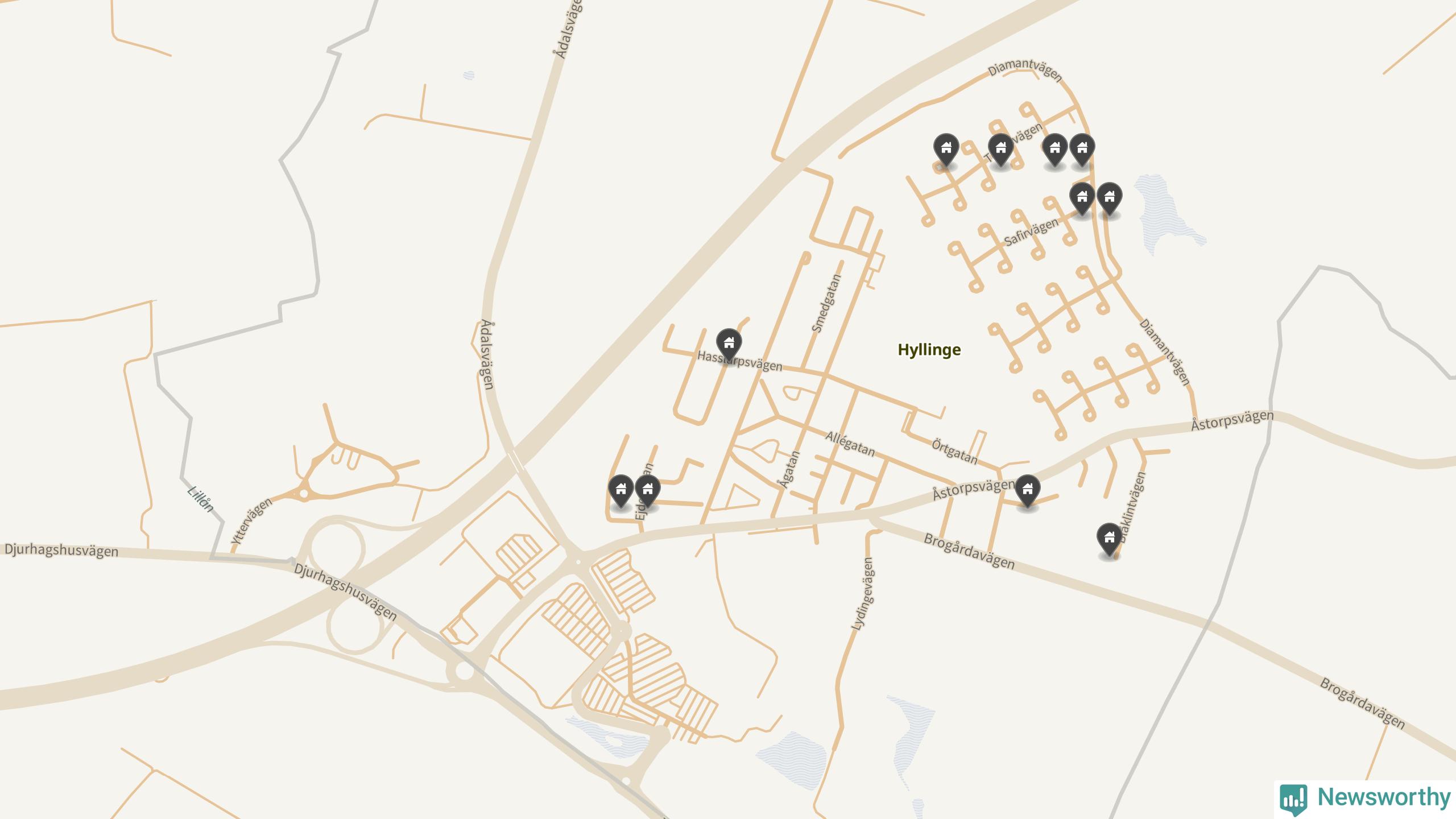 | 10 | Åstorp Hyllinge 3:134 | Smaragdvägen 1 | 4,4 miljoner | 583 m² | Visa |
