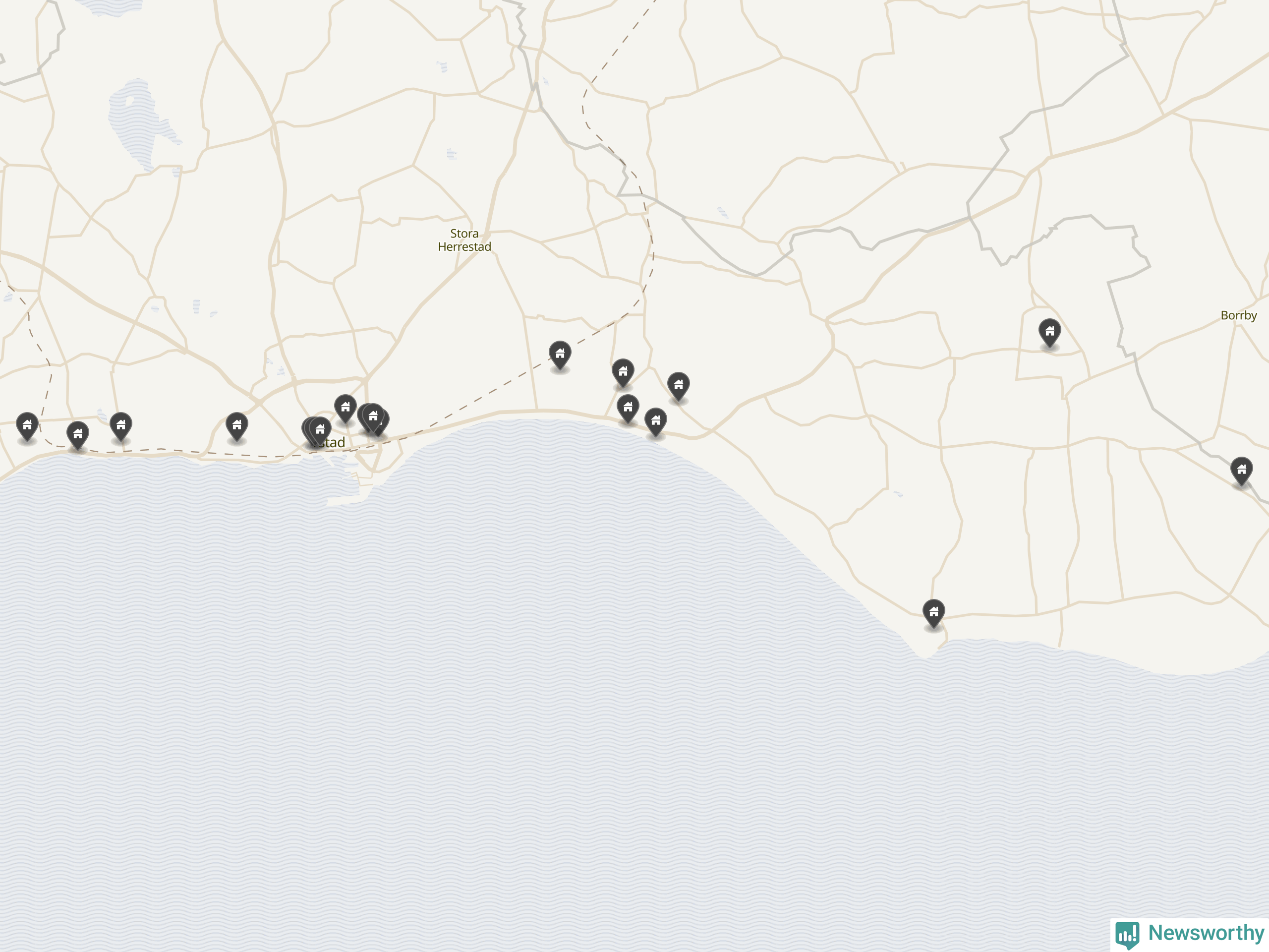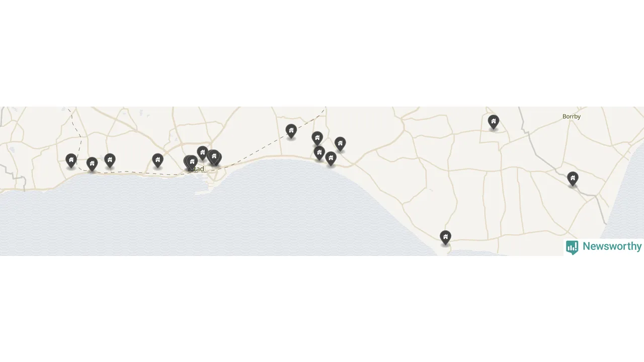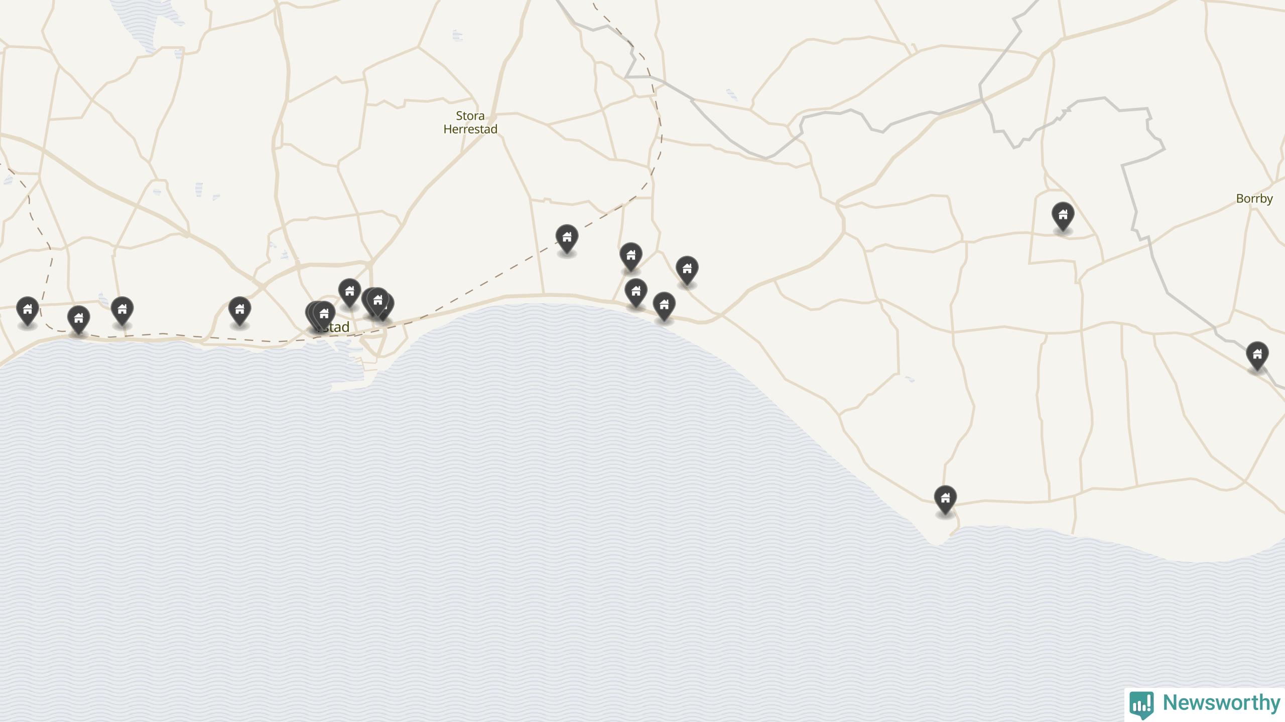 | 1 | Ystad Kåseberga 14:114 | Kasevägen 23 | 16 miljoner | 5 598 m² | Visa |