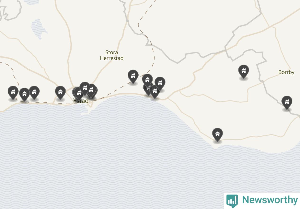 | 43 | Ystad Nybrostrand 22:18 | Bussmevägen 18 | 6,9 miljoner | 1 511 m² | Visa |