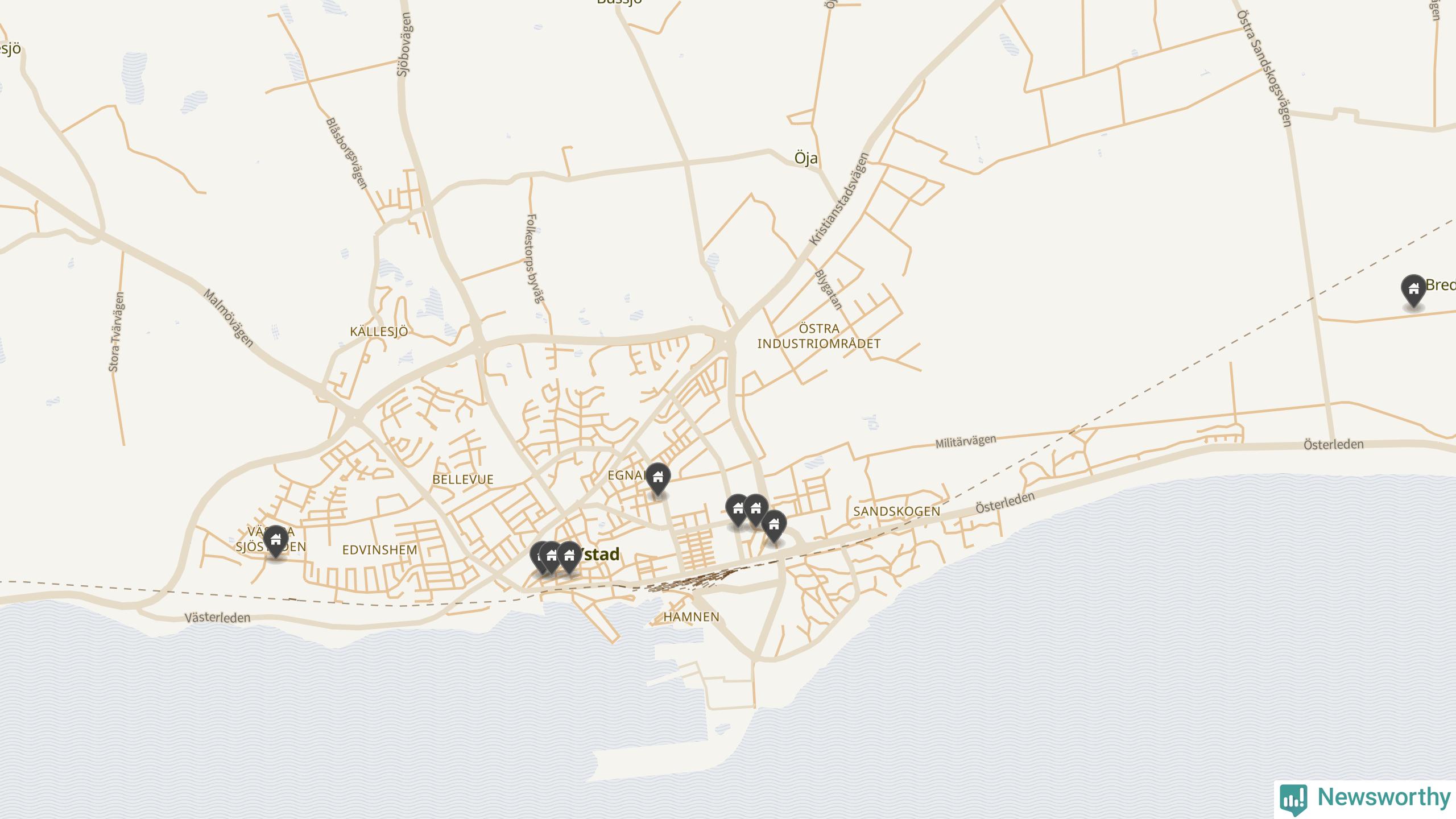 De 100 högst taxerade småhusfastigheterna i Ystad har ett snittvärde på 7,1 miljoner kronor, vilket är något högre än snittet för alla kommuners 100 högst taxerade småhus. Det visar Newsworthys genomgång av kommunernas högst taxerade småhusfastigheter, som sammanställts med hjälp av data från The intelligence company.