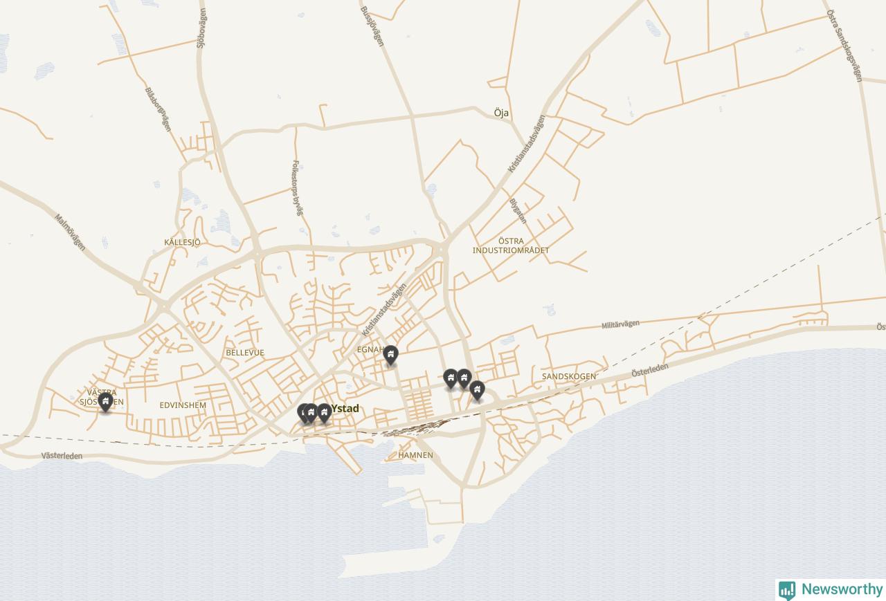 | 13 | Ystad Ruuthsbo 2:4 | Ruuthsbovägen | 7,8 miljoner | 2 515 m² | Visa |