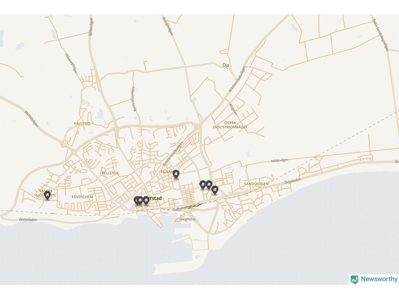| Ystad | 16 miljoner | 7,1 miljoner | 4 |
