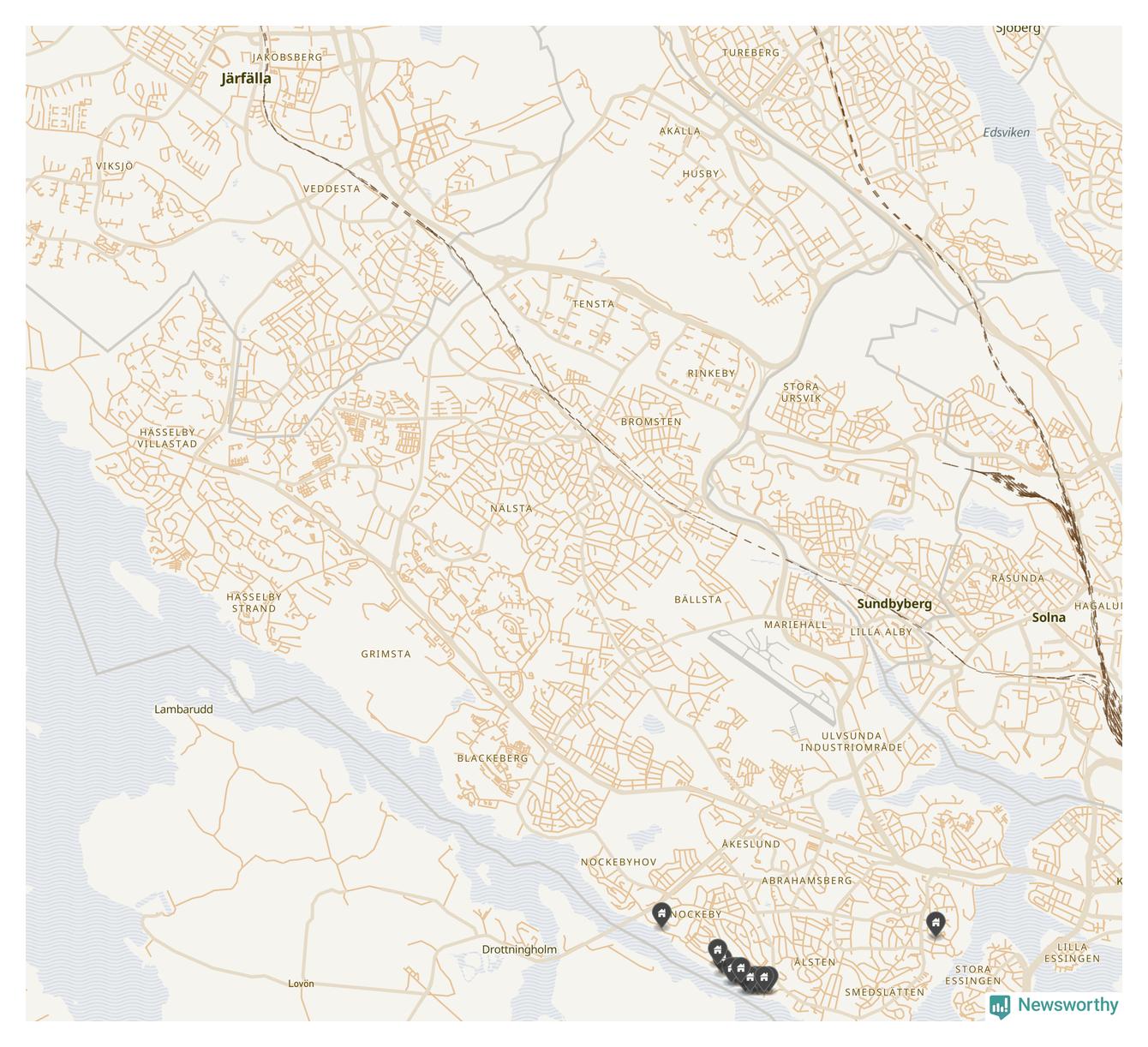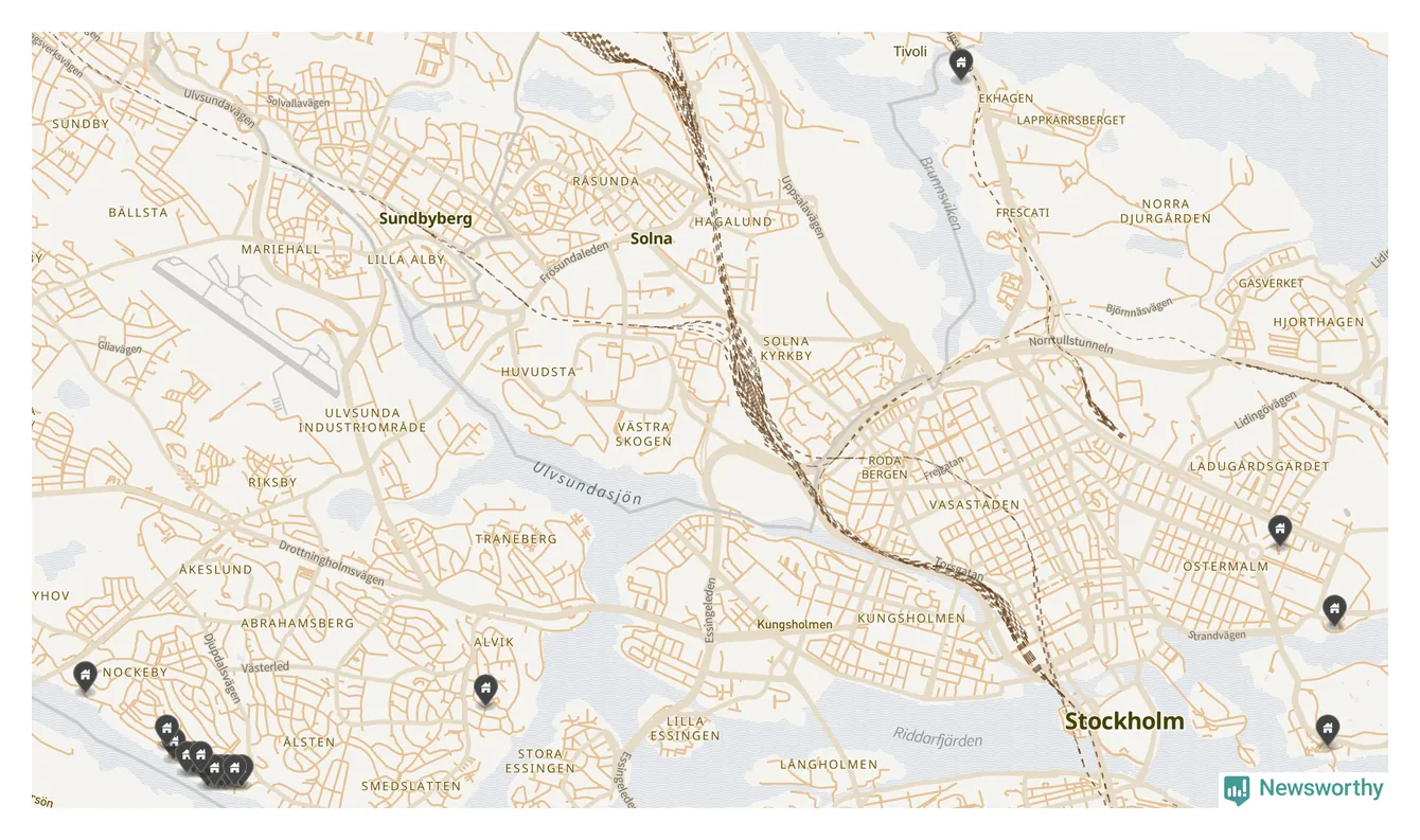 94 | Stockholm Soluret 2 | Äppelviksvägen 38 | 22 miljoner | 1 203 m² | Visa |