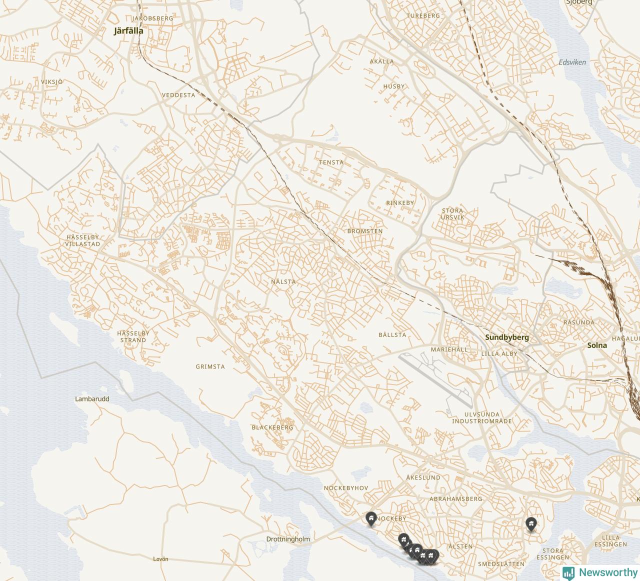 88 | Stockholm Backkrönet 7 | Snäckparken 5 | 22,2 miljoner | 1 183 m² | Visa |
