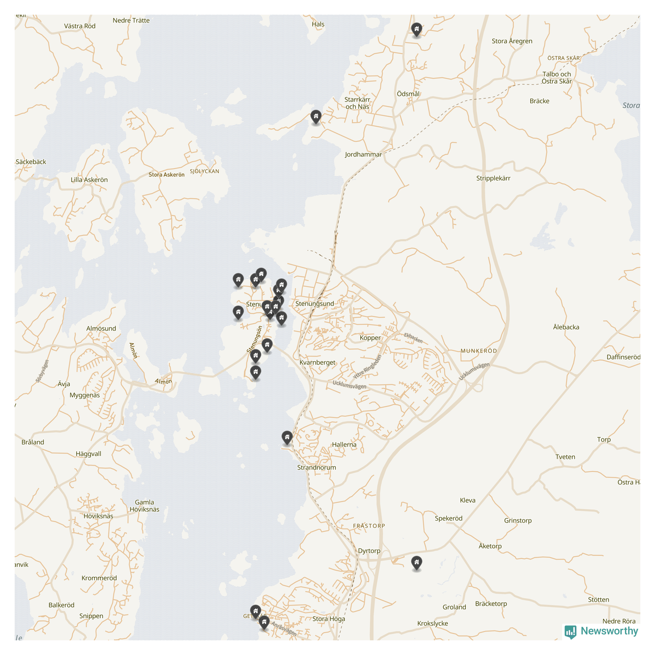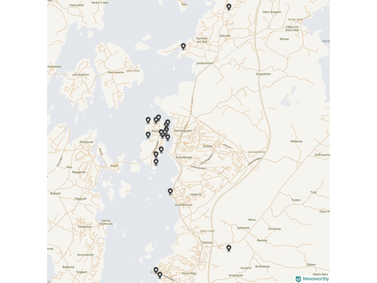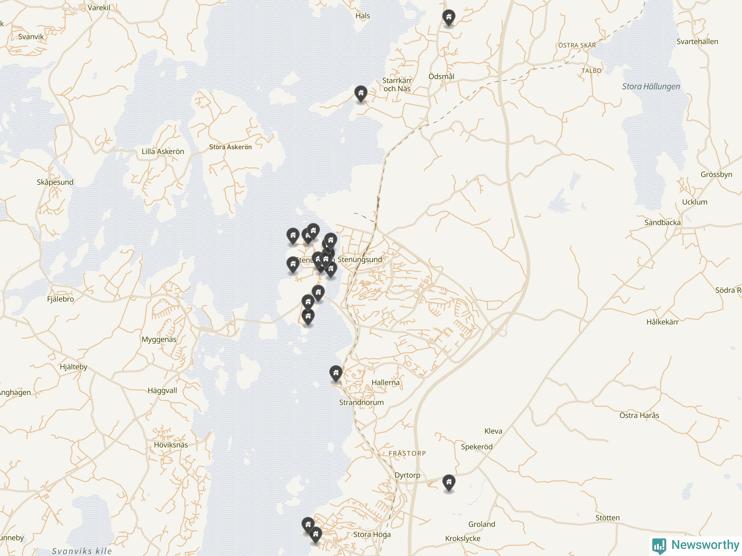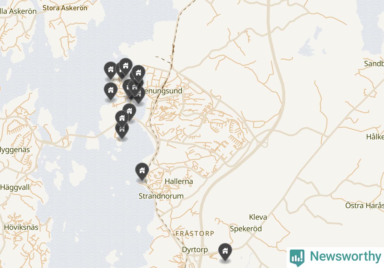 De 100 högst taxerade småhusfastigheterna i Stenungsund har ett snittvärde på nio miljoner kronor, vilket är omkring tre miljoner högre än snittet för alla kommuners 100 högst taxerade småhus. Det visar Newsworthys genomgång av kommunernas högst taxerade småhusfastigheter, som sammanställts med hjälp av data från The intelligence company.