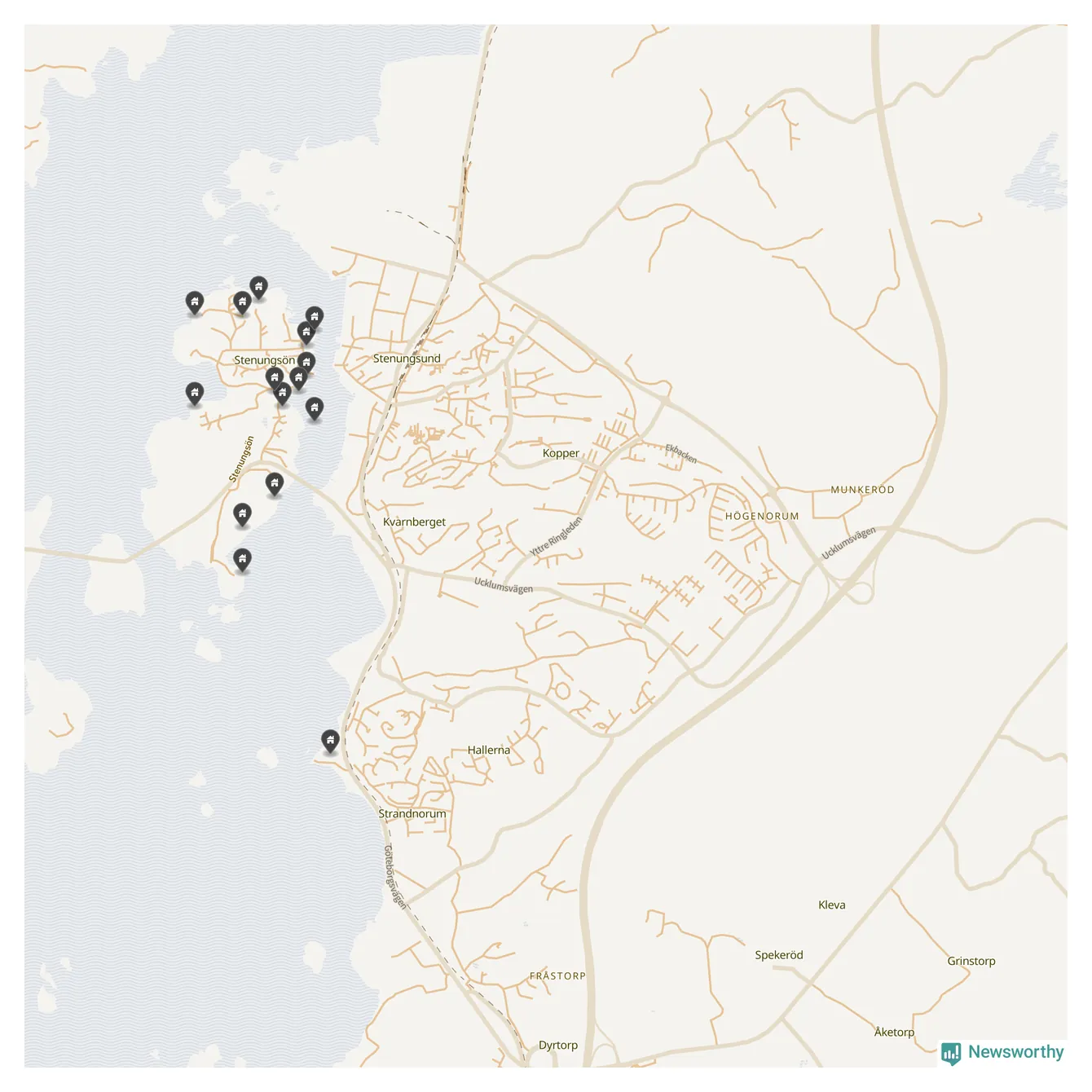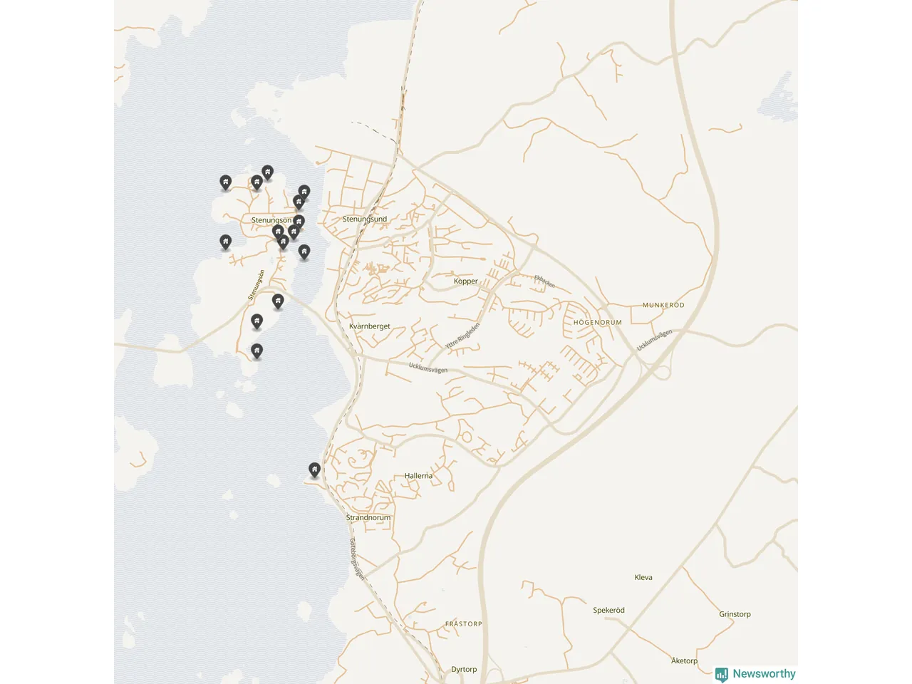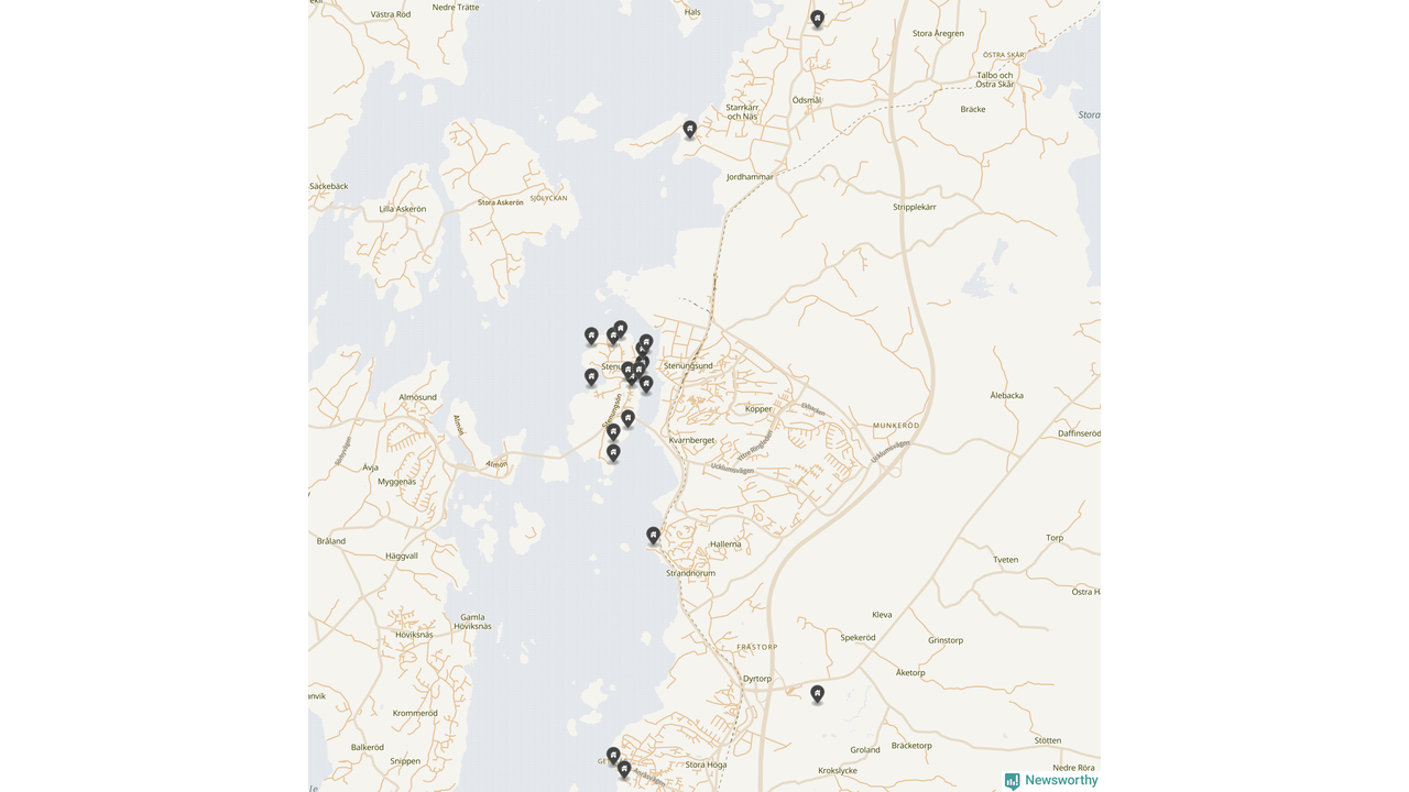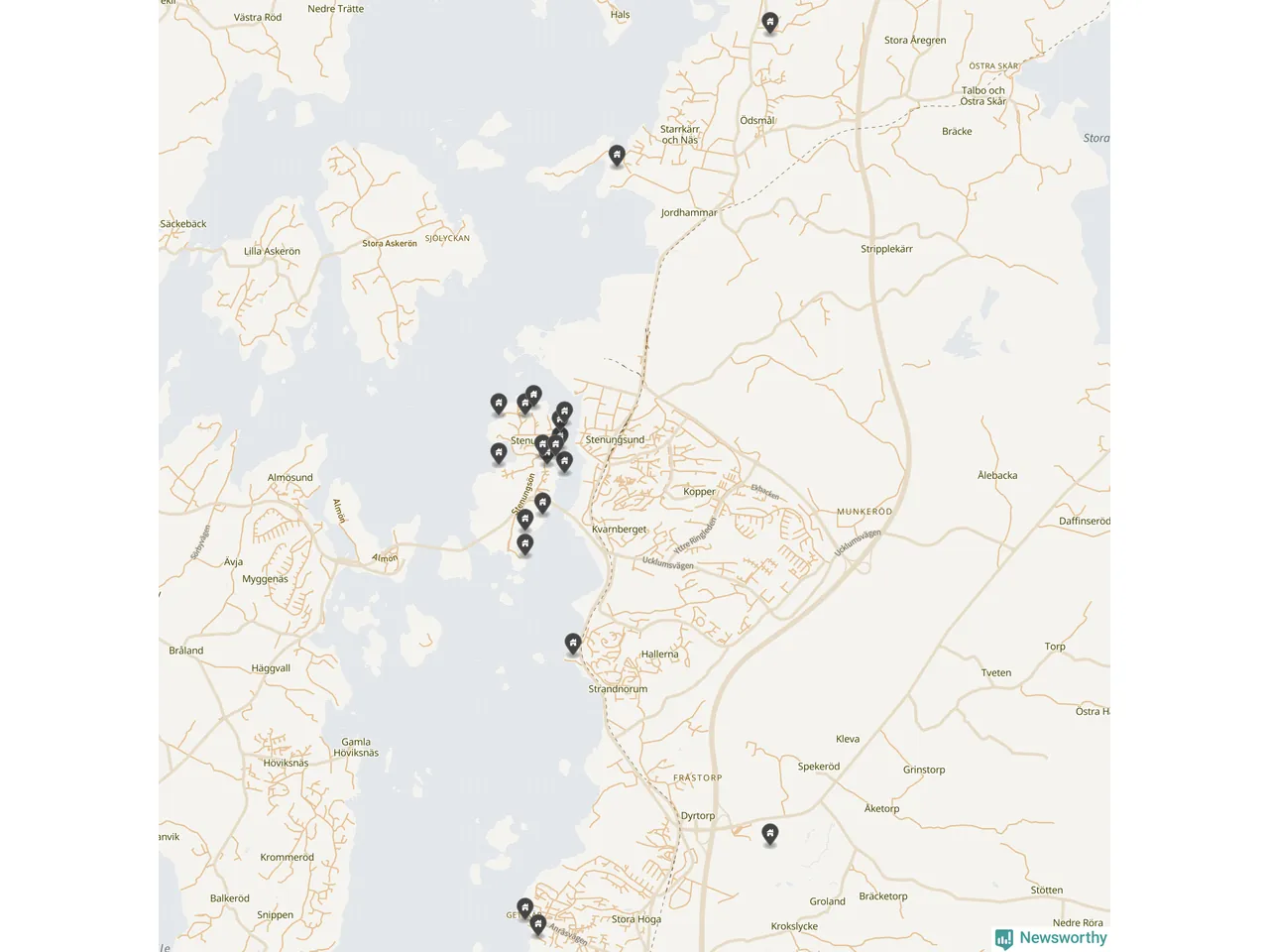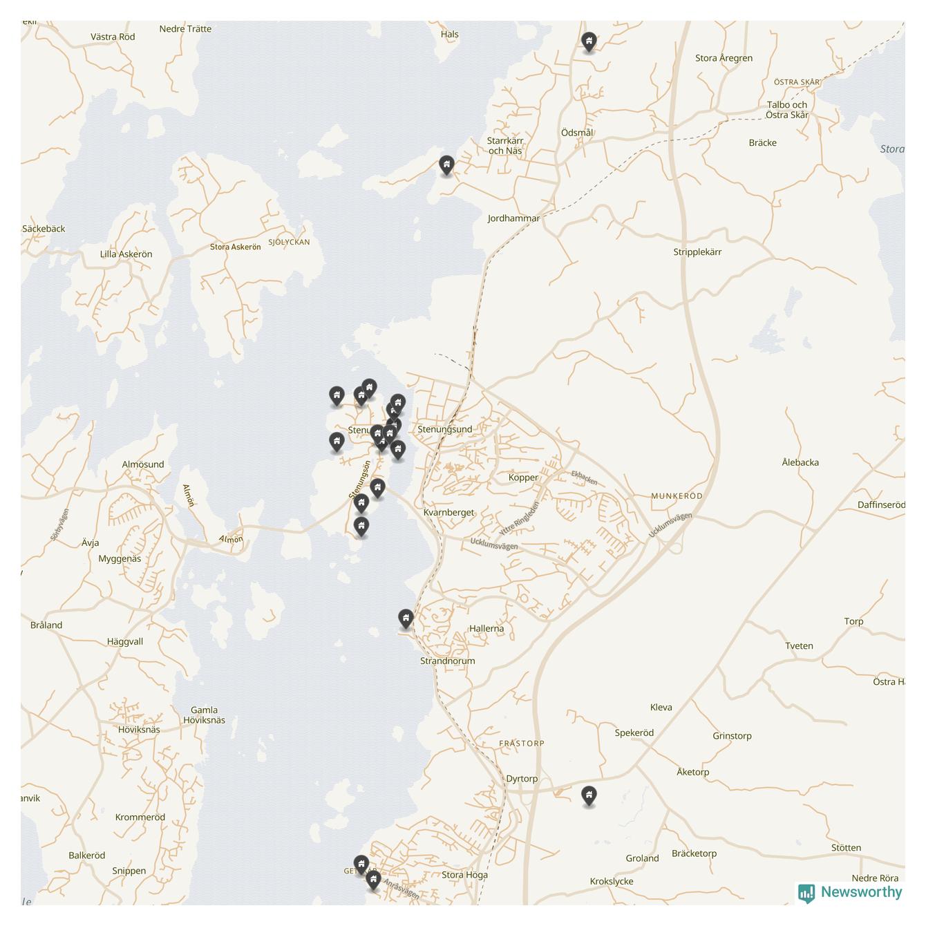 De 100 högst taxerade småhusfastigheterna i Stenungsund har ett snittvärde på nio miljoner kronor, vilket är omkring tre miljoner högre än snittet för alla kommuners 100 högst taxerade småhus. Det visar Newsworthys genomgång av kommunernas högst taxerade småhusfastigheter, som sammanställts med hjälp av data från The intelligence company.