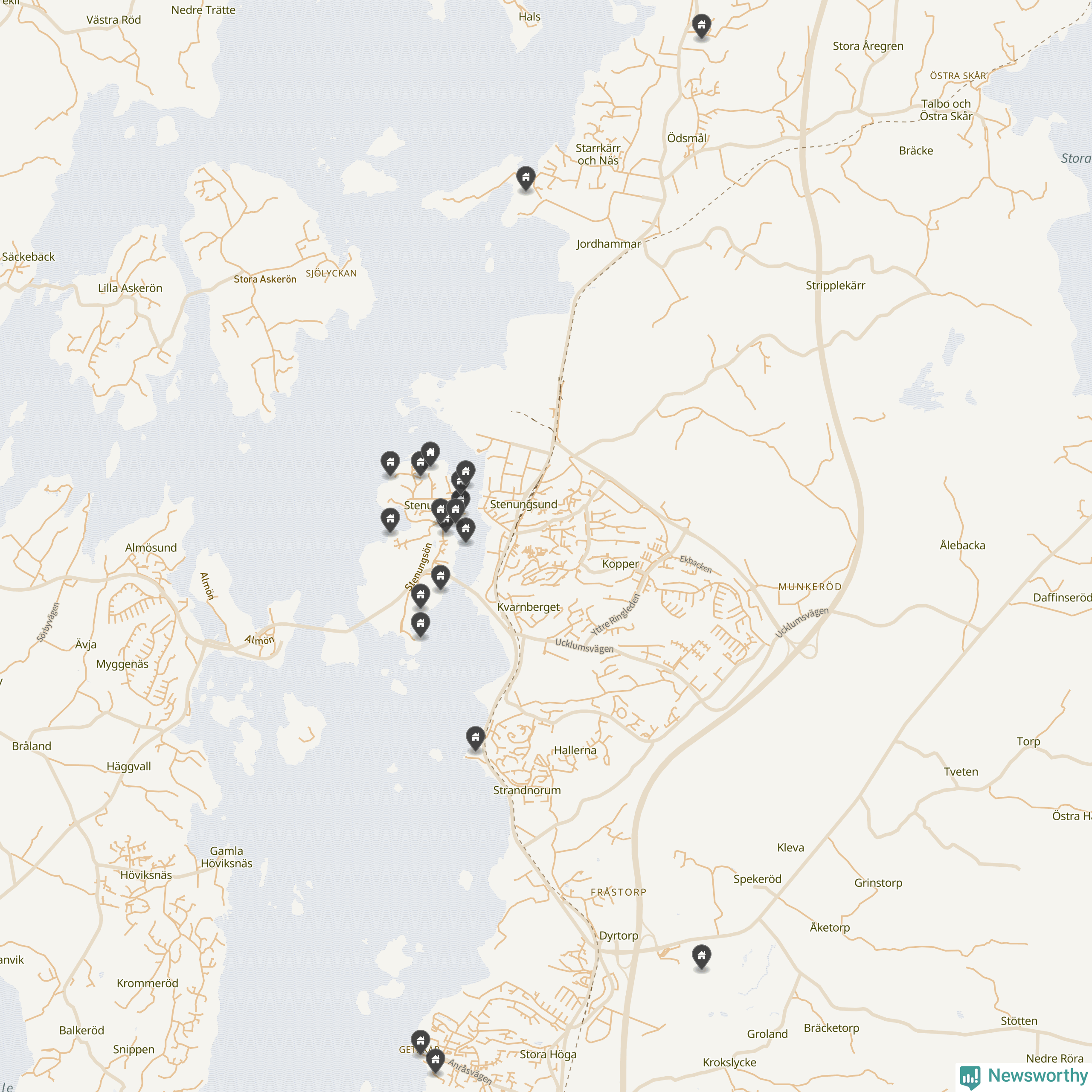 22 | Stenungsund Stenungsön 1:269 | Bagargränd 6 | 10,4 miljoner | 3 450 m² | Visa |