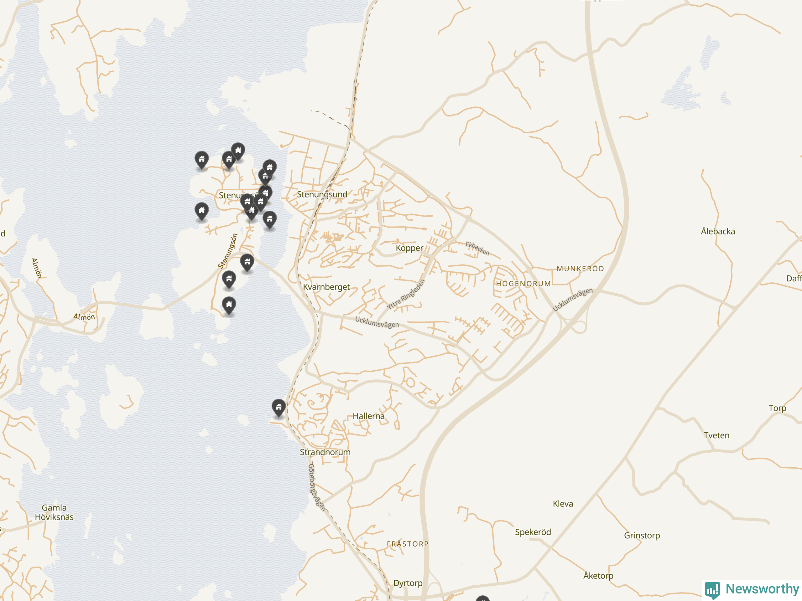 100 | Stenungsund Nösnäs 1:302 | Bäckmans Väg 7a | 7,1 miljoner | 1 011 m² | Visa |