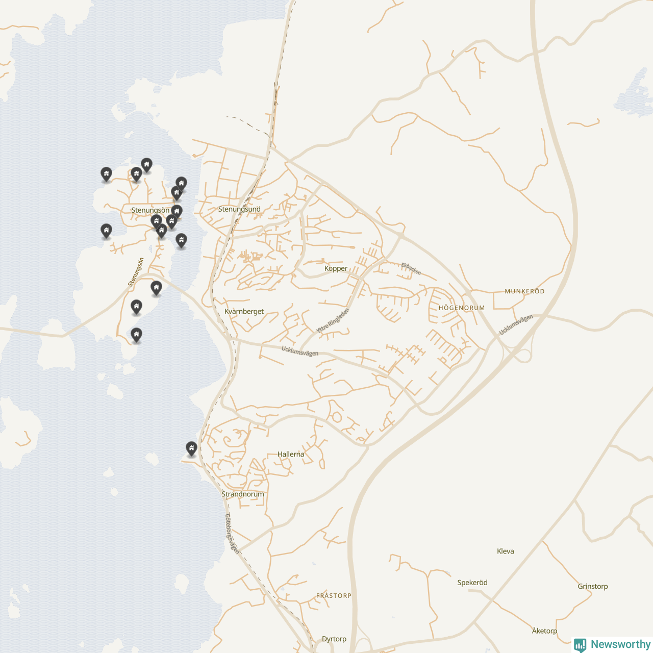 25 | Stenungsund Stenungsön 1:199 | Kochs Väg 5 | 10 miljoner | 2 035 m² | Visa |