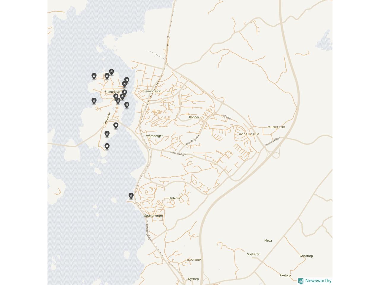 15 | Stenungsund Stenungsön 1:134 | Bagargränd 4 | 11,2 miljoner | 4 601 m² | Visa |