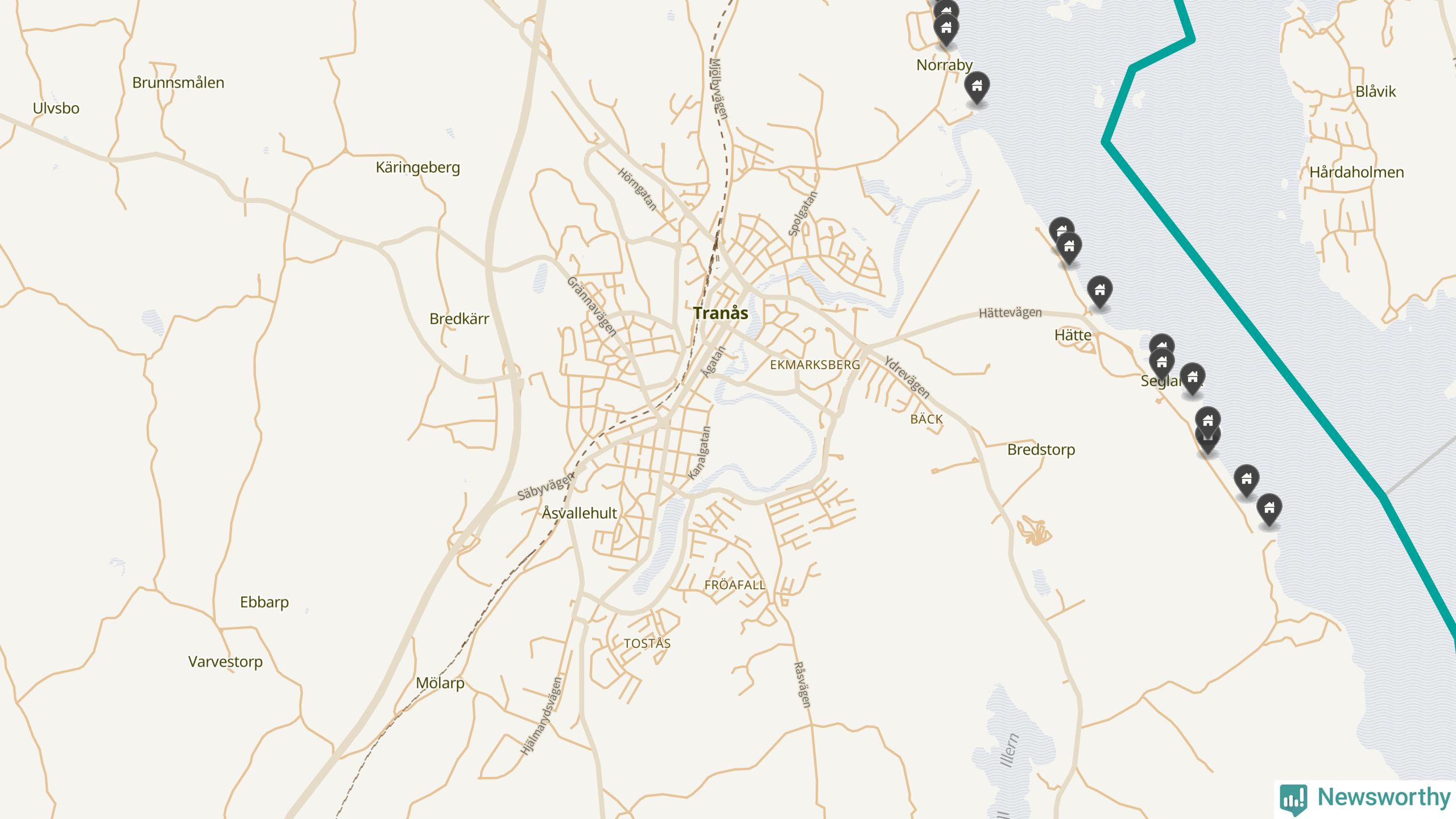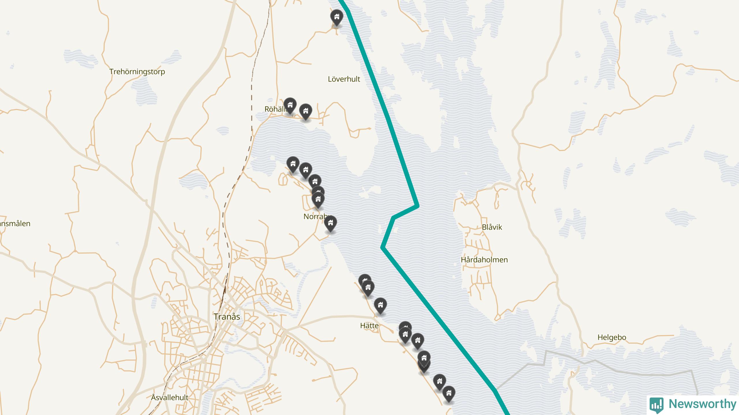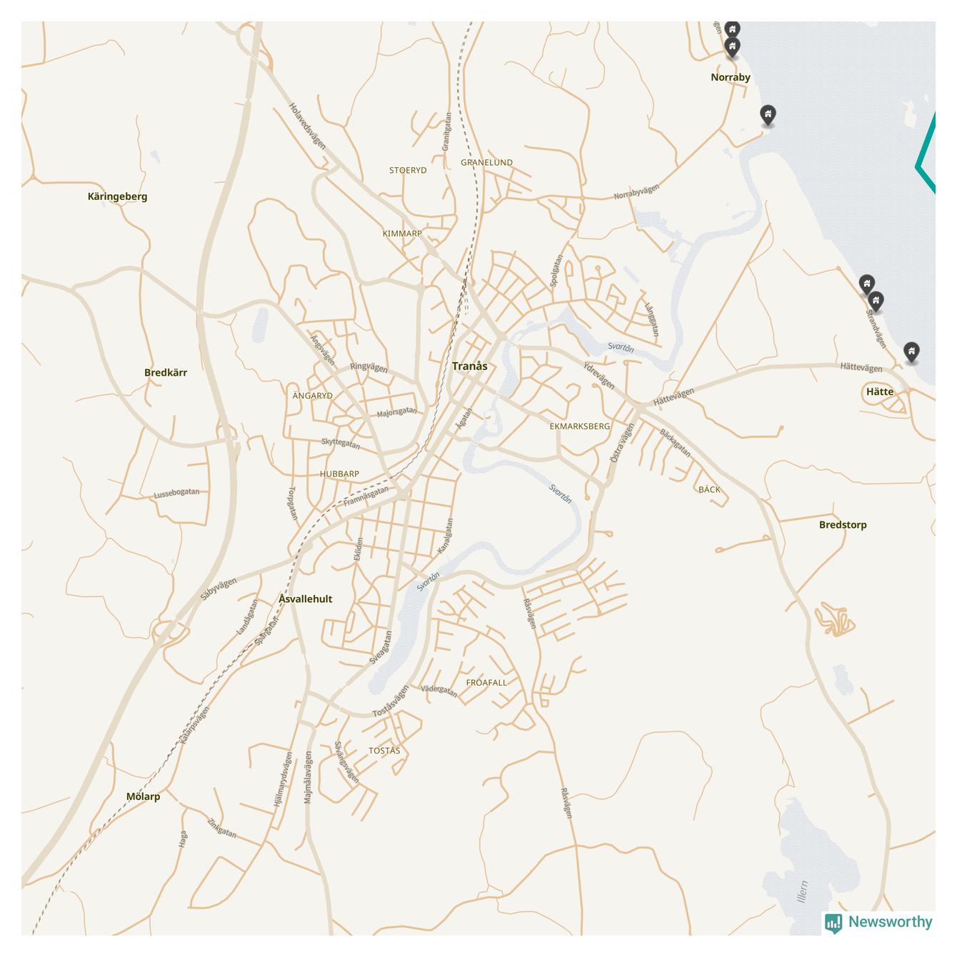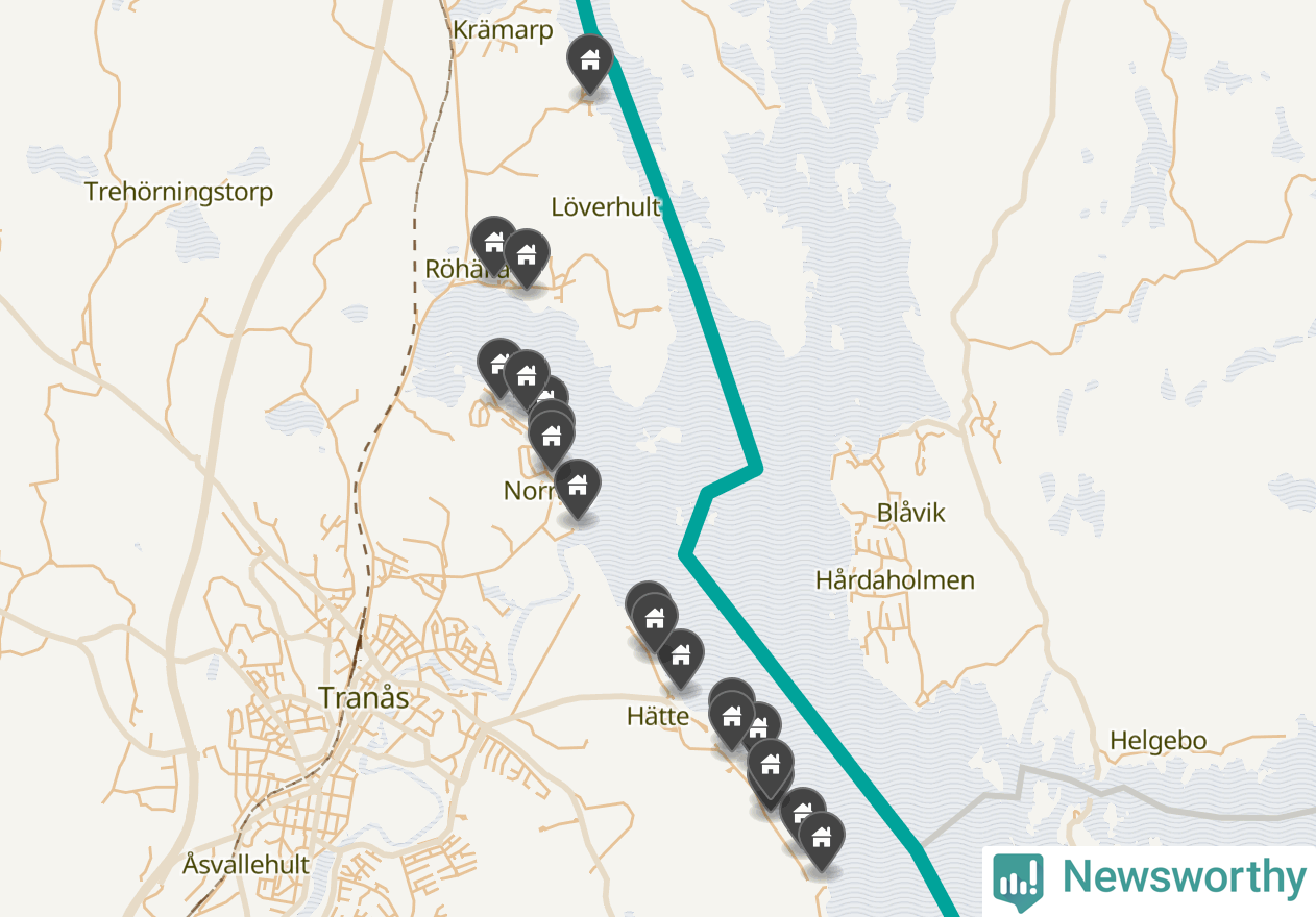 De 100 högst taxerade småhusfastigheterna i Tranås har ett snittvärde på 6,9 miljoner kronor, vilket är något högre än snittet för alla kommuners 100 högst taxerade småhus. Det visar Newsworthys genomgång av kommunernas högst taxerade småhusfastigheter, som sammanställts med hjälp av data från The intelligence company.