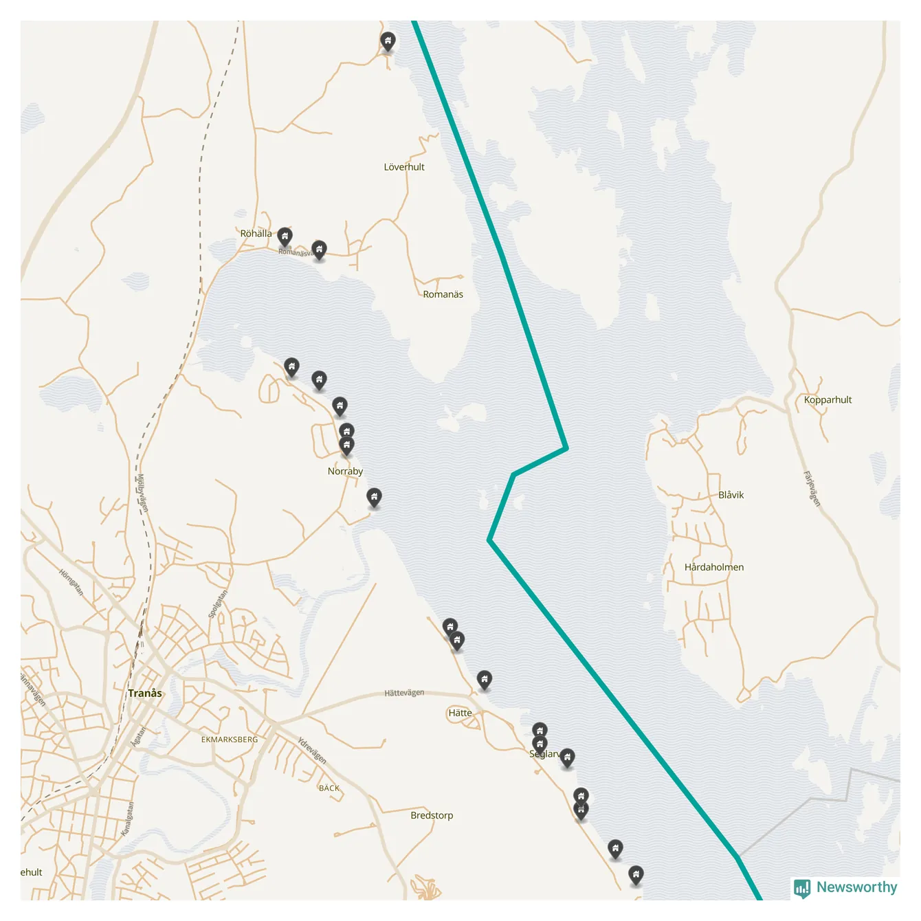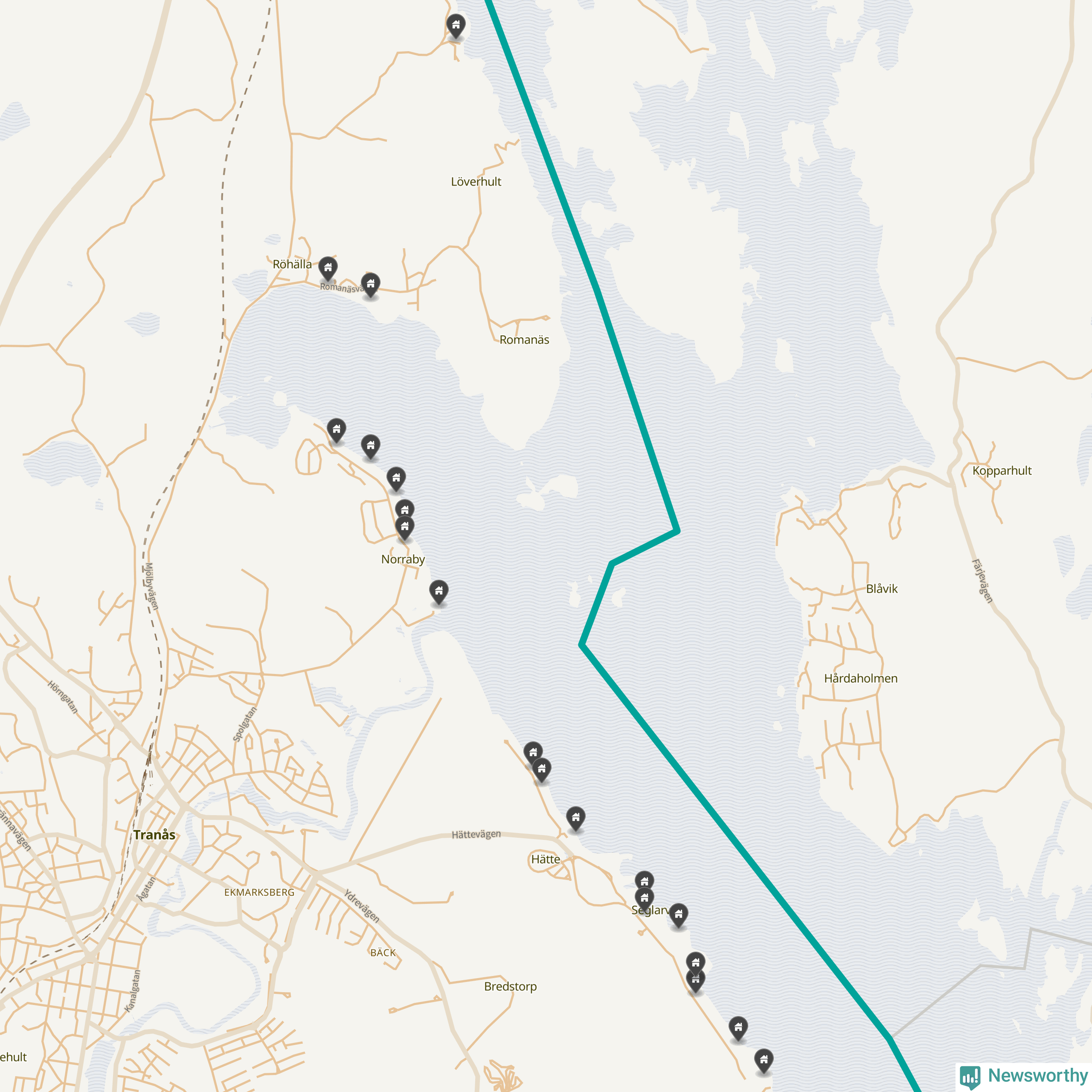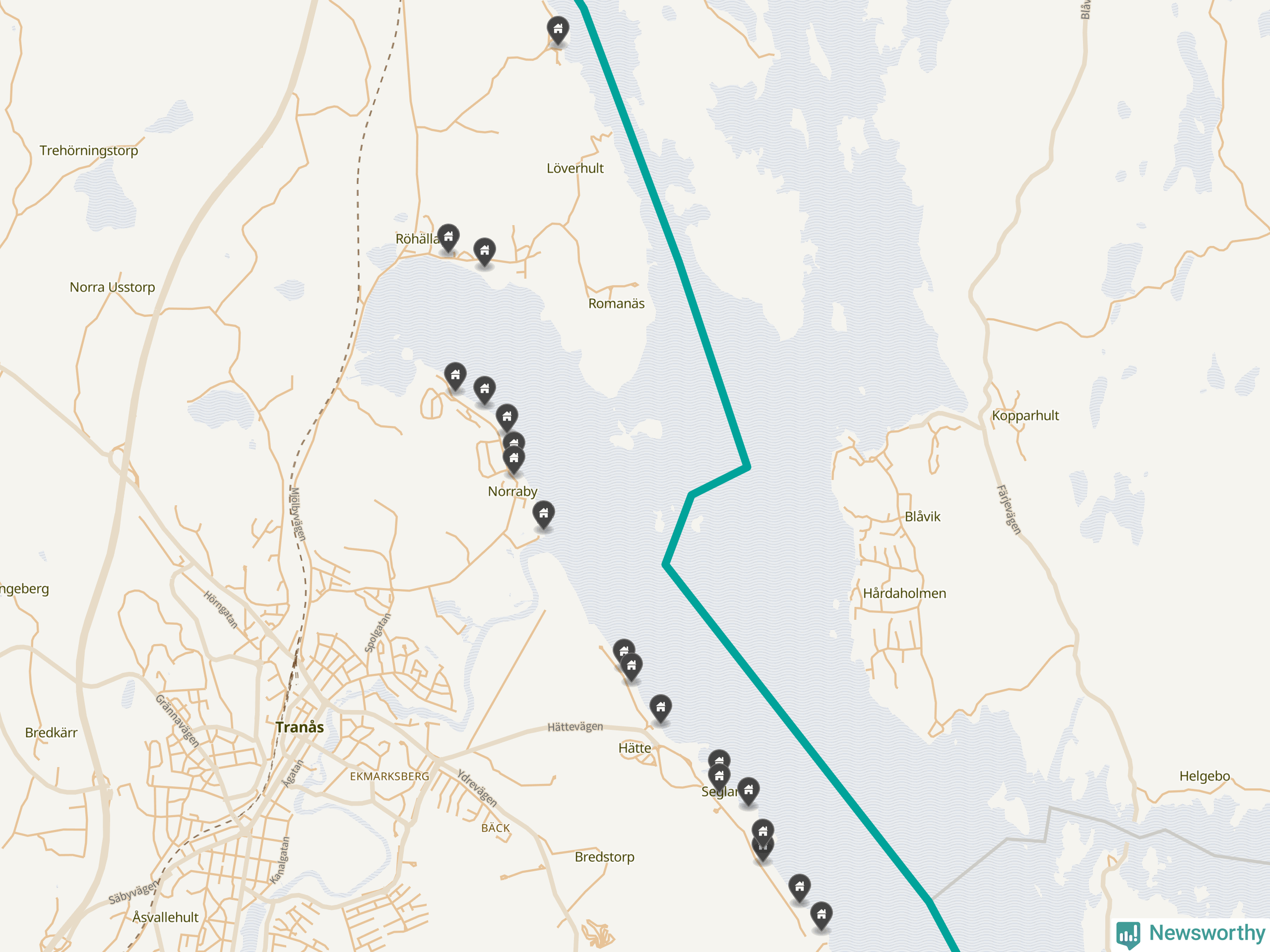 De 100 högst taxerade småhusfastigheterna i Tranås har ett snittvärde på 6,9 miljoner kronor, vilket är något högre än snittet för alla kommuners 100 högst taxerade småhus. Det visar Newsworthys genomgång av kommunernas högst taxerade småhusfastigheter, som sammanställts med hjälp av data från The intelligence company.