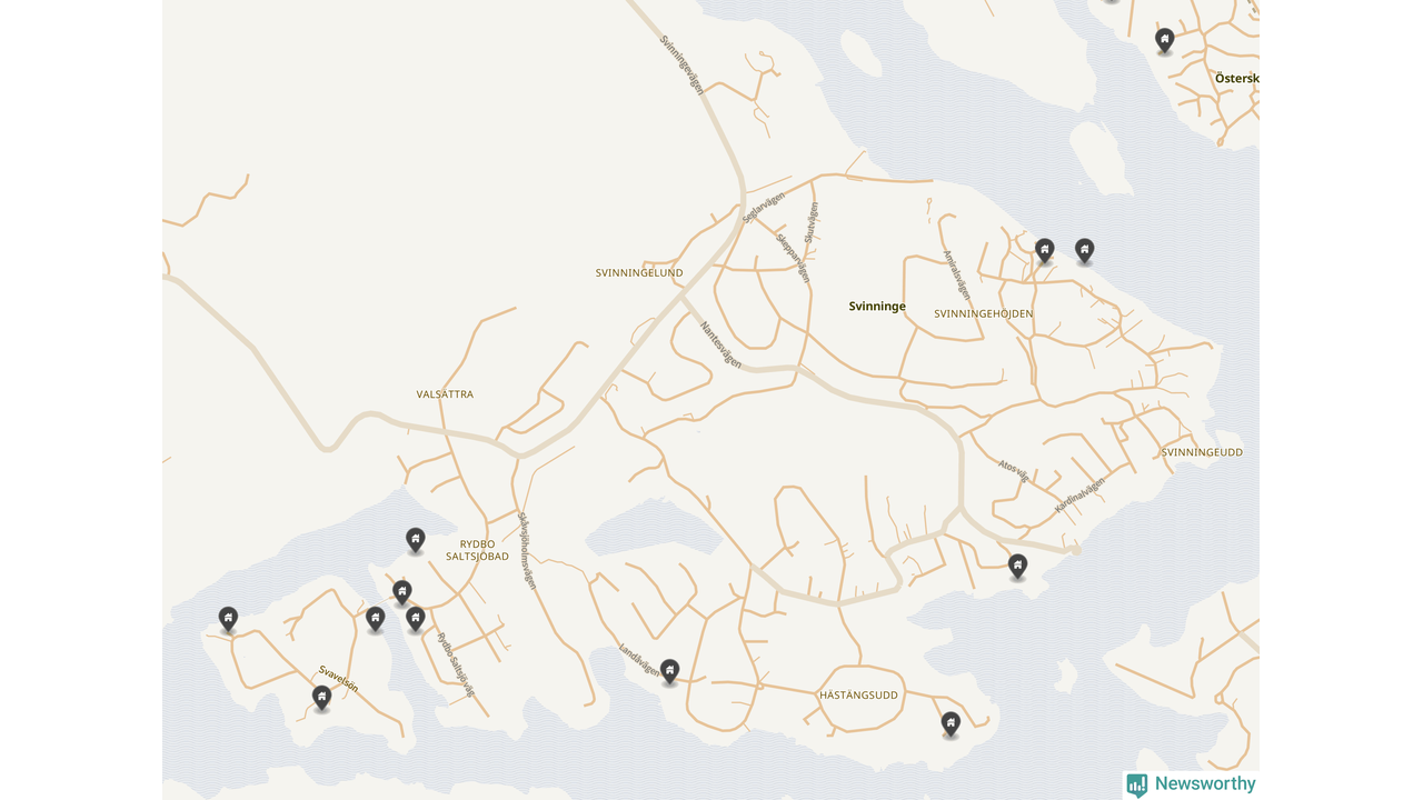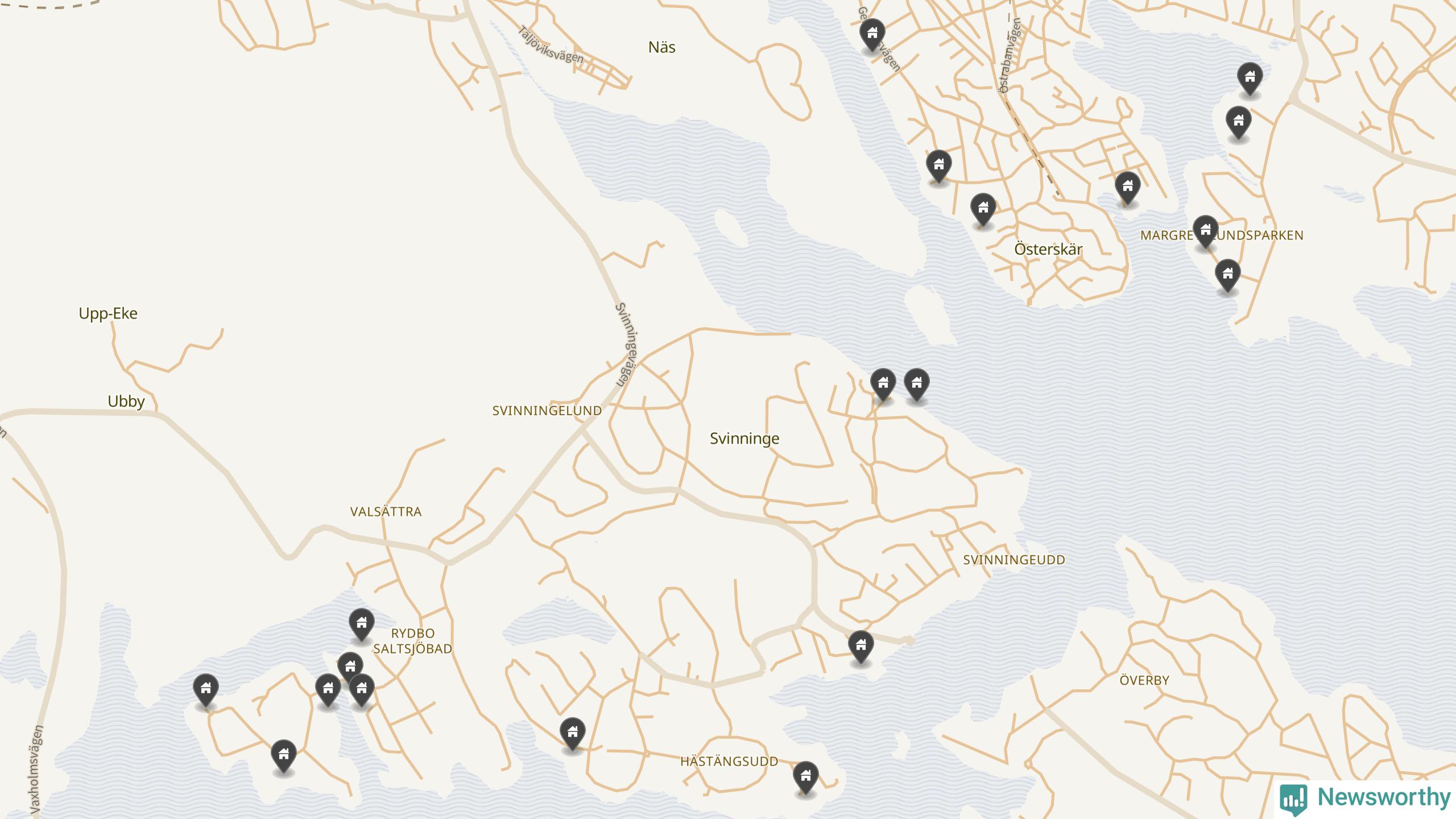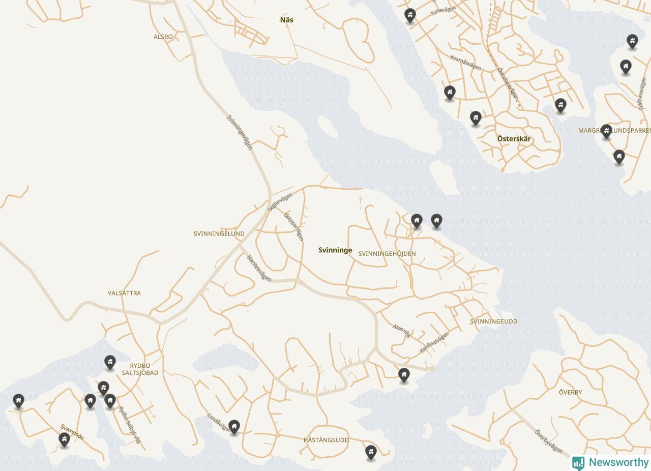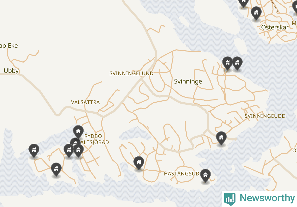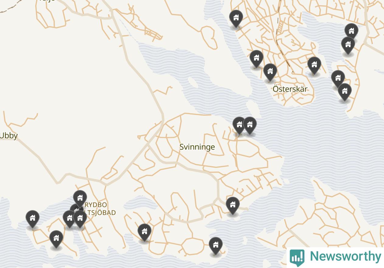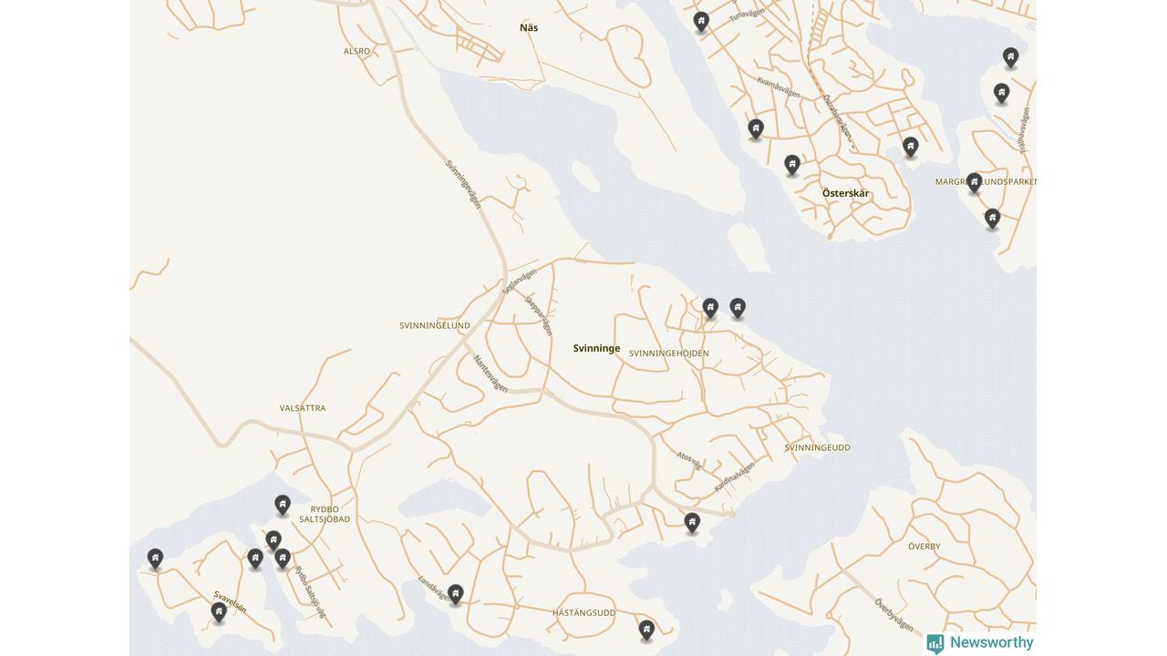 6 | Österåker Svinninge 3:158 | Havsuddsvägen 12 | 18,4 miljoner | 2 149 m² | Visa |
