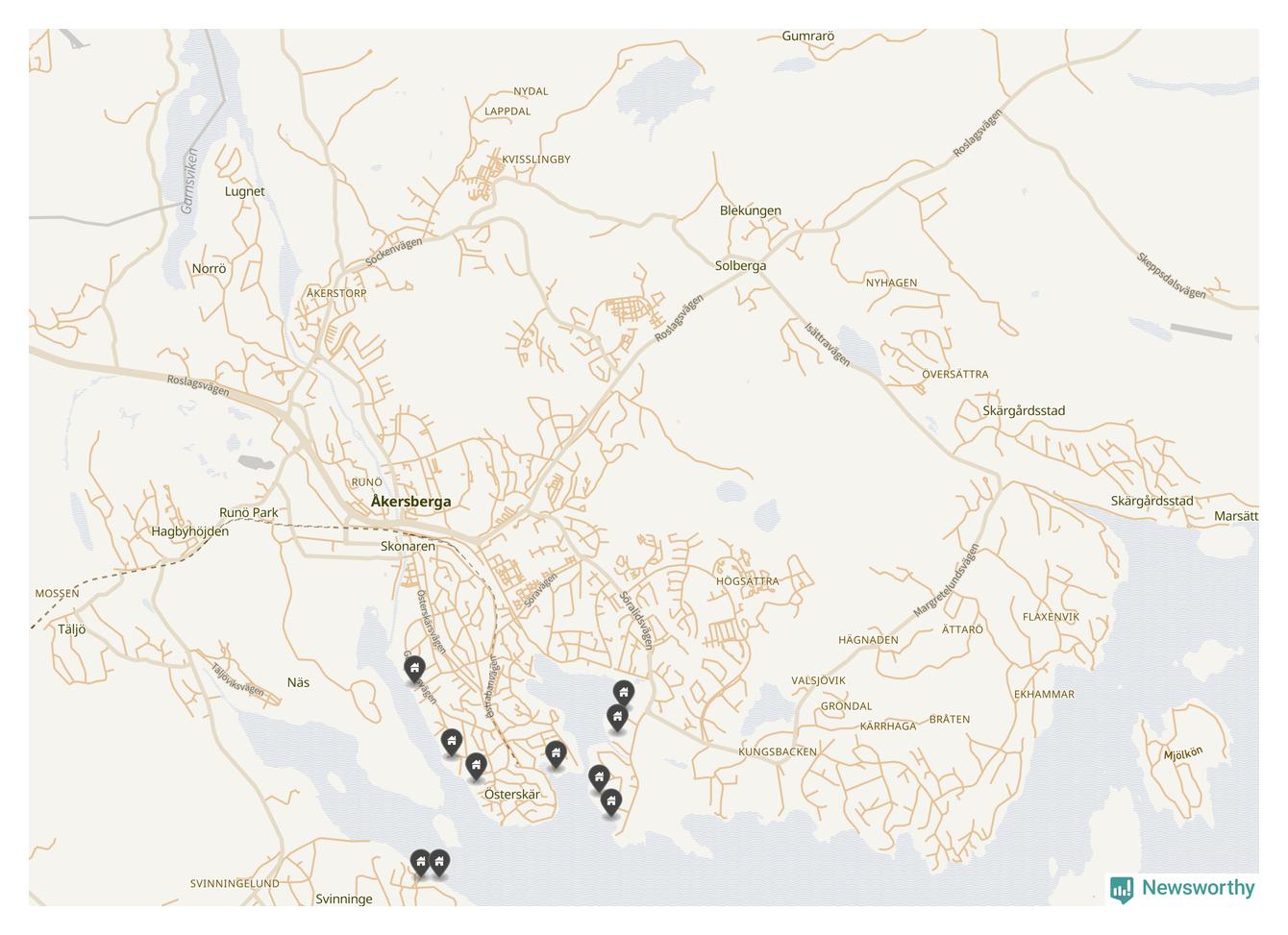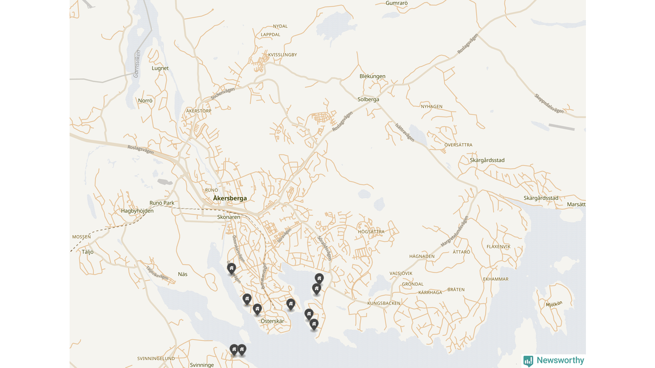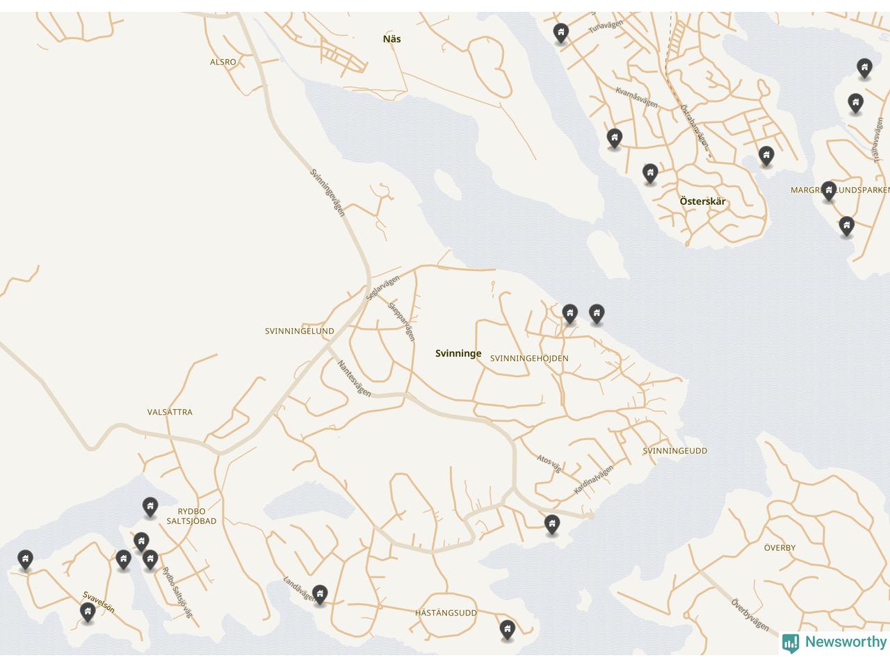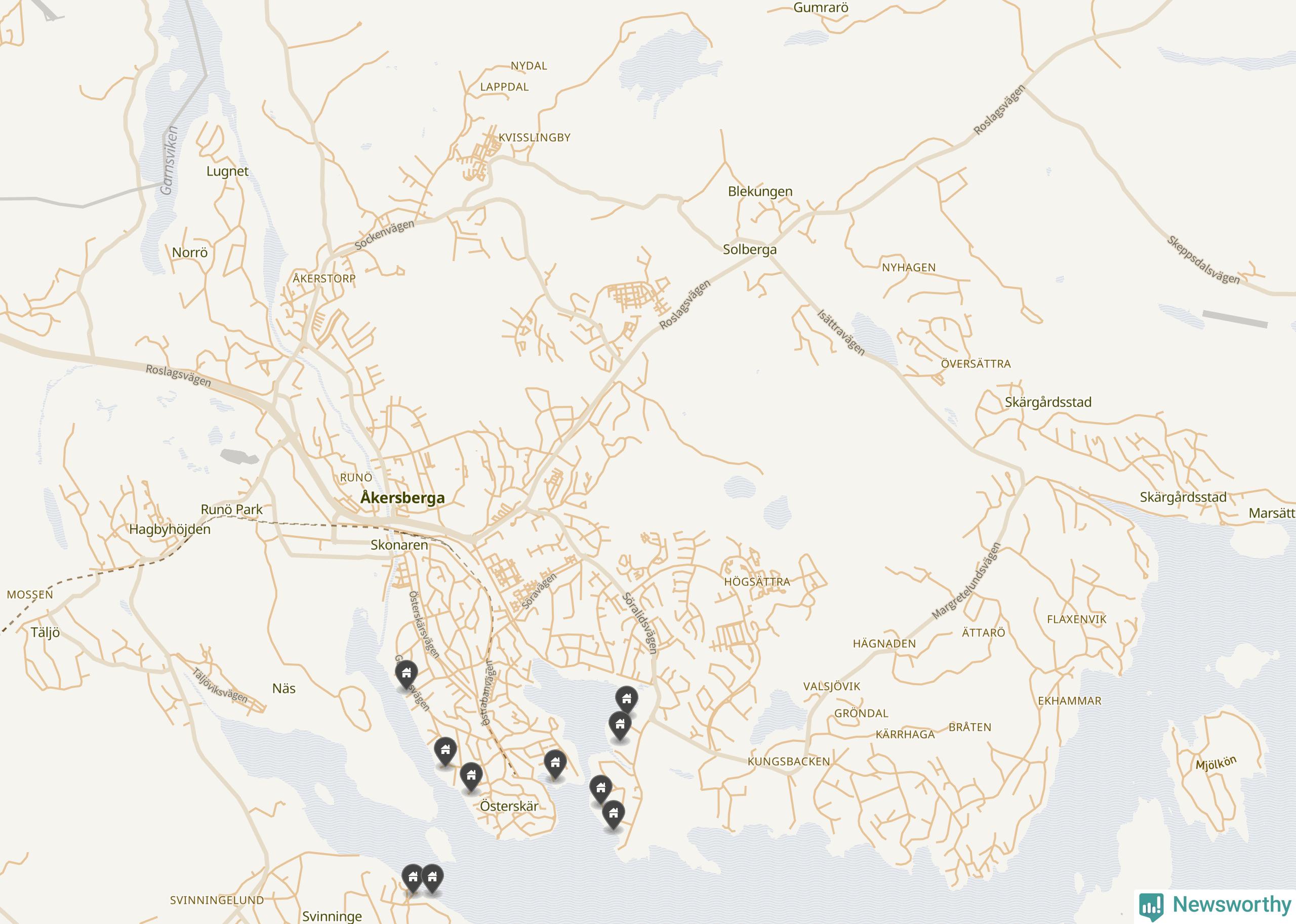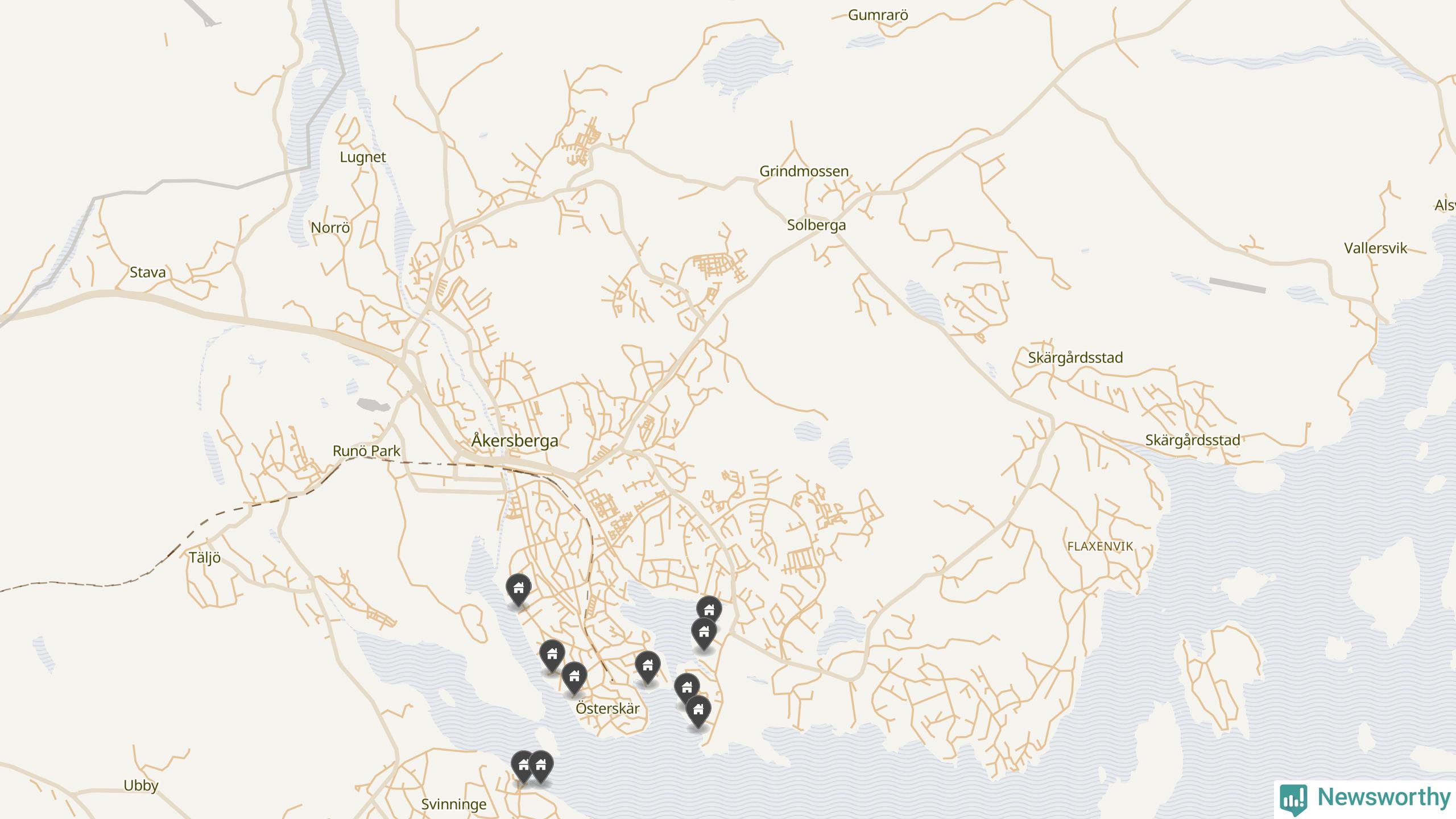6 | Österåker Svinninge 3:158 | Havsuddsvägen 12 | 18,4 miljoner | 2 149 m² | Visa |