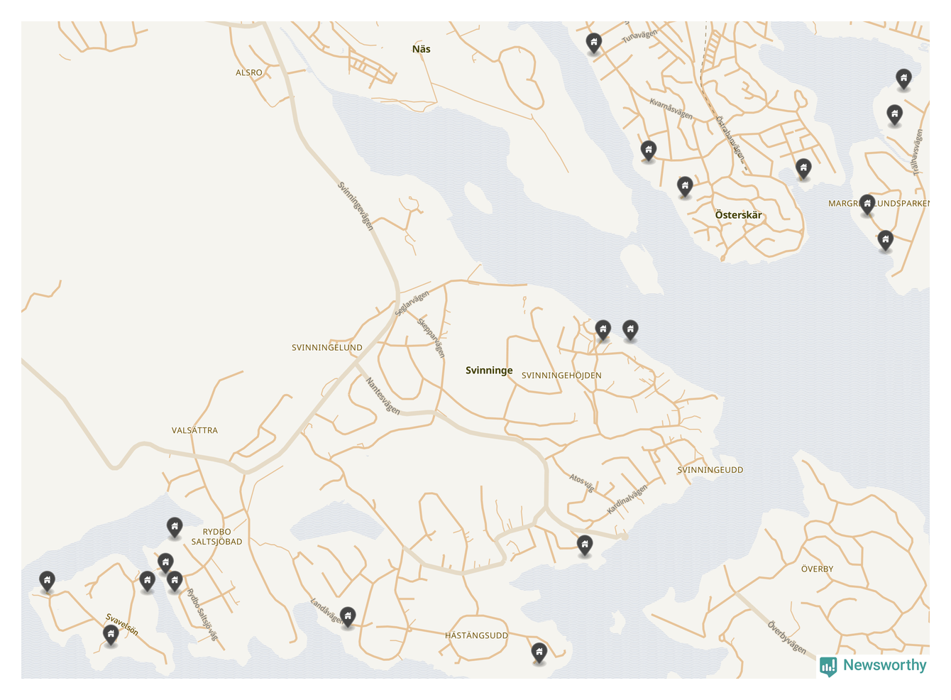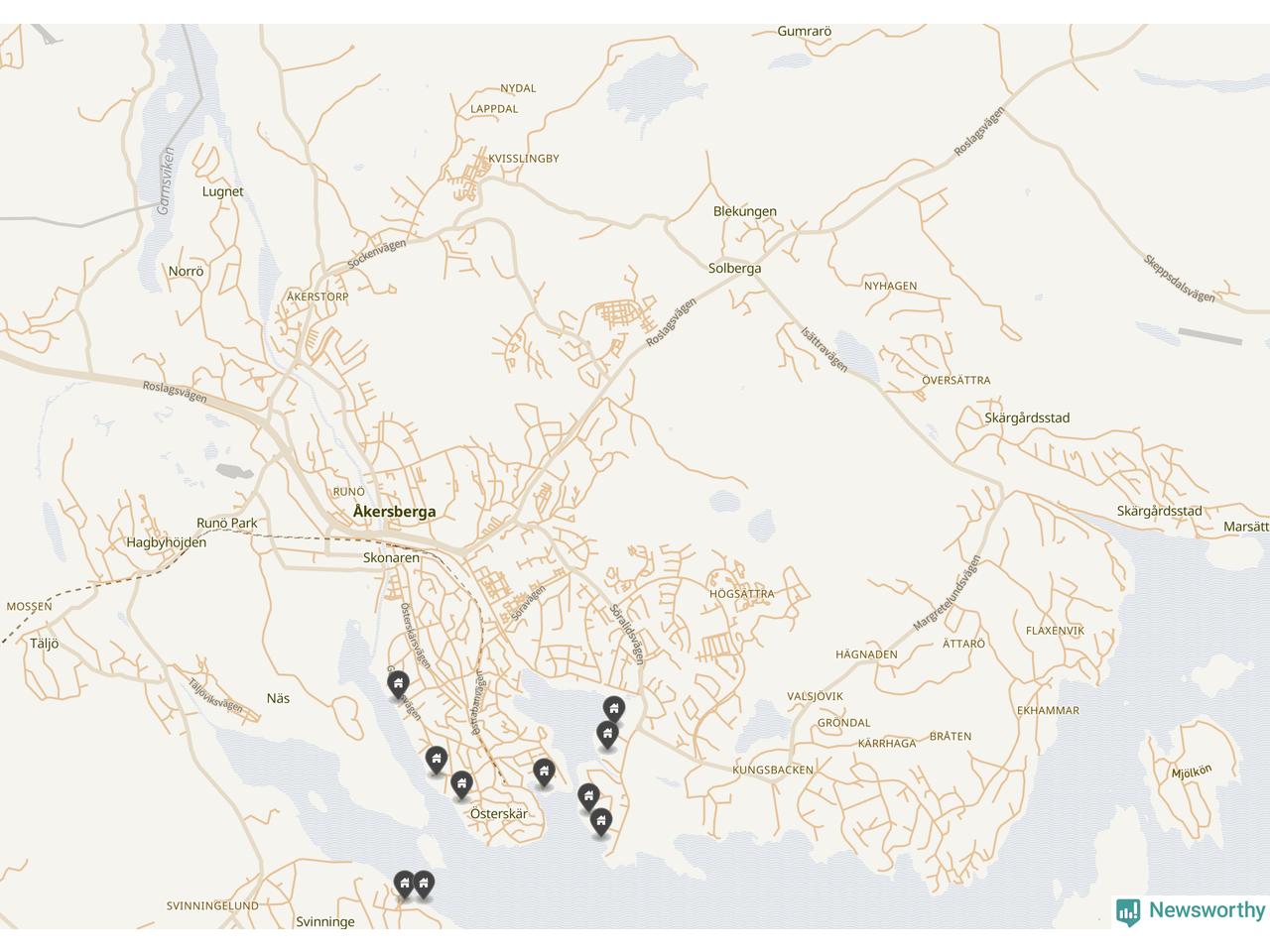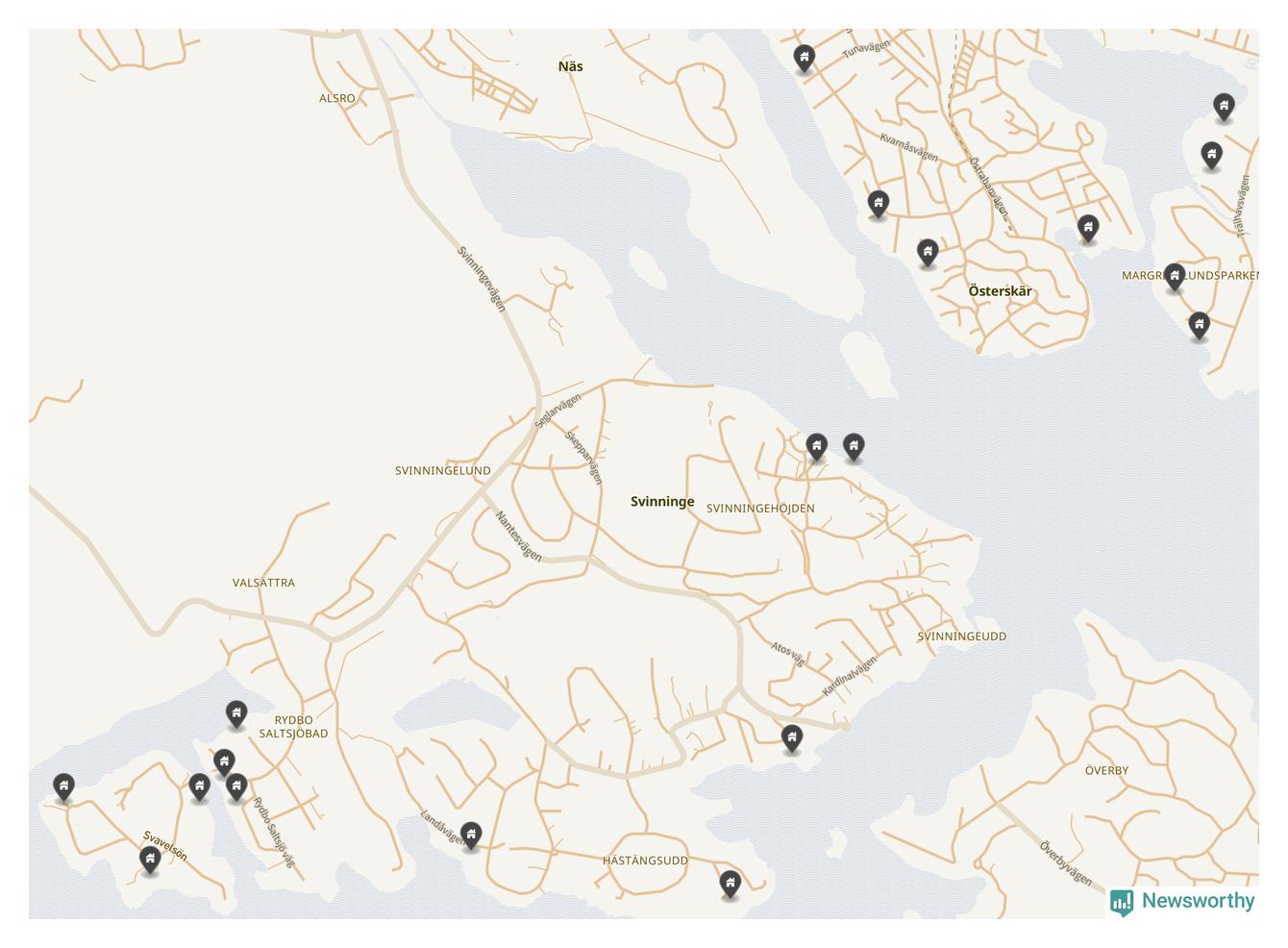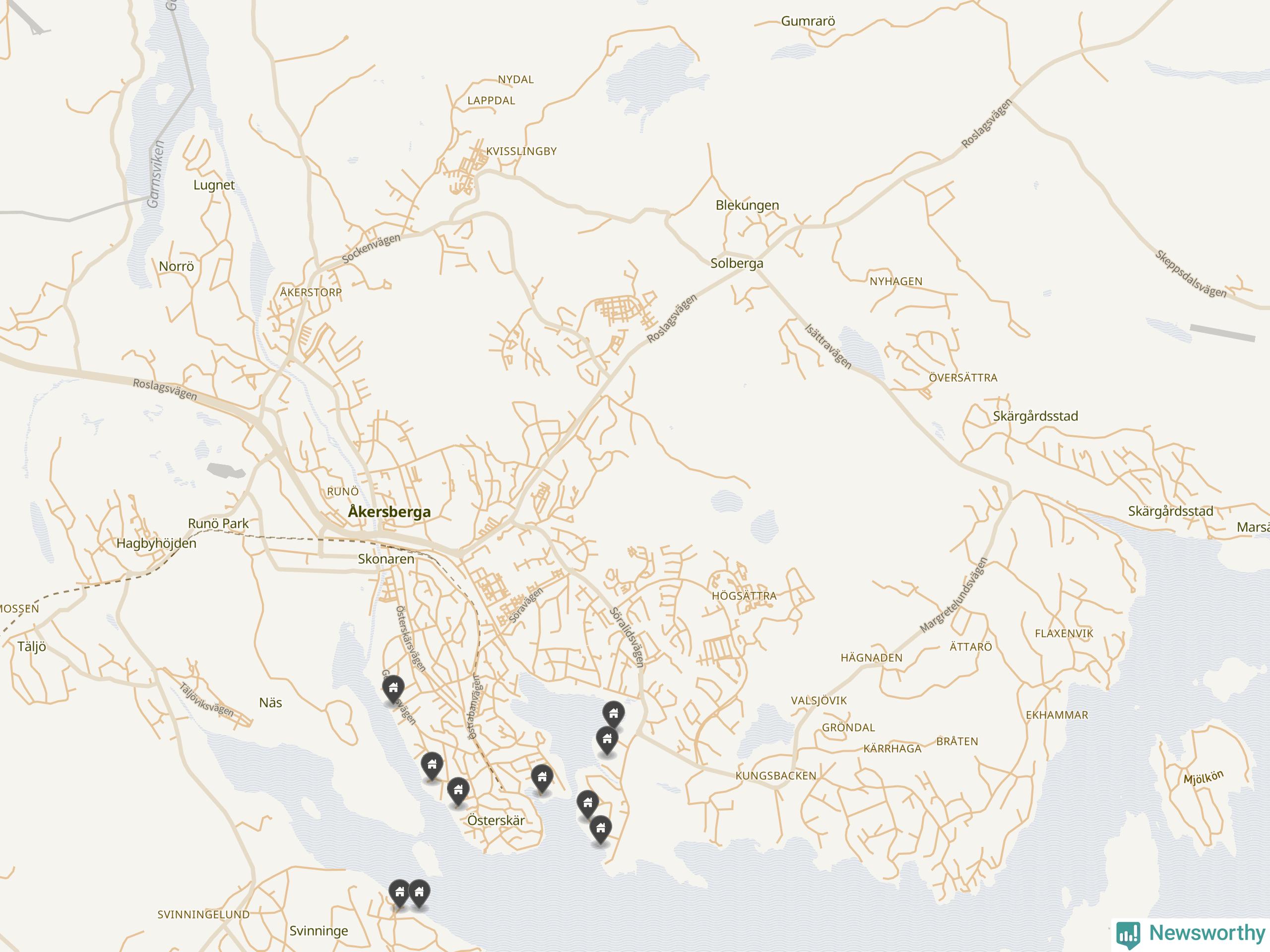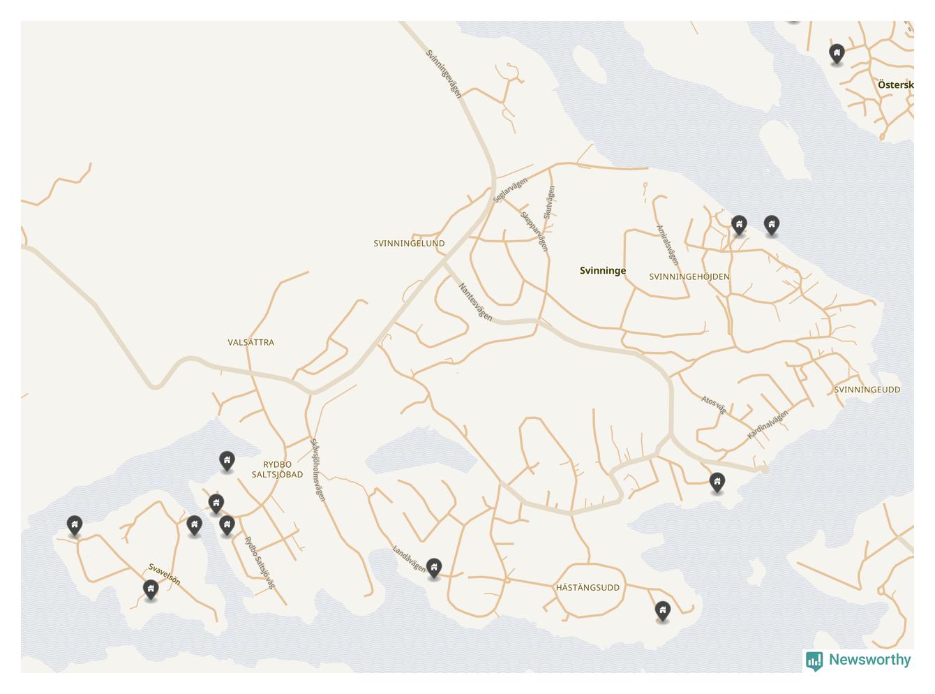 6 | Österåker Svinninge 3:158 | Havsuddsvägen 12 | 18,4 miljoner | 2 149 m² | Visa |