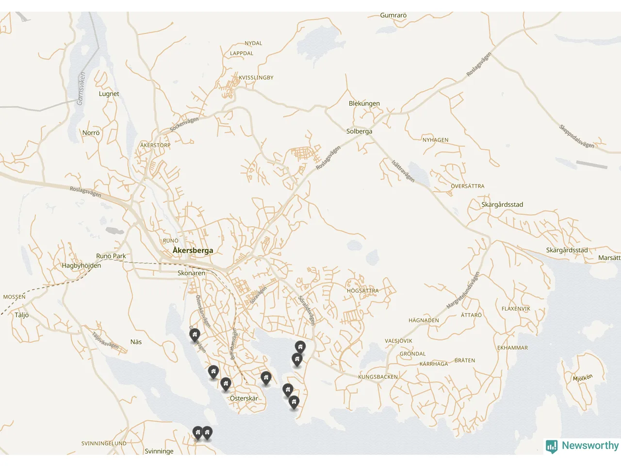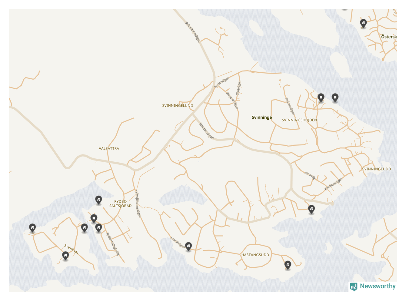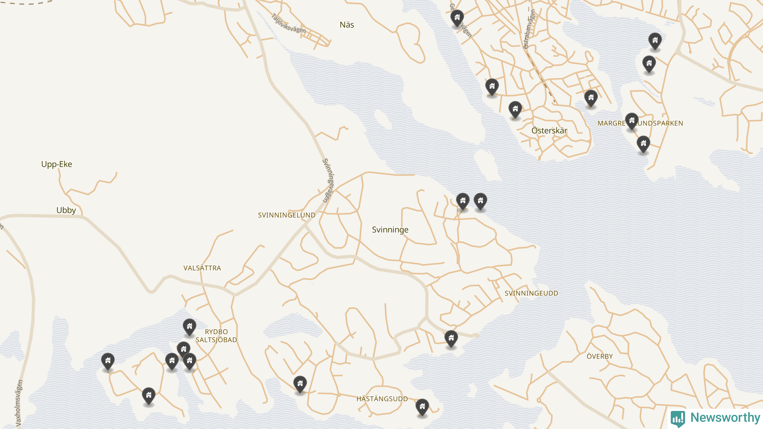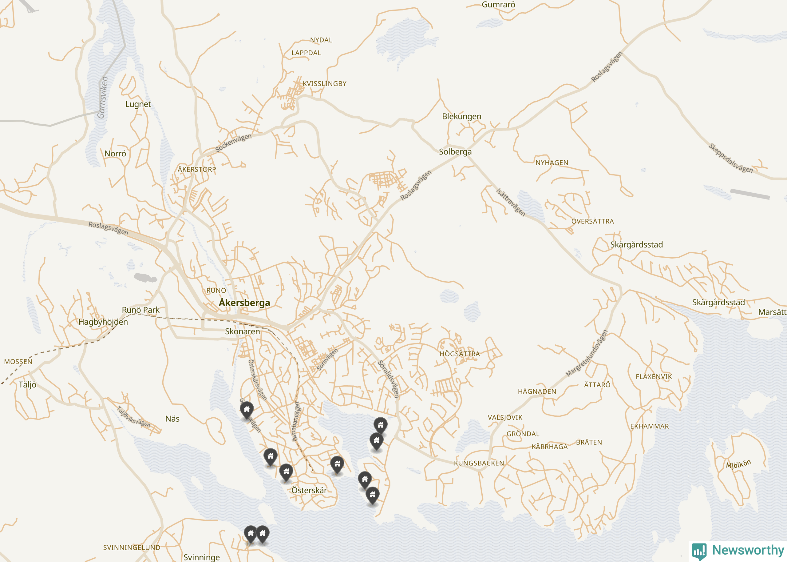 De 100 högst taxerade småhusfastigheterna i Österåker har ett snittvärde på 15,6 miljoner kronor, vilket är omkring tio miljoner högre än snittet för alla kommuners 100 högst taxerade småhus. Det visar Newsworthys genomgång av kommunernas högst taxerade småhusfastigheter, som sammanställts med hjälp av data från The intelligence company.