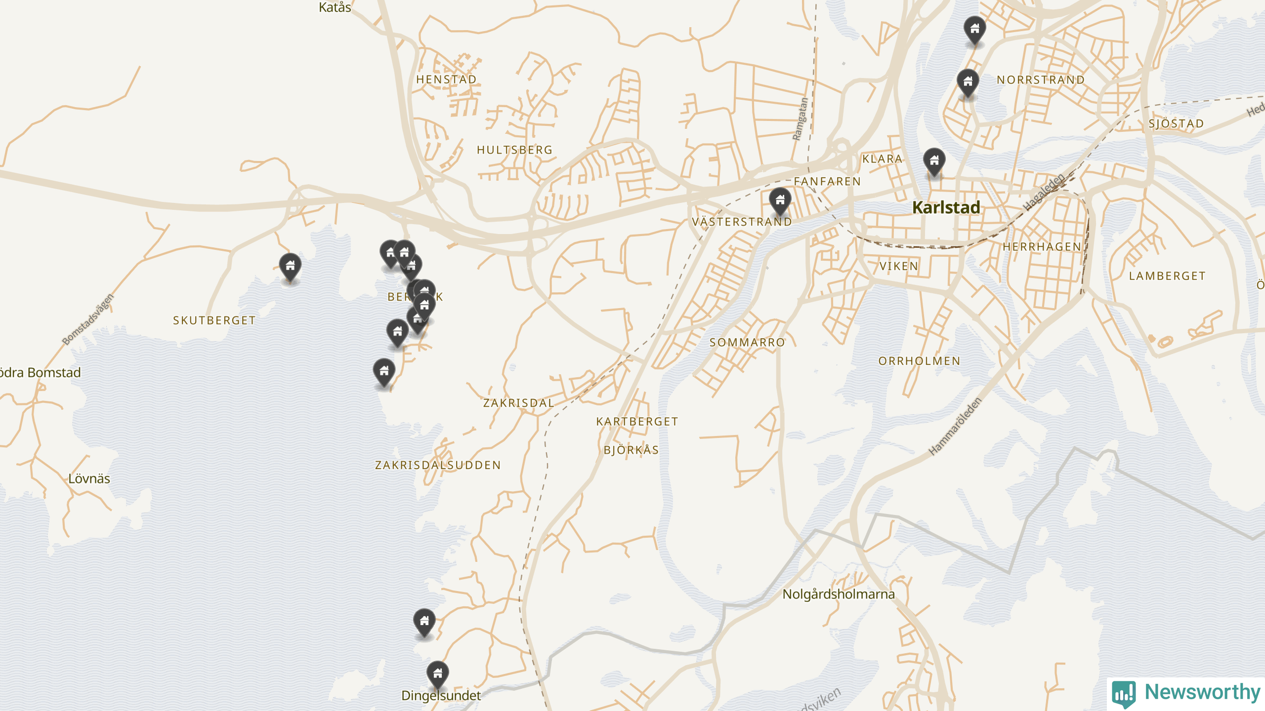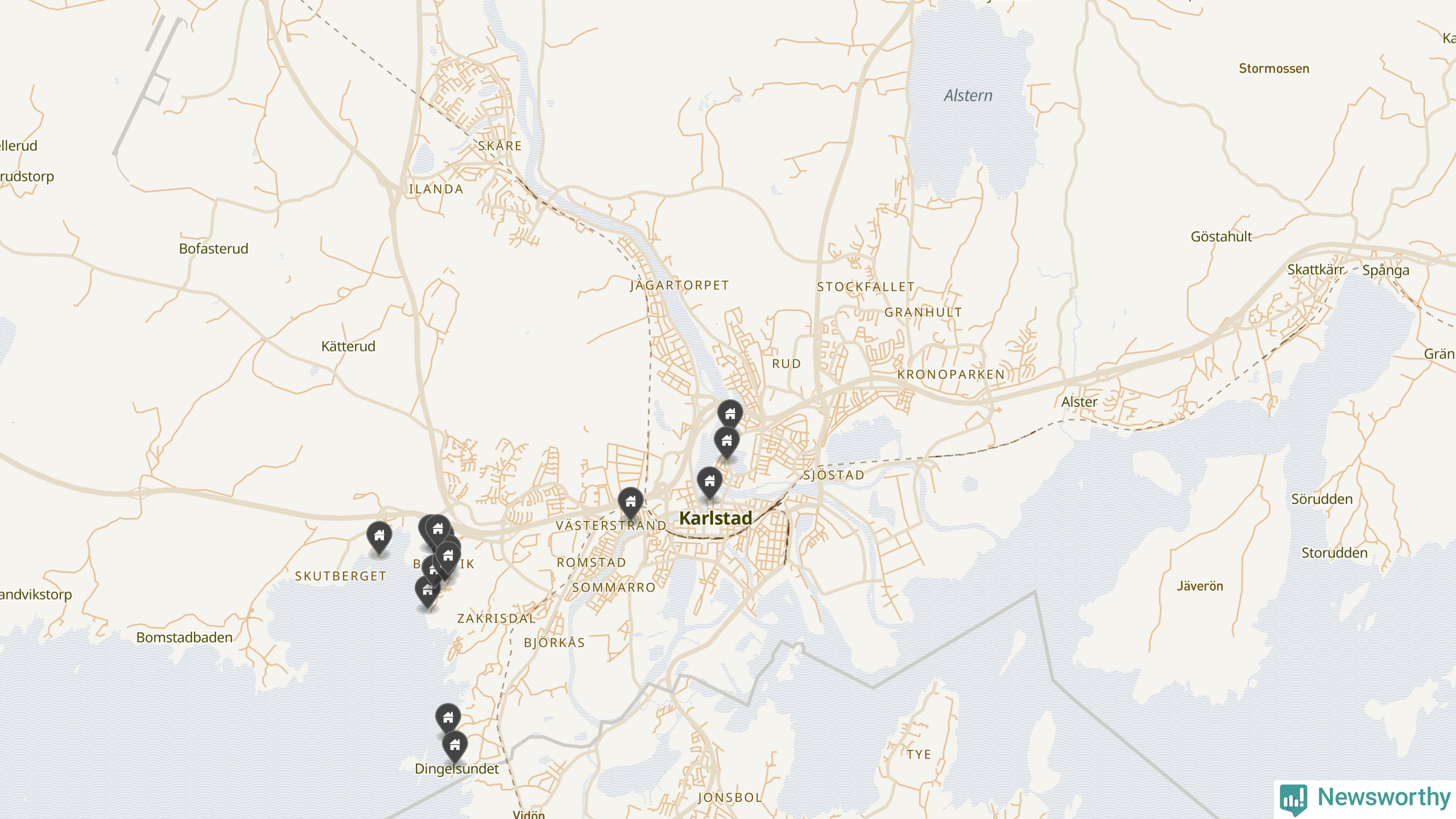 De 100 högst taxerade småhusfastigheterna i Karlstad har ett snittvärde på nio miljoner kronor, vilket är omkring tre miljoner högre än snittet för alla kommuners 100 högst taxerade småhus. Det visar Newsworthys genomgång av kommunernas högst taxerade småhusfastigheter, som sammanställts med hjälp av data från The intelligence company.