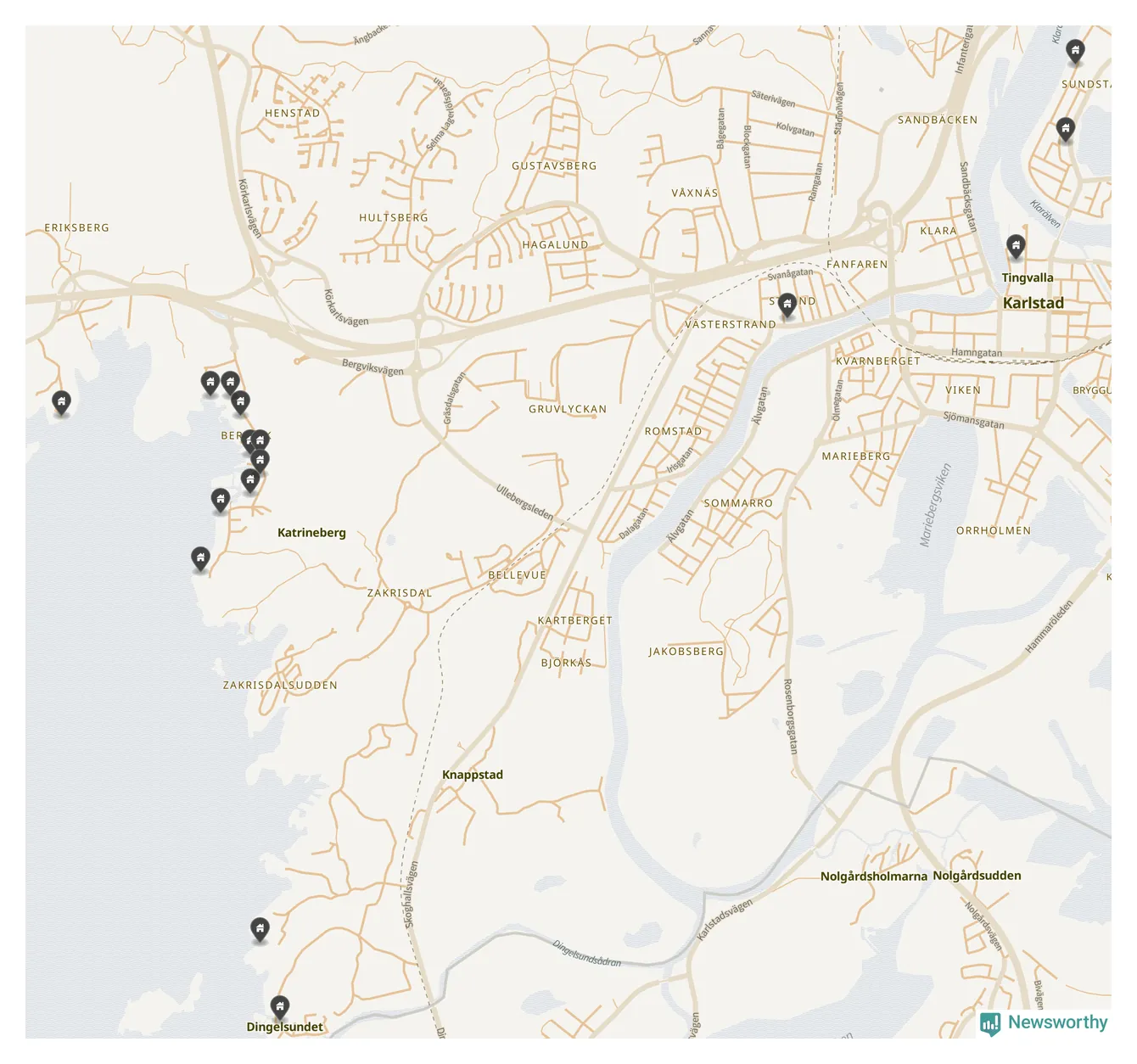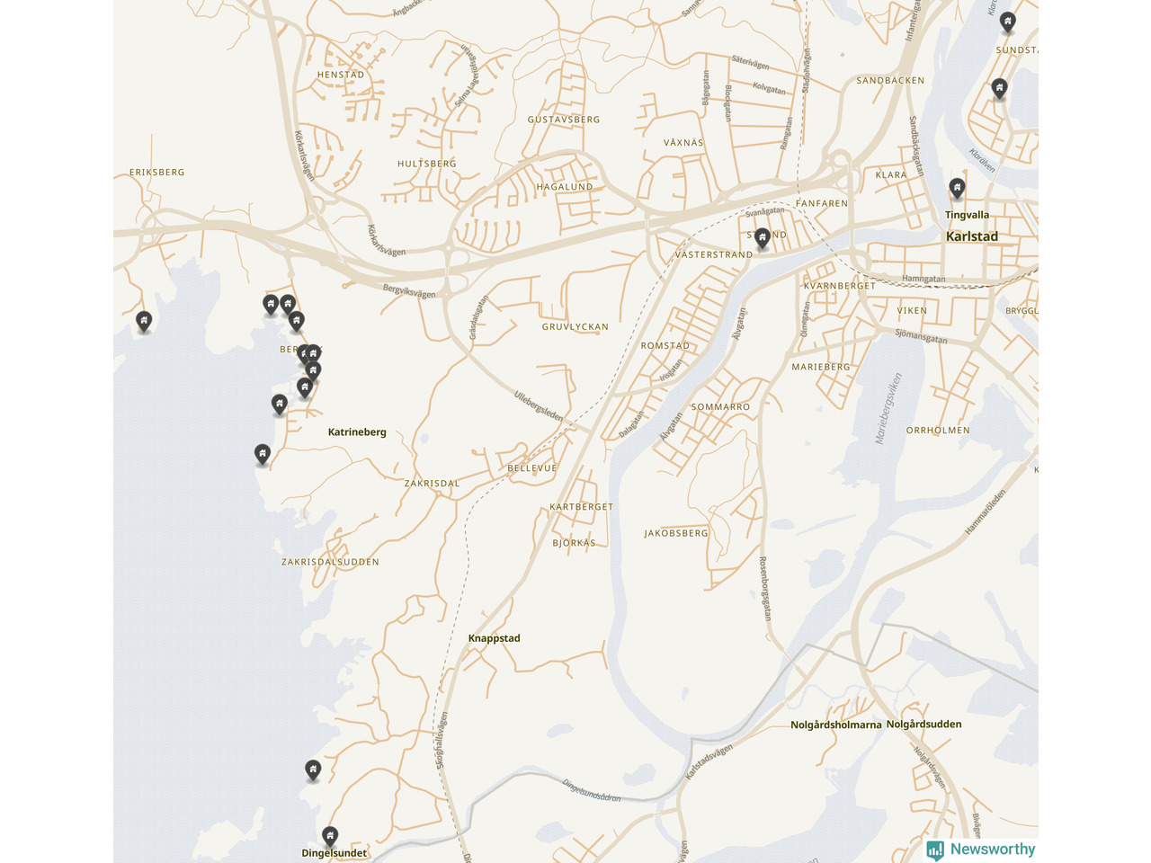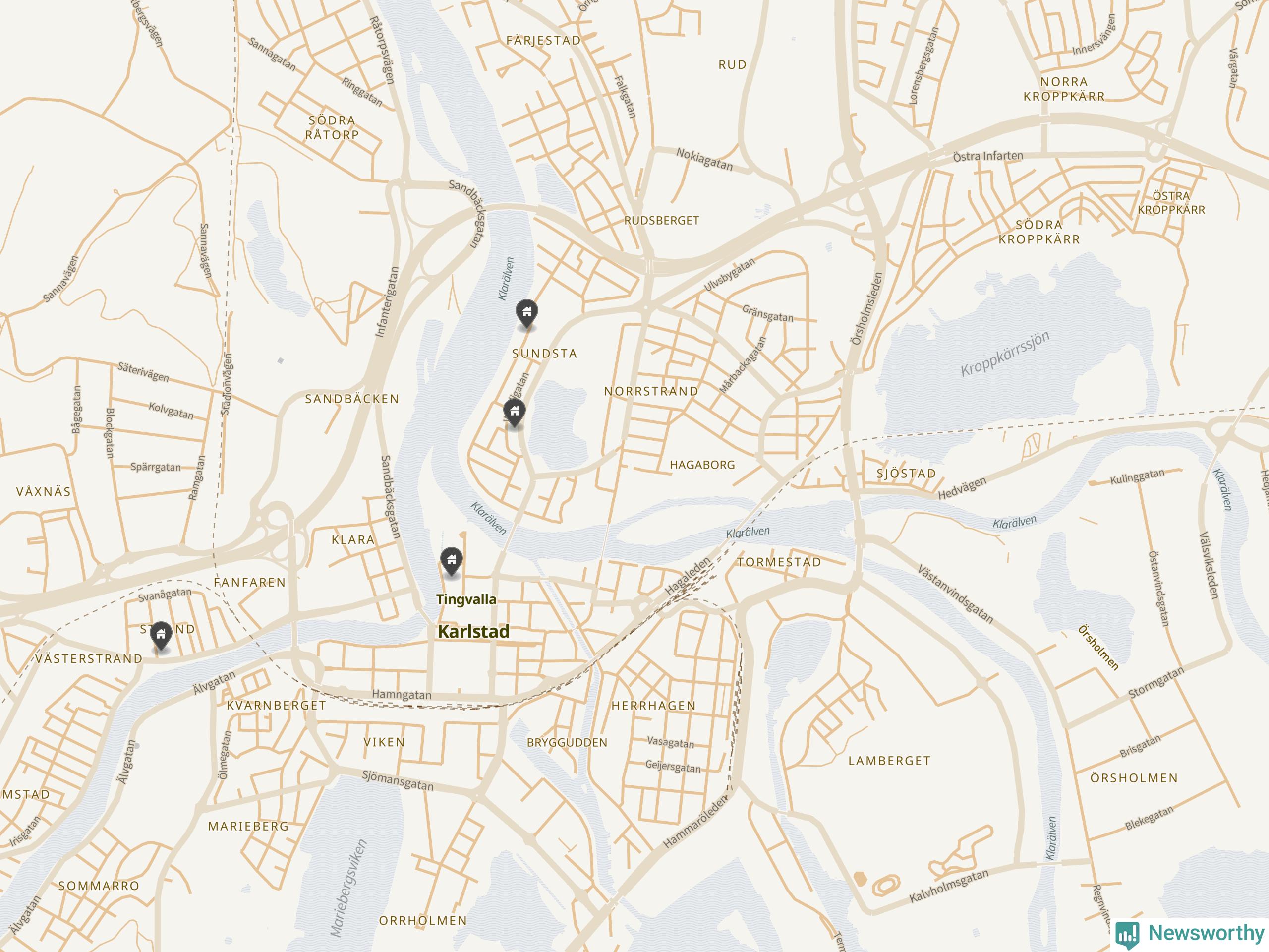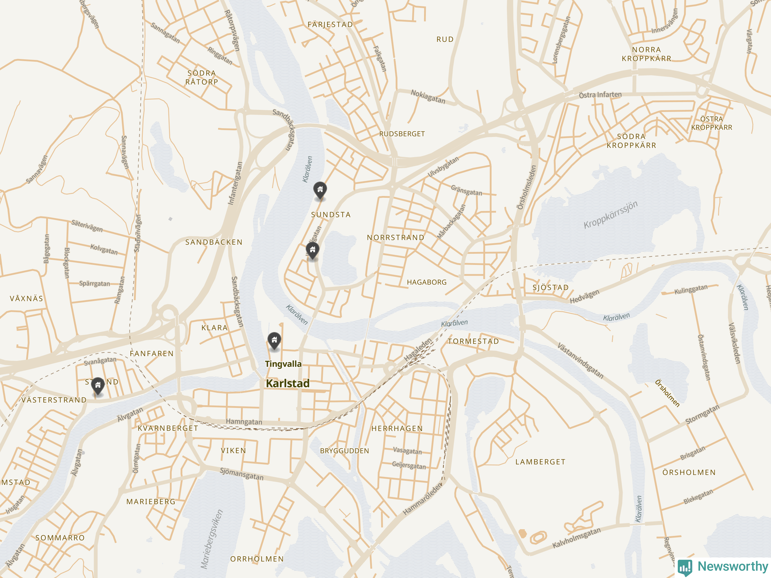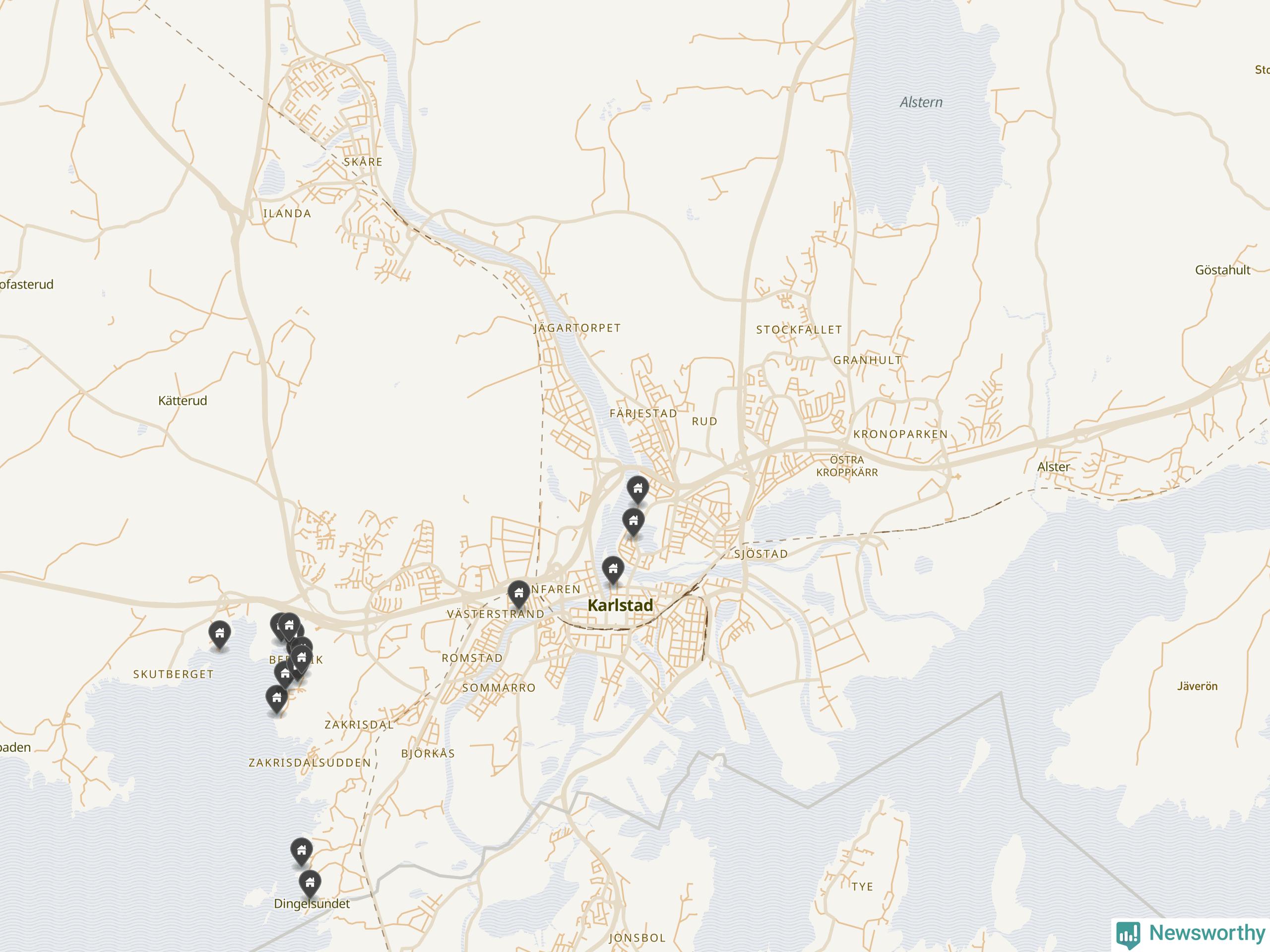 40 | Karlstad Bergvik 1:47 | Frykmans Väg 20 | 8,9 miljoner | 1 866 m² | Visa |