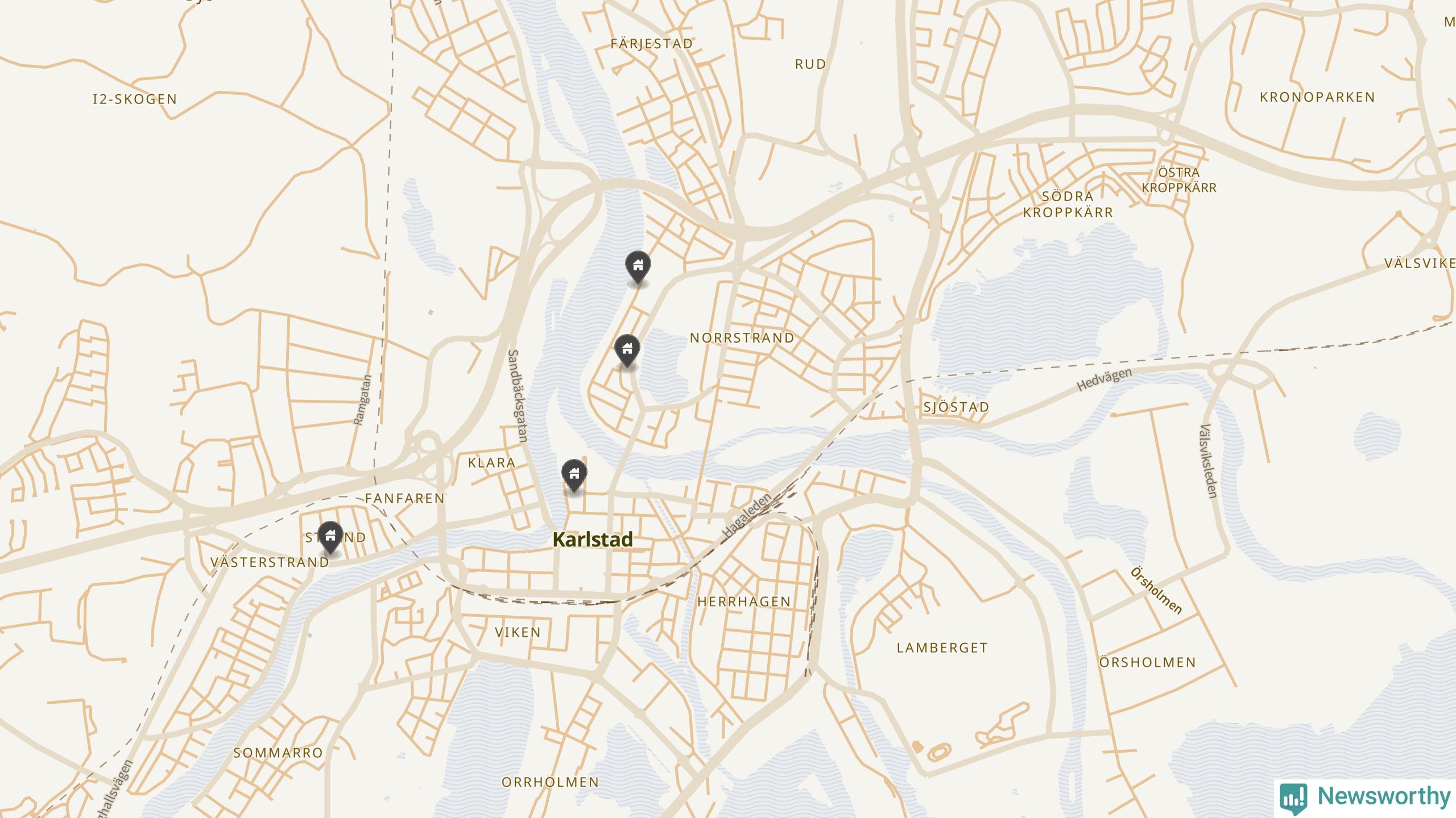 55 | Karlstad Viskan 1 | Odengatan 4 | 8,5 miljoner | 1 251 m² | Visa |