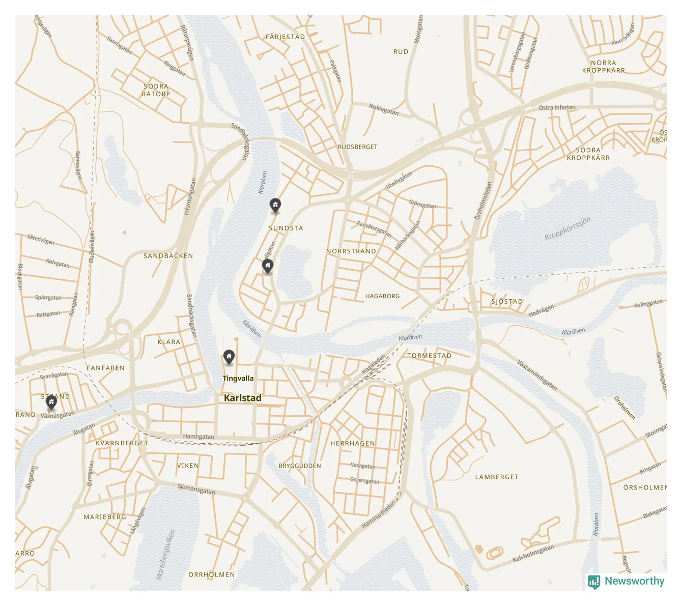 3 | Karlstad Bergvik 1:122 | Frykmans Väg 18d | 12,6 miljoner | 3 158 m² | Visa |