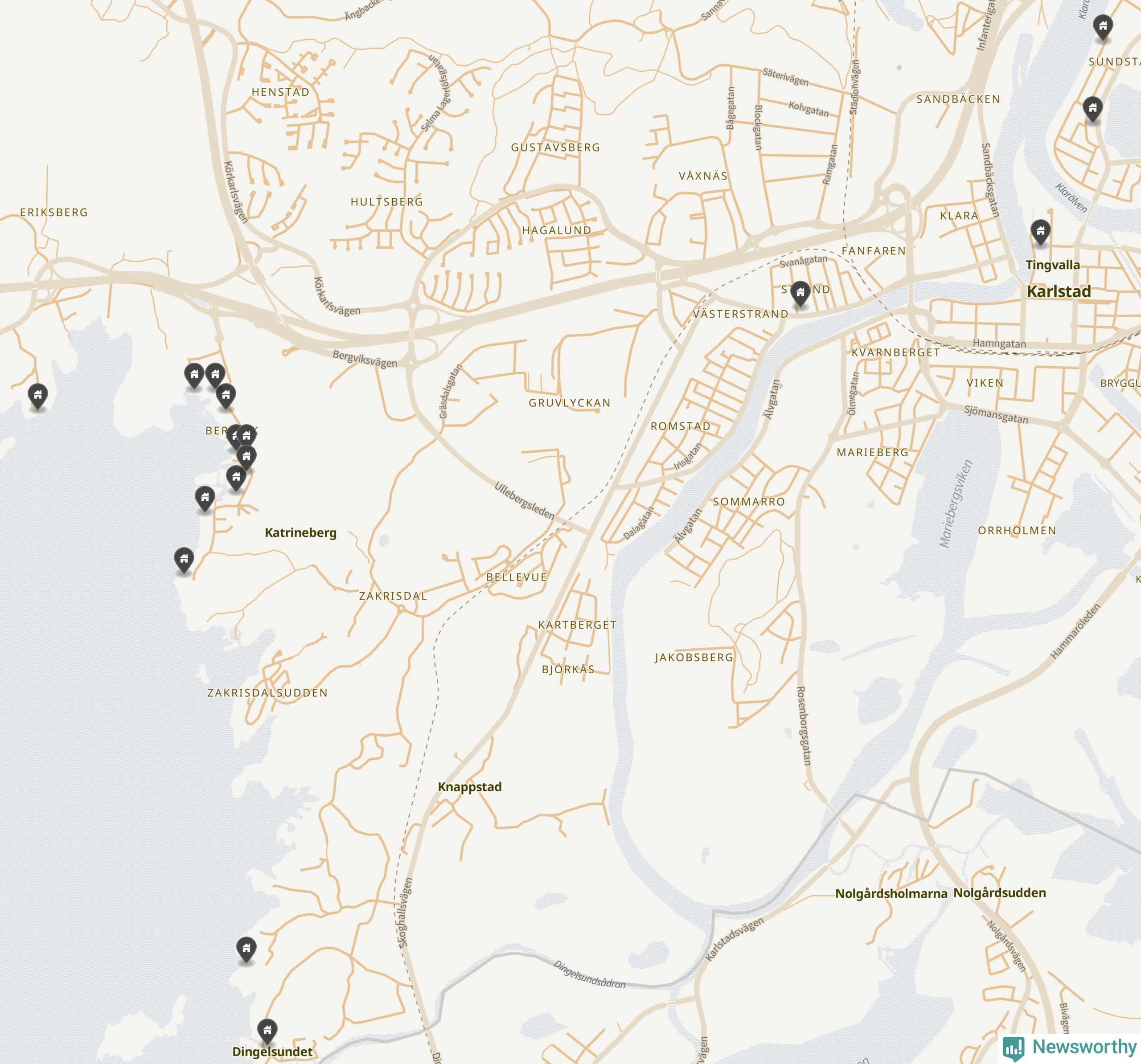 47 | Karlstad Dingelsundet 2:89 | Dingelsundet 330 | 8,7 miljoner | 2 140 m² | Visa |