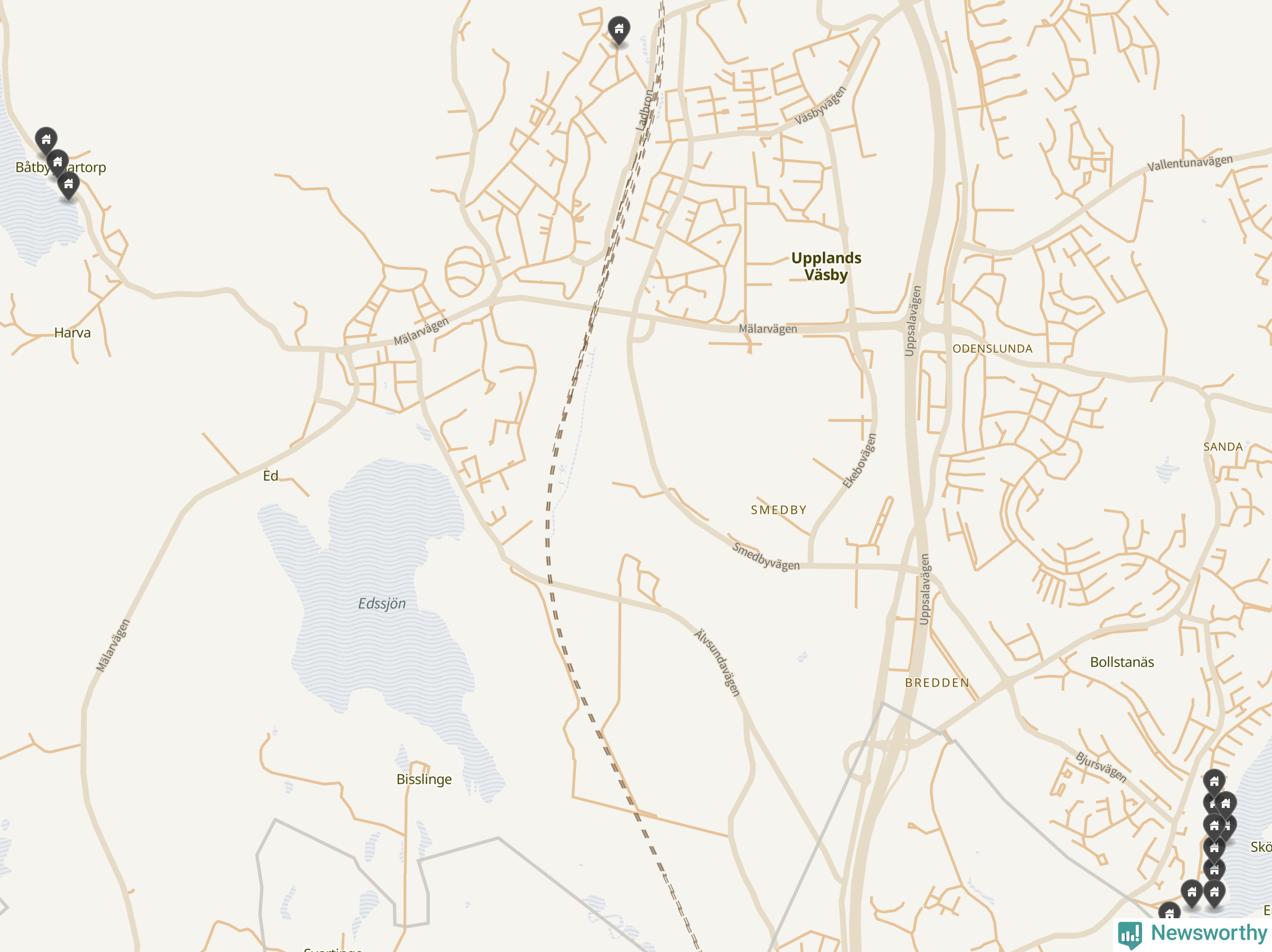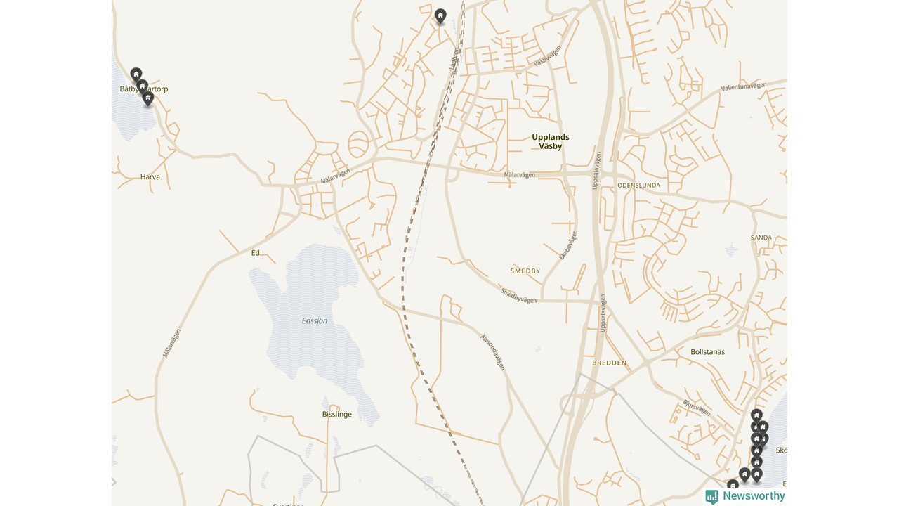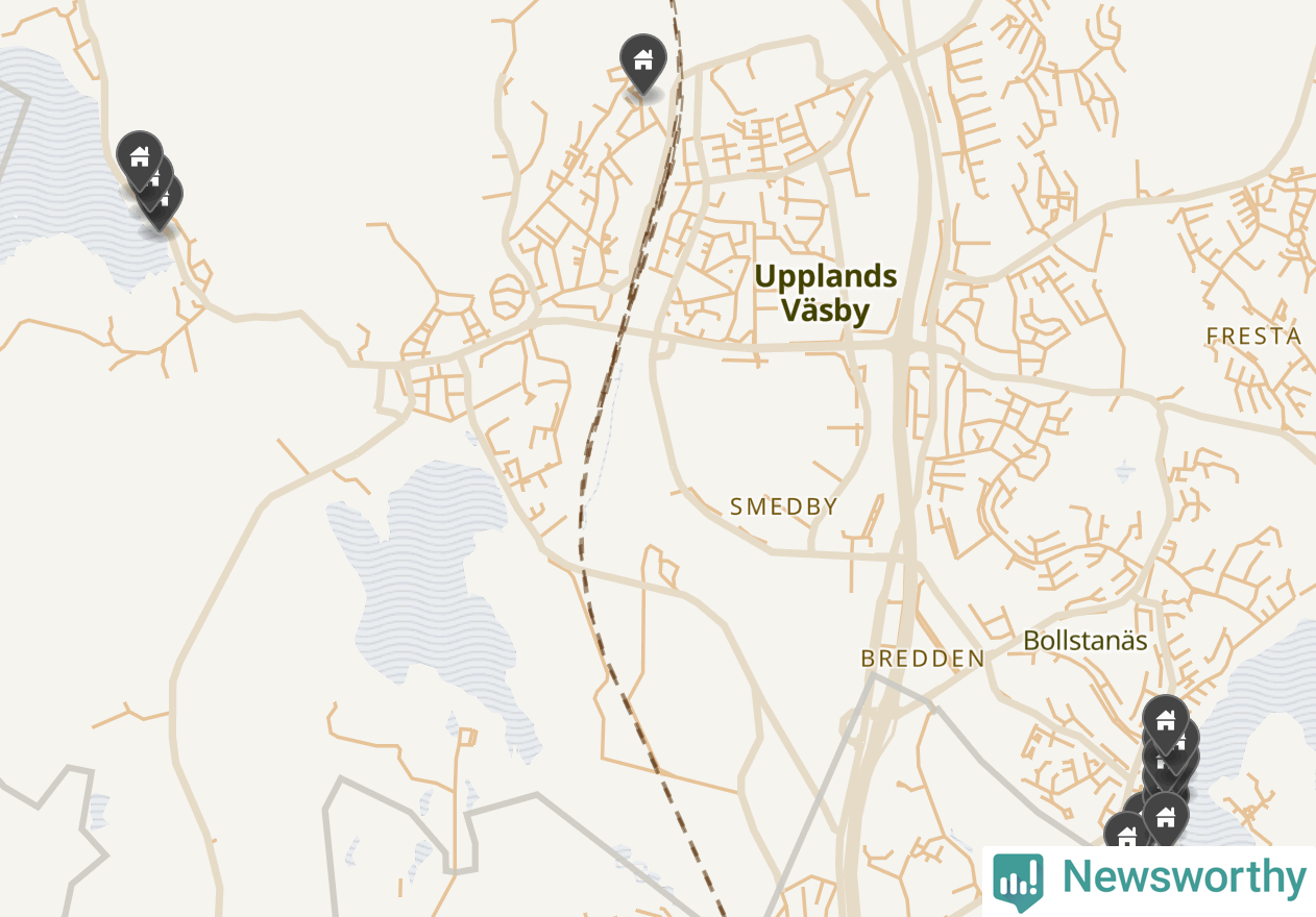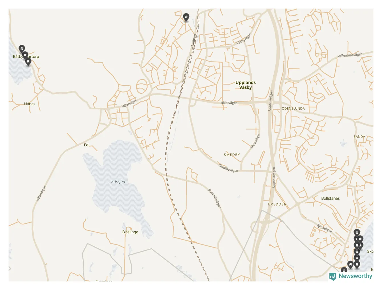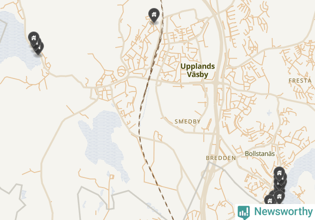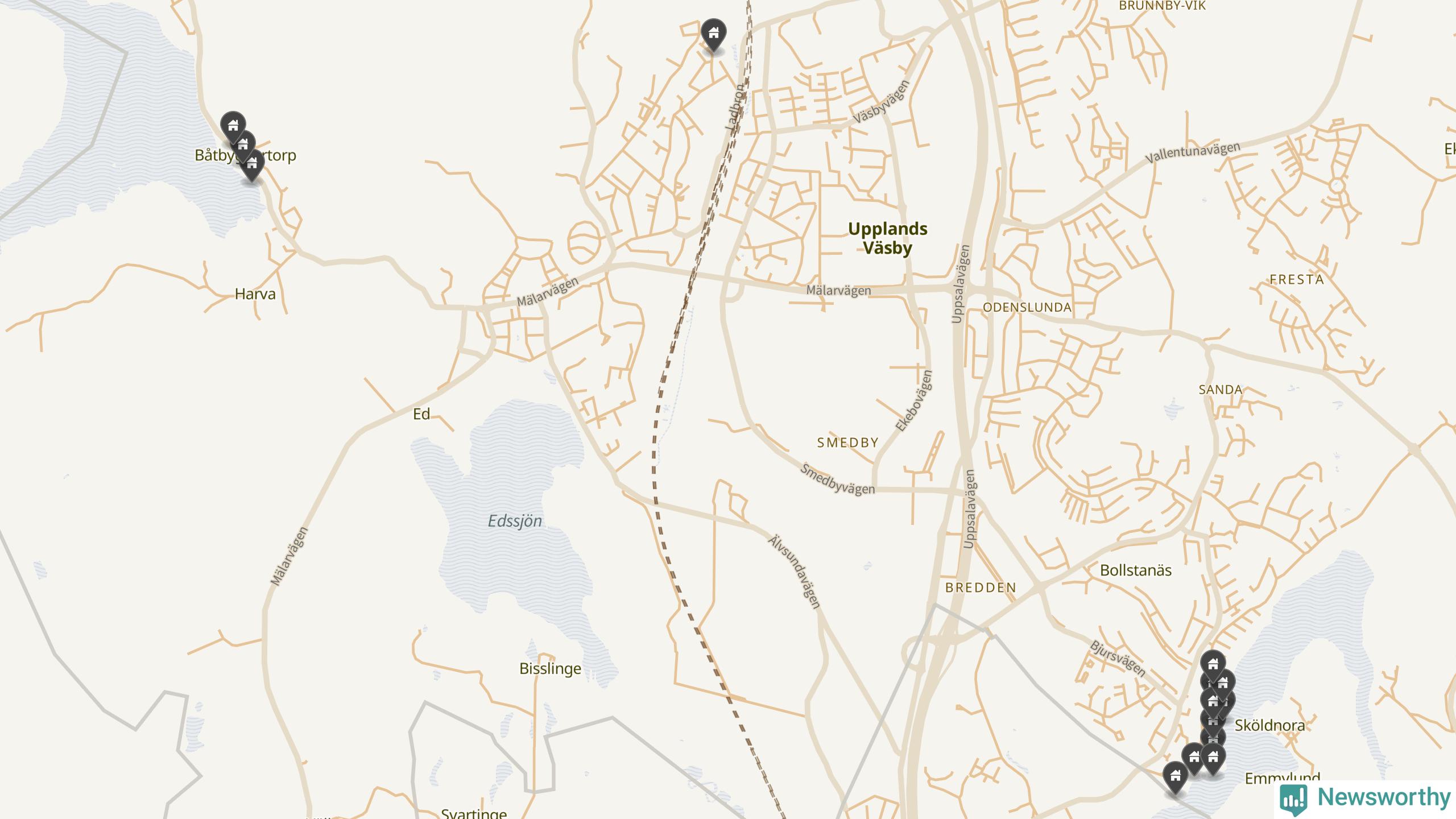 De 100 högst taxerade småhusfastigheterna i Upplands Väsby har ett snittvärde på 9,9 miljoner kronor, vilket är omkring fyra miljoner högre än snittet för alla kommuners 100 högst taxerade småhus. Det visar Newsworthys genomgång av kommunernas högst taxerade småhusfastigheter, som sammanställts med hjälp av data från The intelligence company.