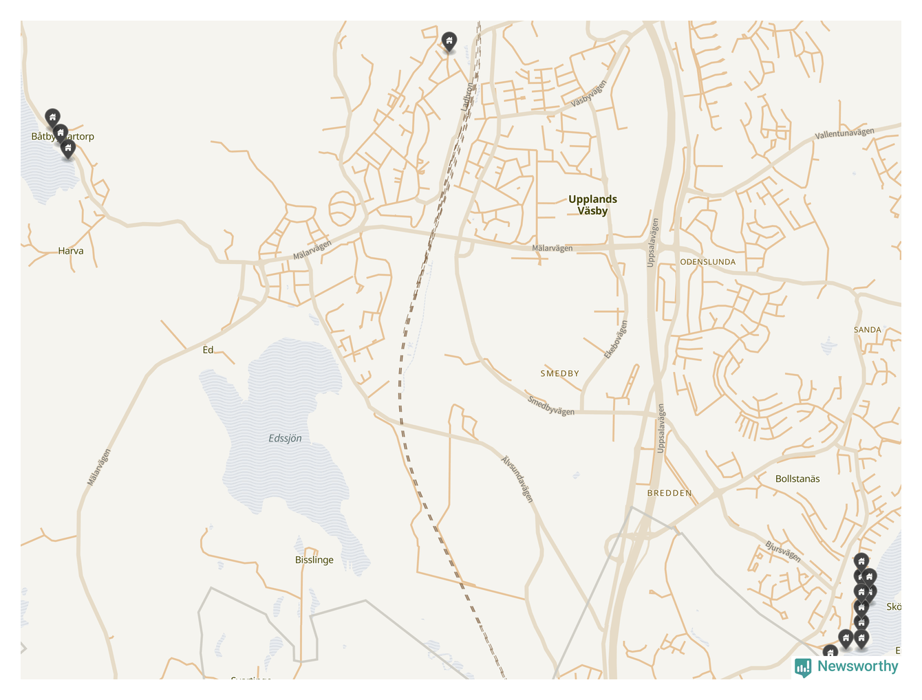 62 | Upplands Väsby Grimsta 59:3 | Sjövägen 1a | 9 miljoner | 1 241 m² | Visa |