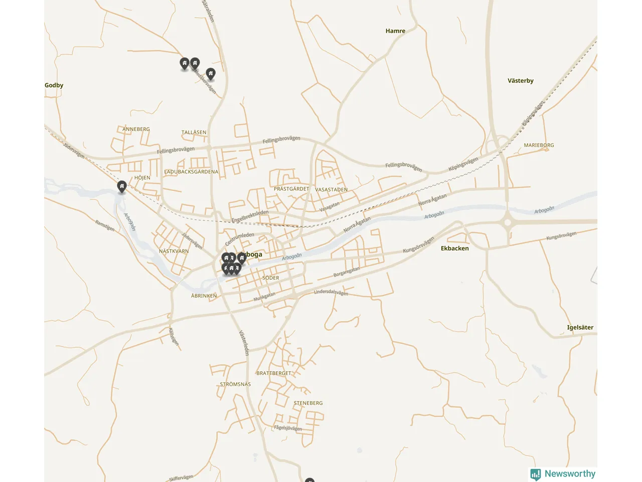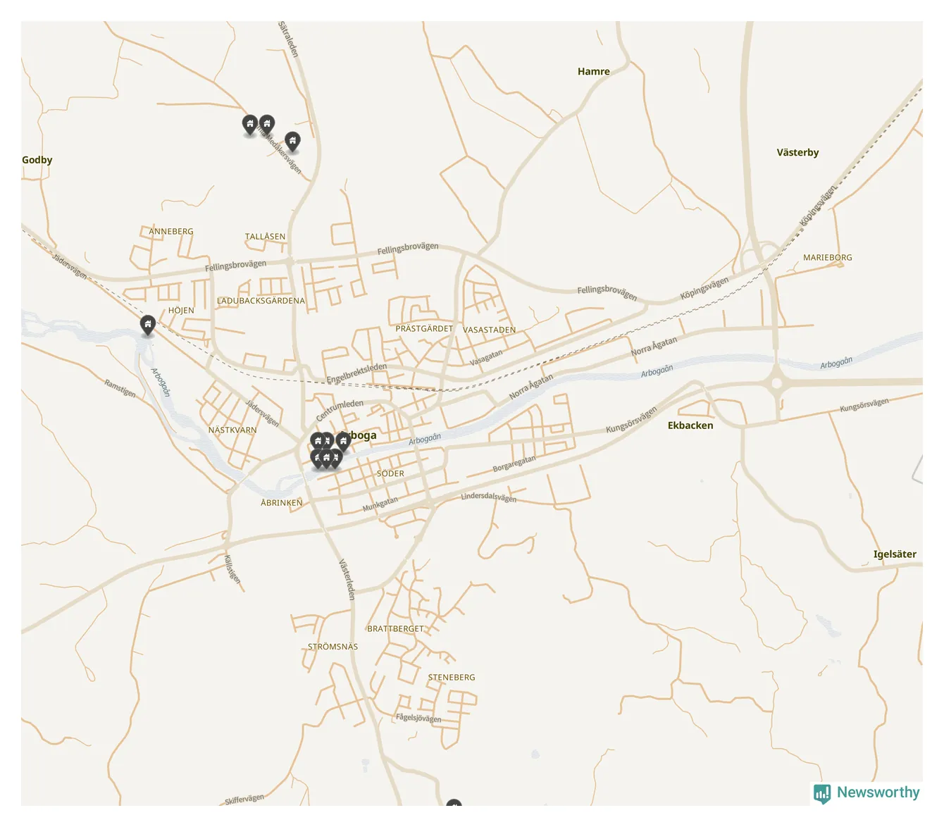 De 100 högst taxerade småhusfastigheterna i Arboga har ett snittvärde på 4,1 miljoner kronor, vilket är omkring två miljoner lägre än snittet för alla kommuners 100 högst taxerade småhus. Det visar Newsworthys genomgång av kommunernas högst taxerade småhusfastigheter, som sammanställts med hjälp av data från The intelligence company.