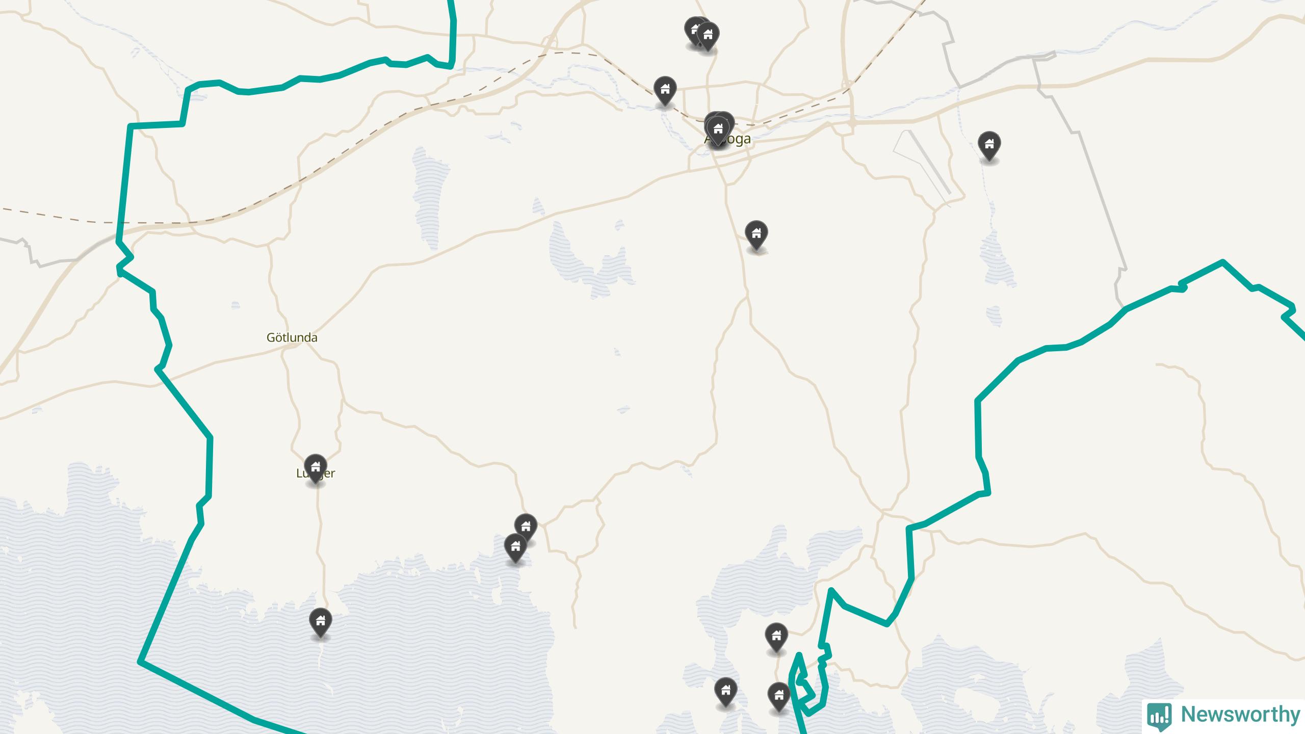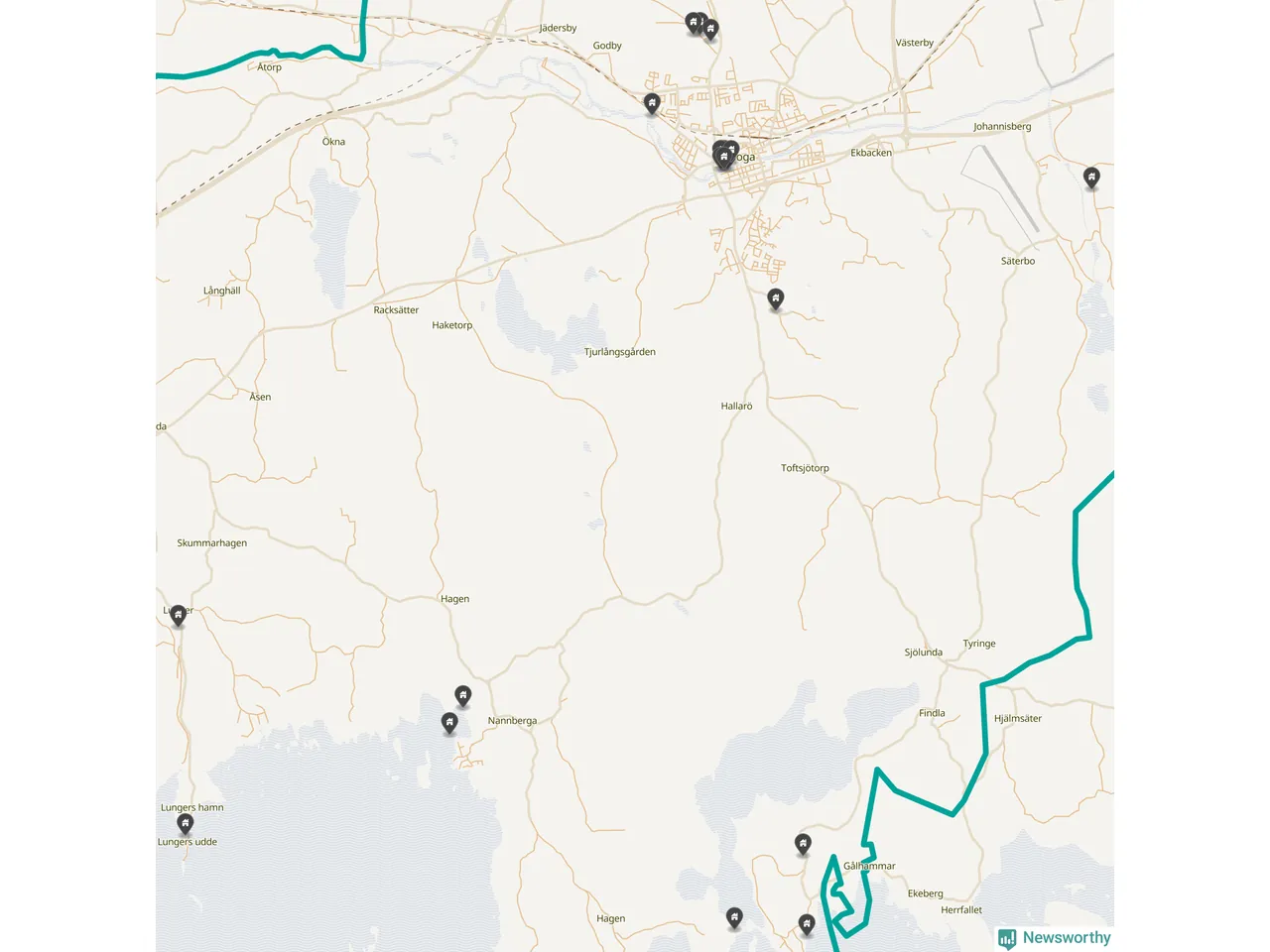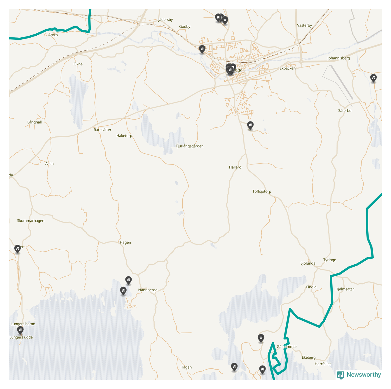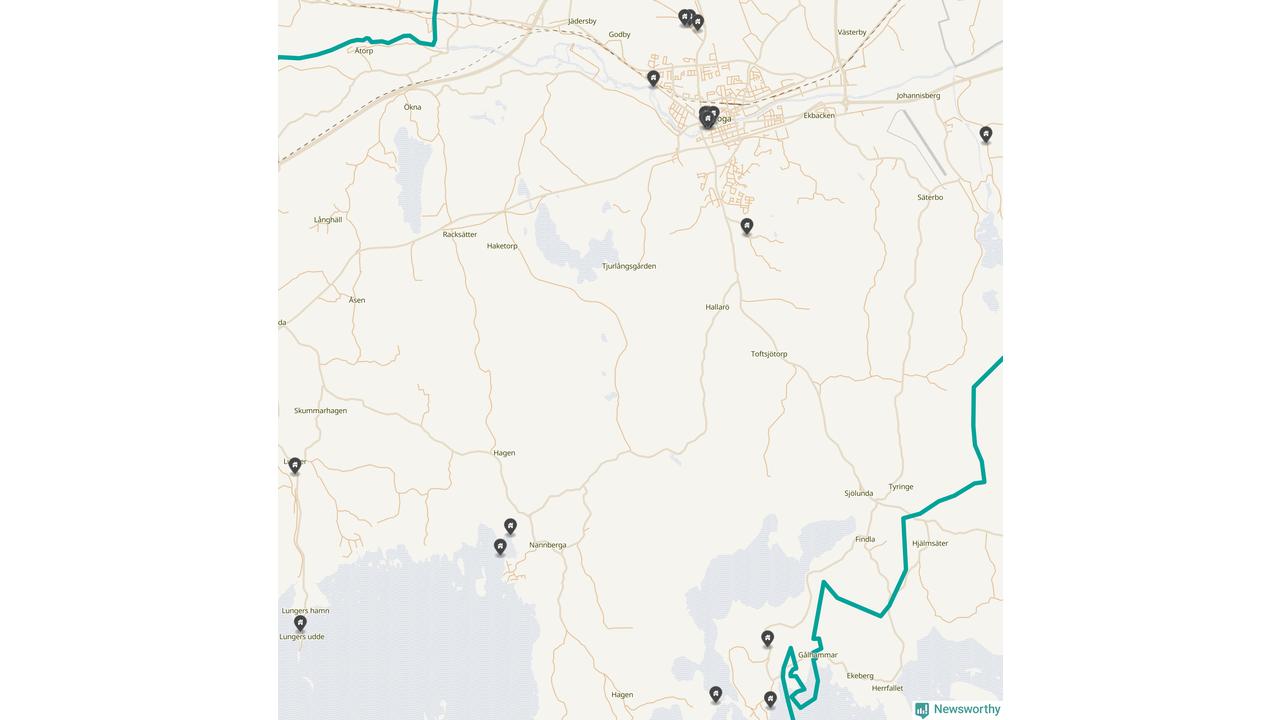 De 20 högst taxerade fastigheterna visas. En markör per fastighet. Samtaxerade fastigheter visas bara en gång. Notera att det är centrumpunkten för fastigheten som visas, vilket kan vara missvisande för stora fastigheter.