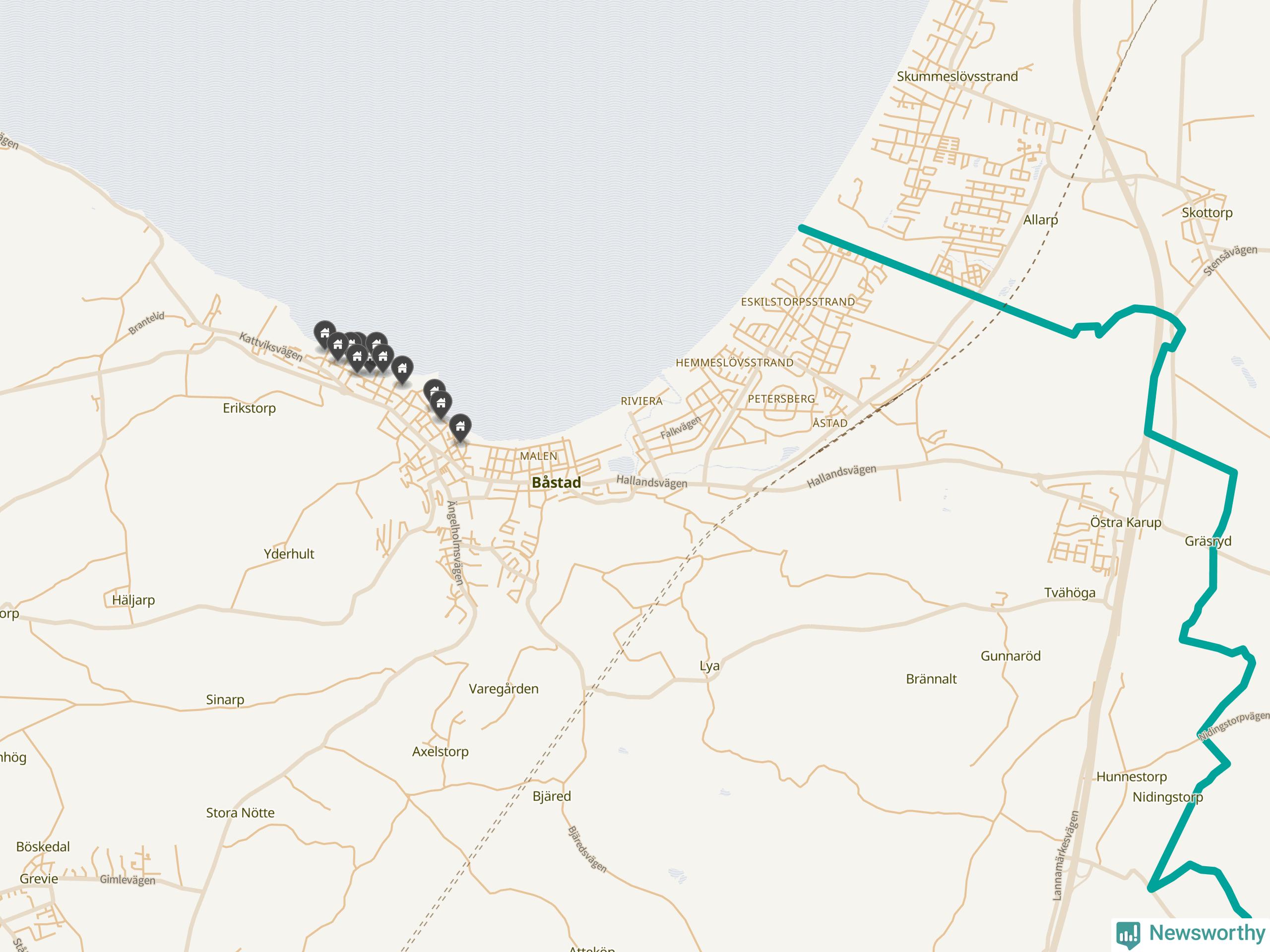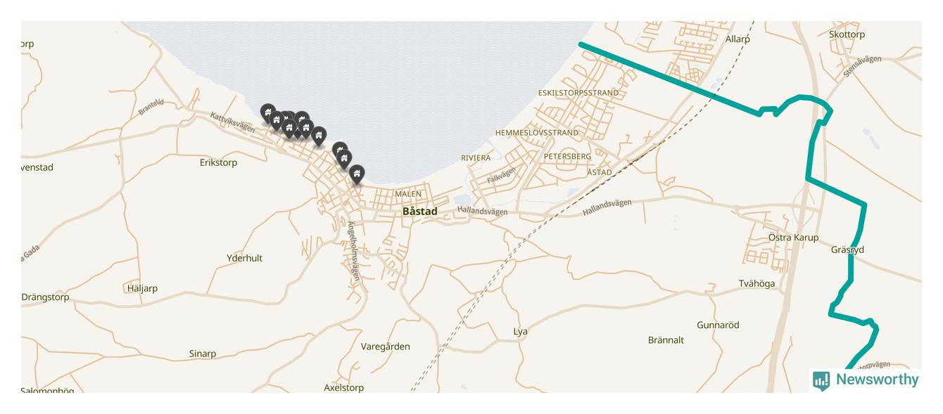 De 100 högst taxerade småhusfastigheterna i Båstad har ett snittvärde på 17,2 miljoner kronor, vilket är omkring elva miljoner högre än snittet för alla kommuners 100 högst taxerade småhus. Det visar Newsworthys genomgång av kommunernas högst taxerade småhusfastigheter, som sammanställts med hjälp av data från The intelligence company.