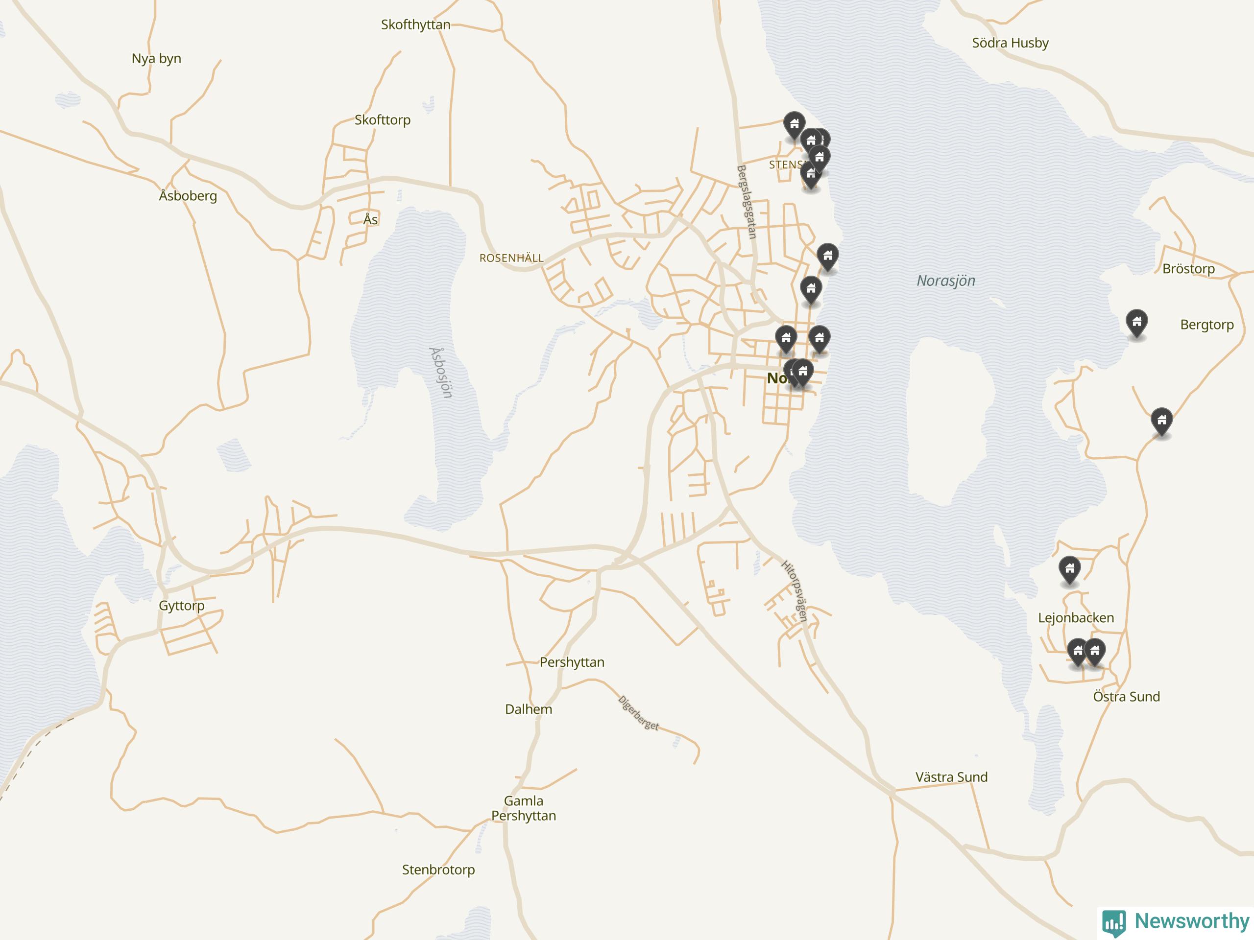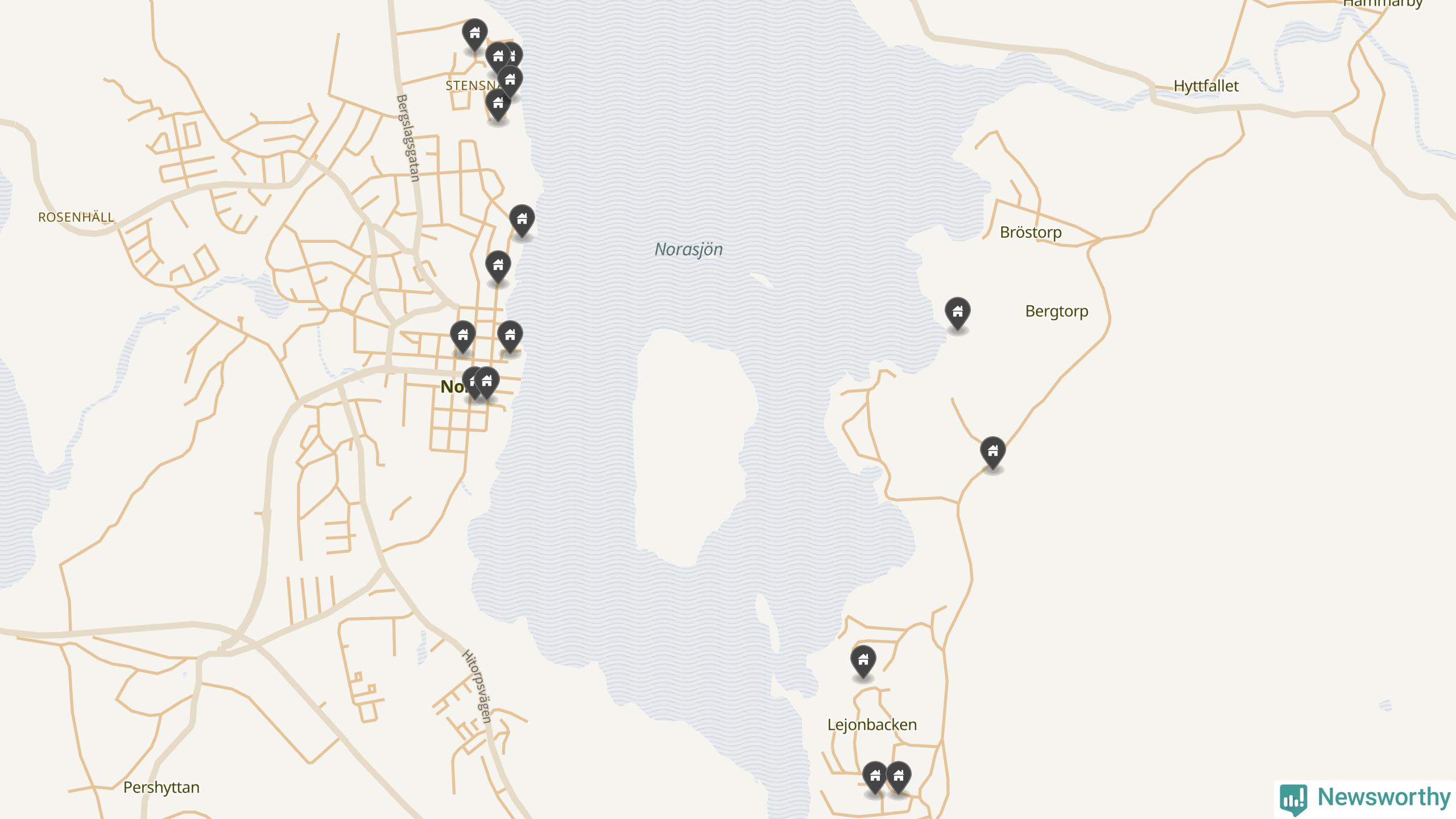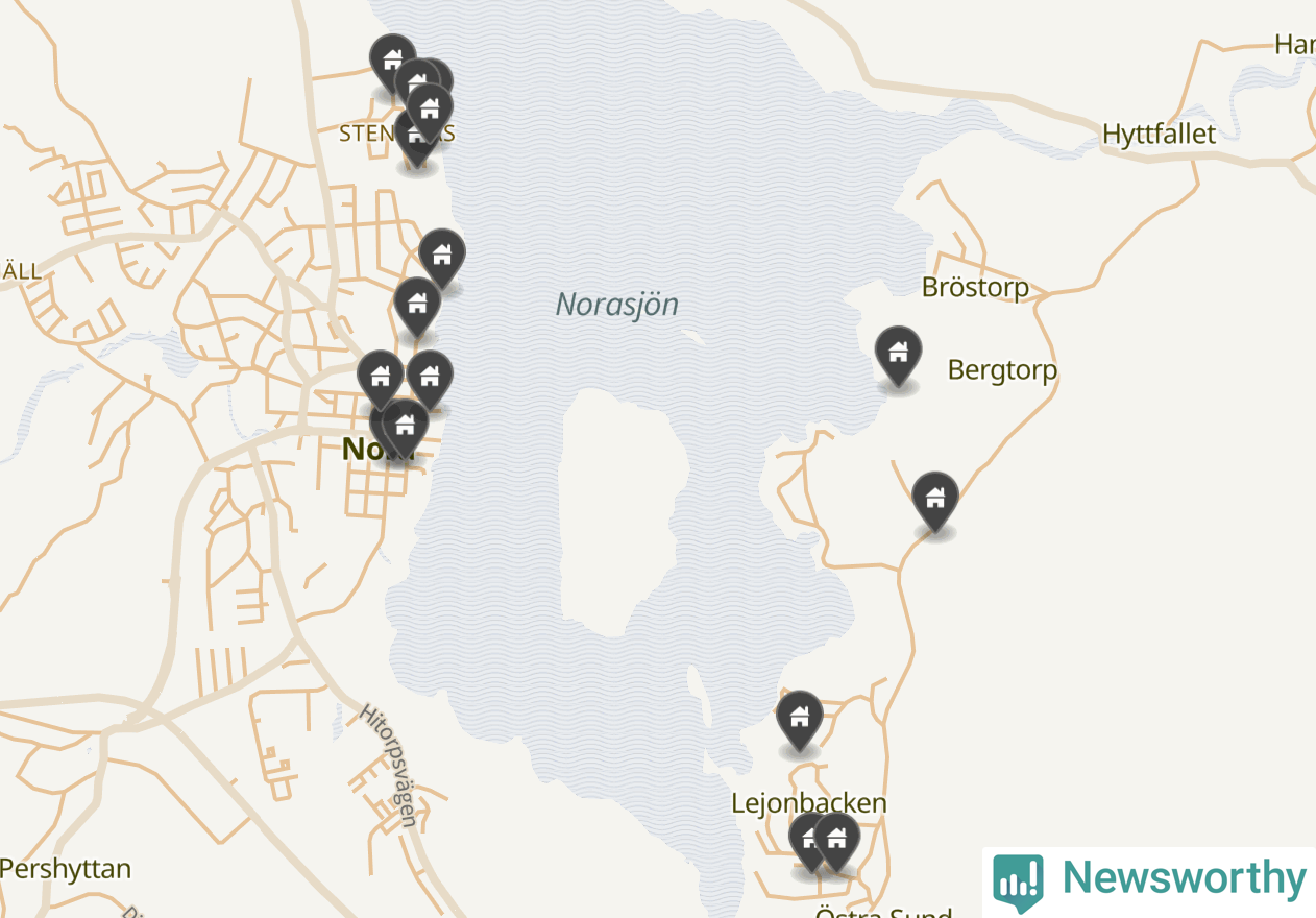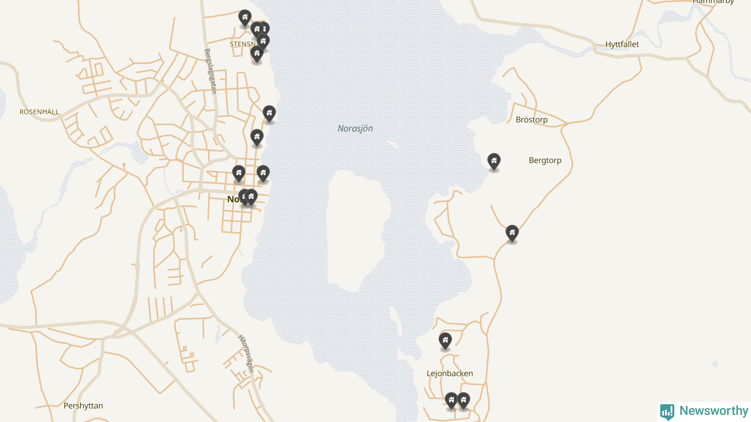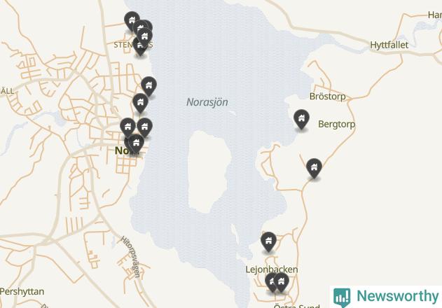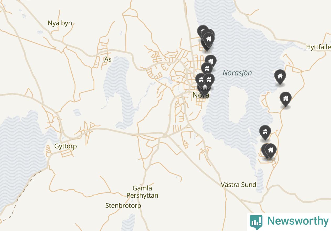 De 100 högst taxerade småhusfastigheterna i Nora har ett snittvärde på 3,6 miljoner kronor, vilket är omkring två miljoner lägre än snittet för alla kommuners 100 högst taxerade småhus. Det visar Newsworthys genomgång av kommunernas högst taxerade småhusfastigheter, som sammanställts med hjälp av data från The intelligence company.