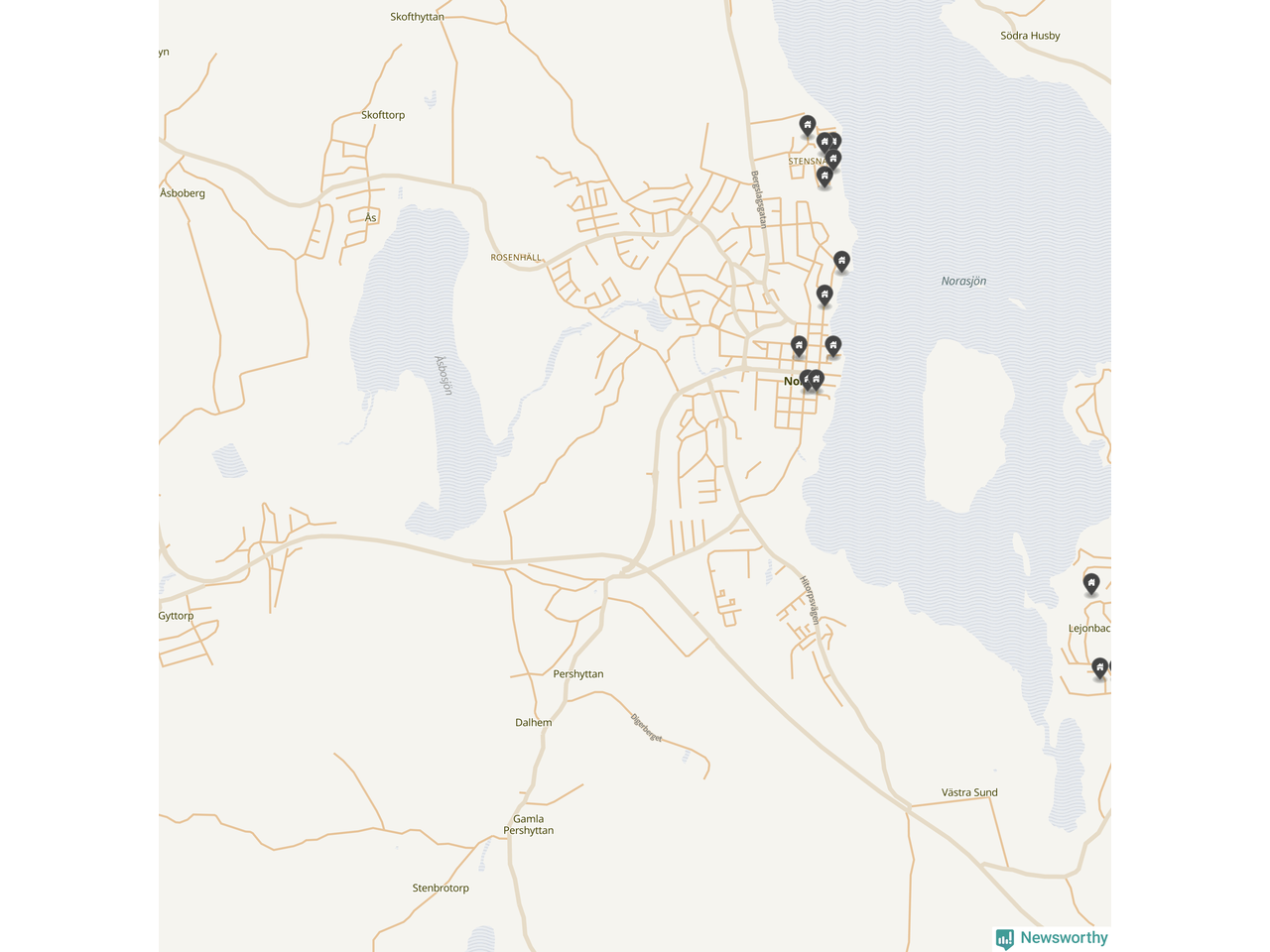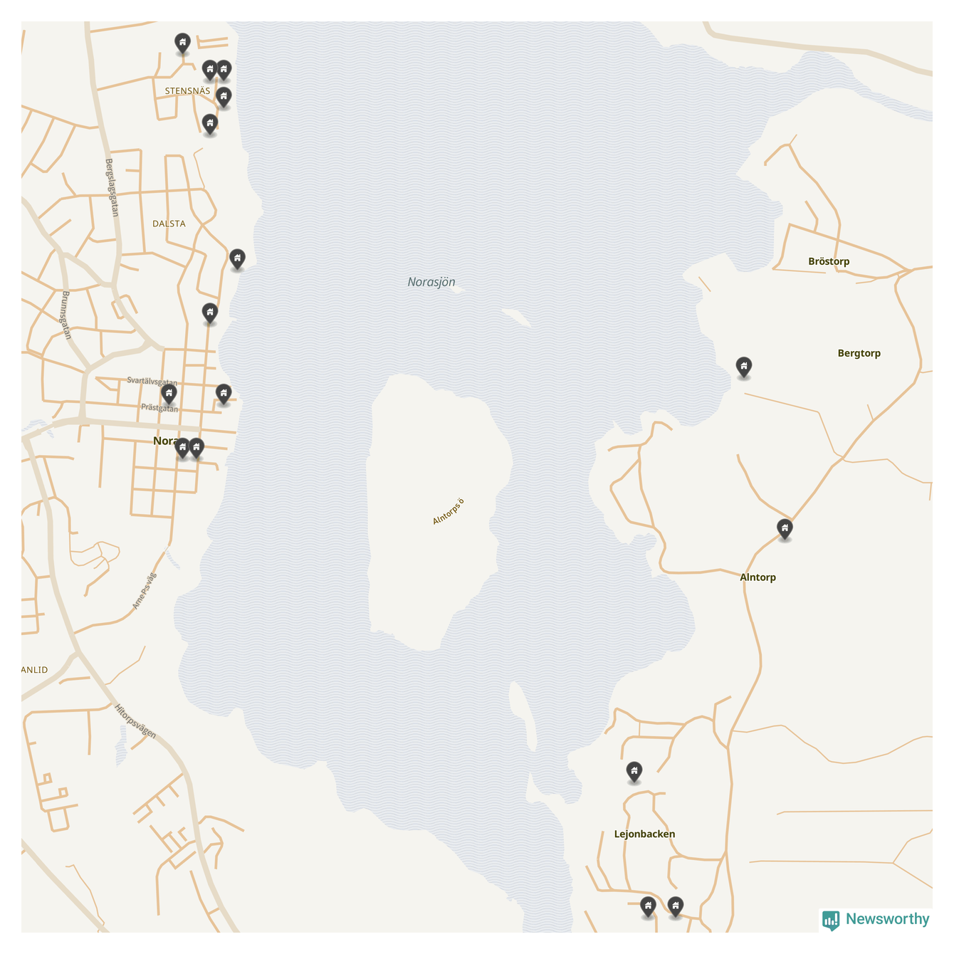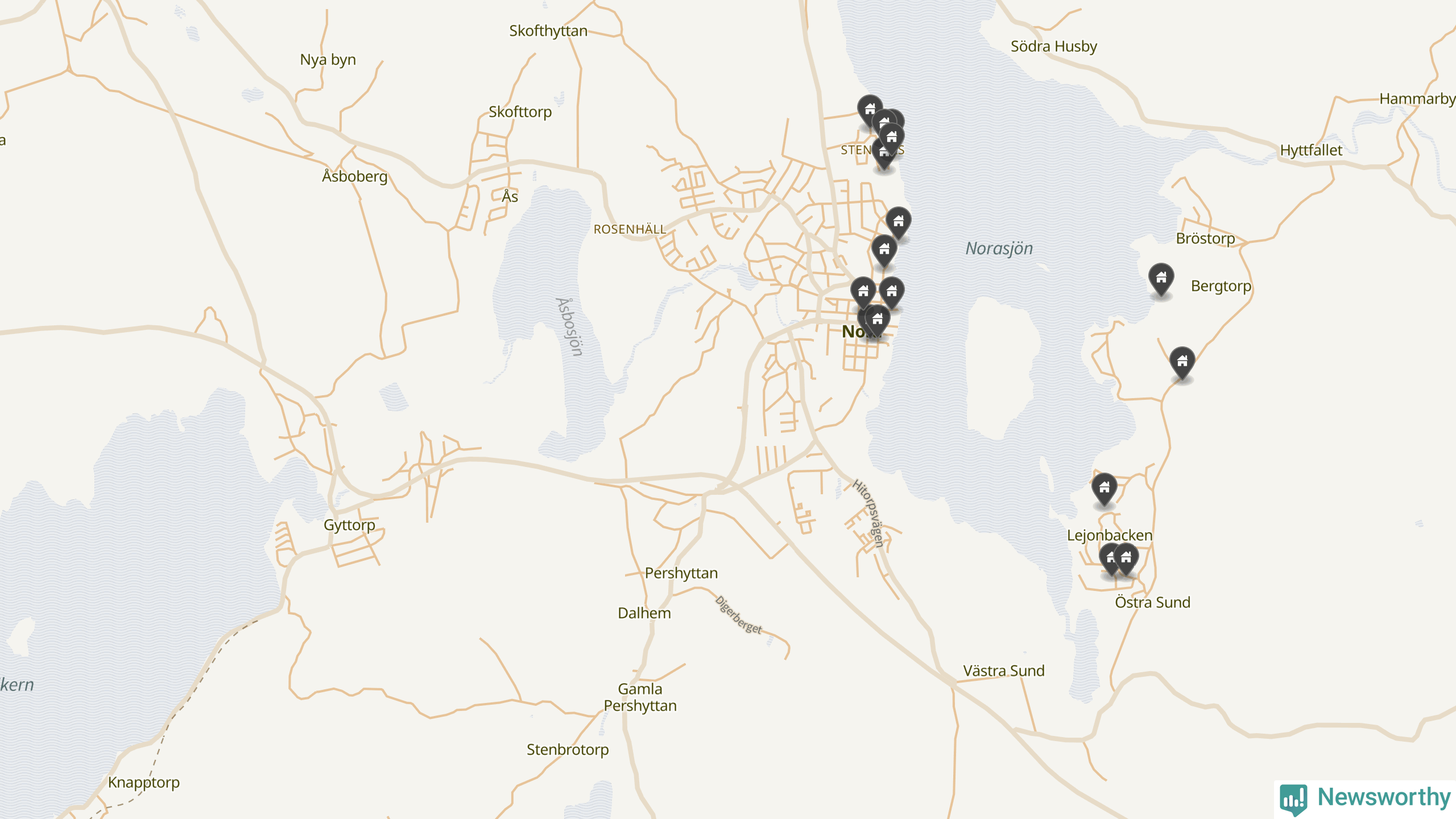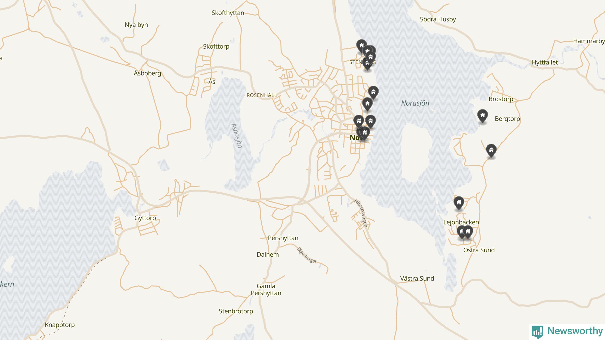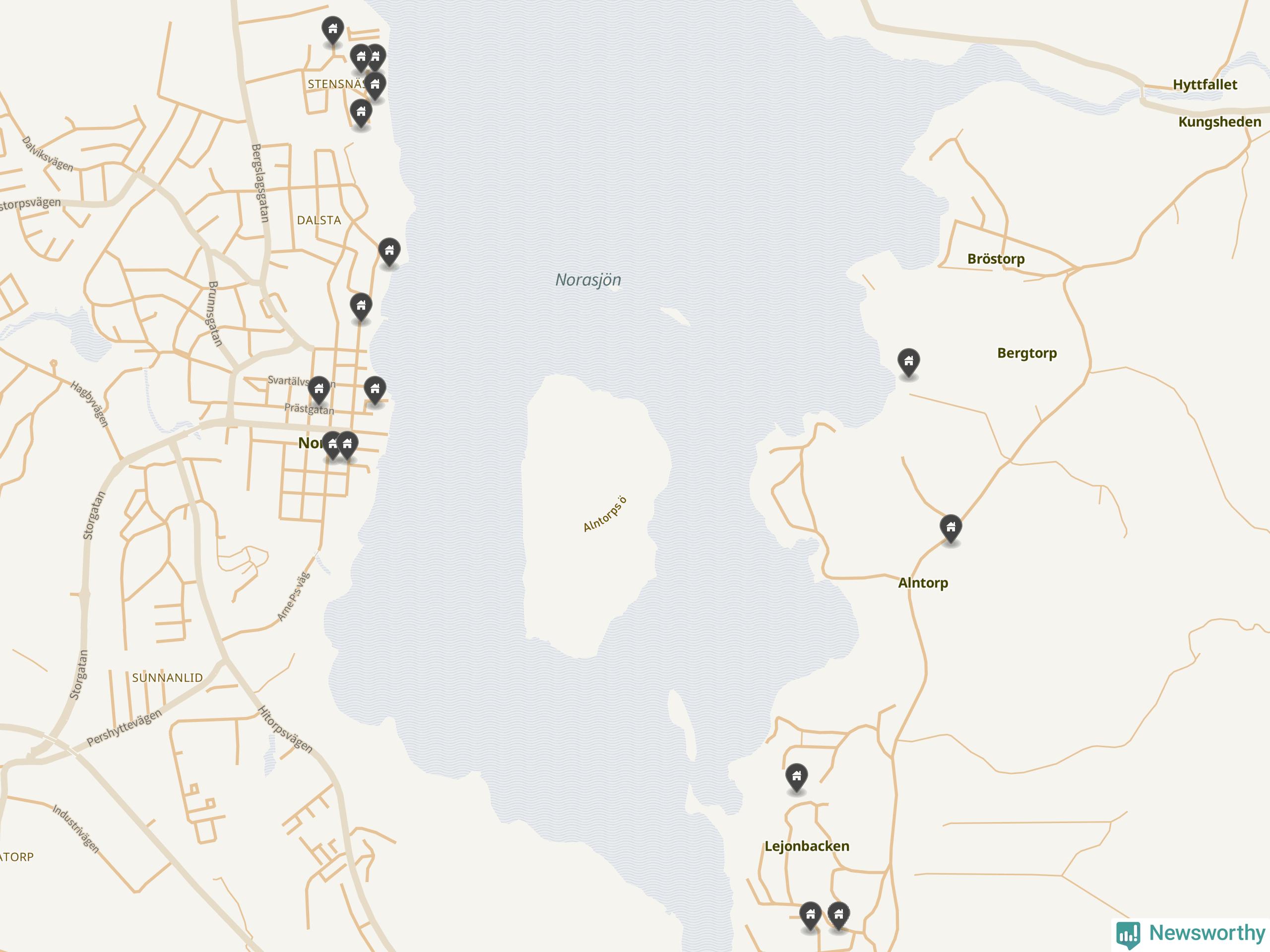 De 100 högst taxerade småhusfastigheterna i Nora har ett snittvärde på 3,6 miljoner kronor, vilket är omkring två miljoner lägre än snittet för alla kommuners 100 högst taxerade småhus. Det visar Newsworthys genomgång av kommunernas högst taxerade småhusfastigheter, som sammanställts med hjälp av data från The intelligence company.