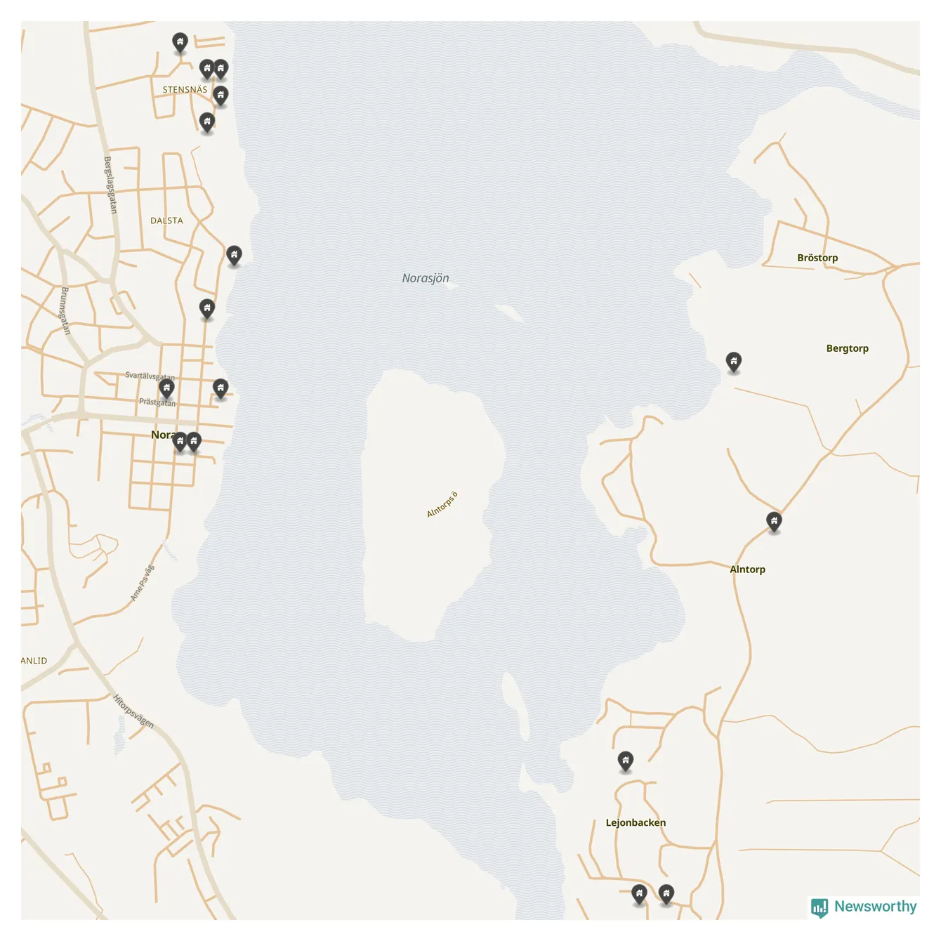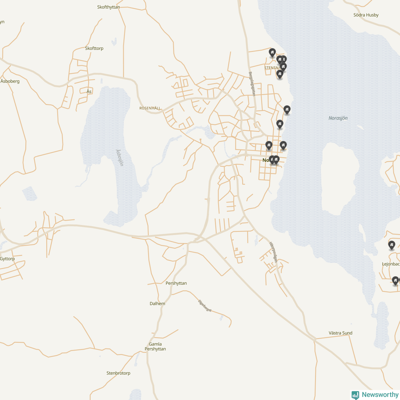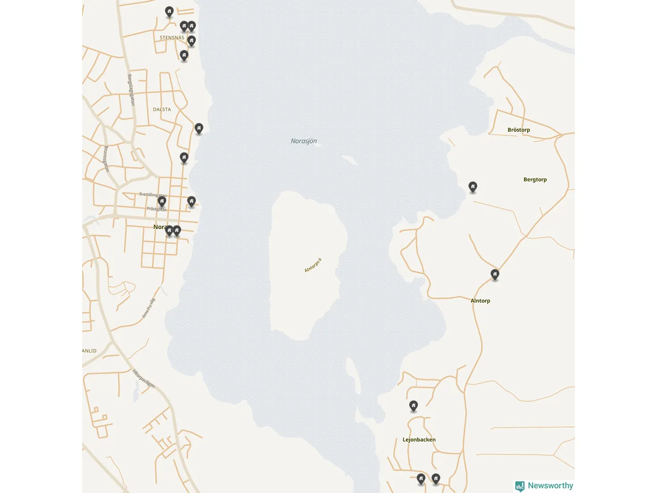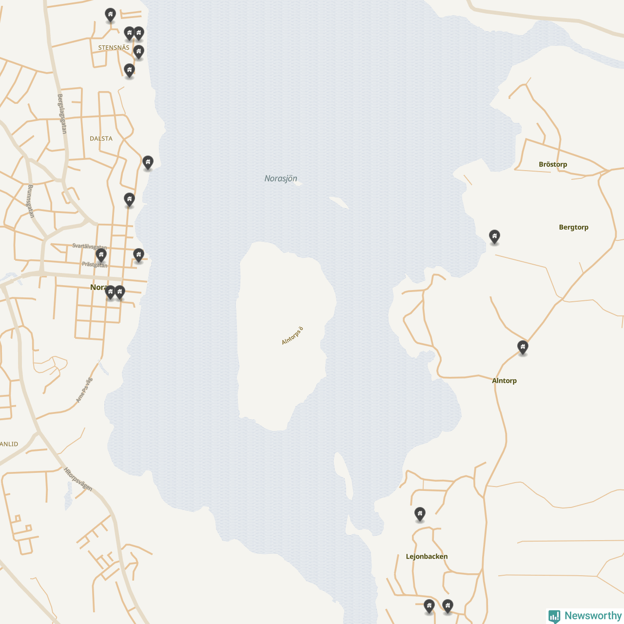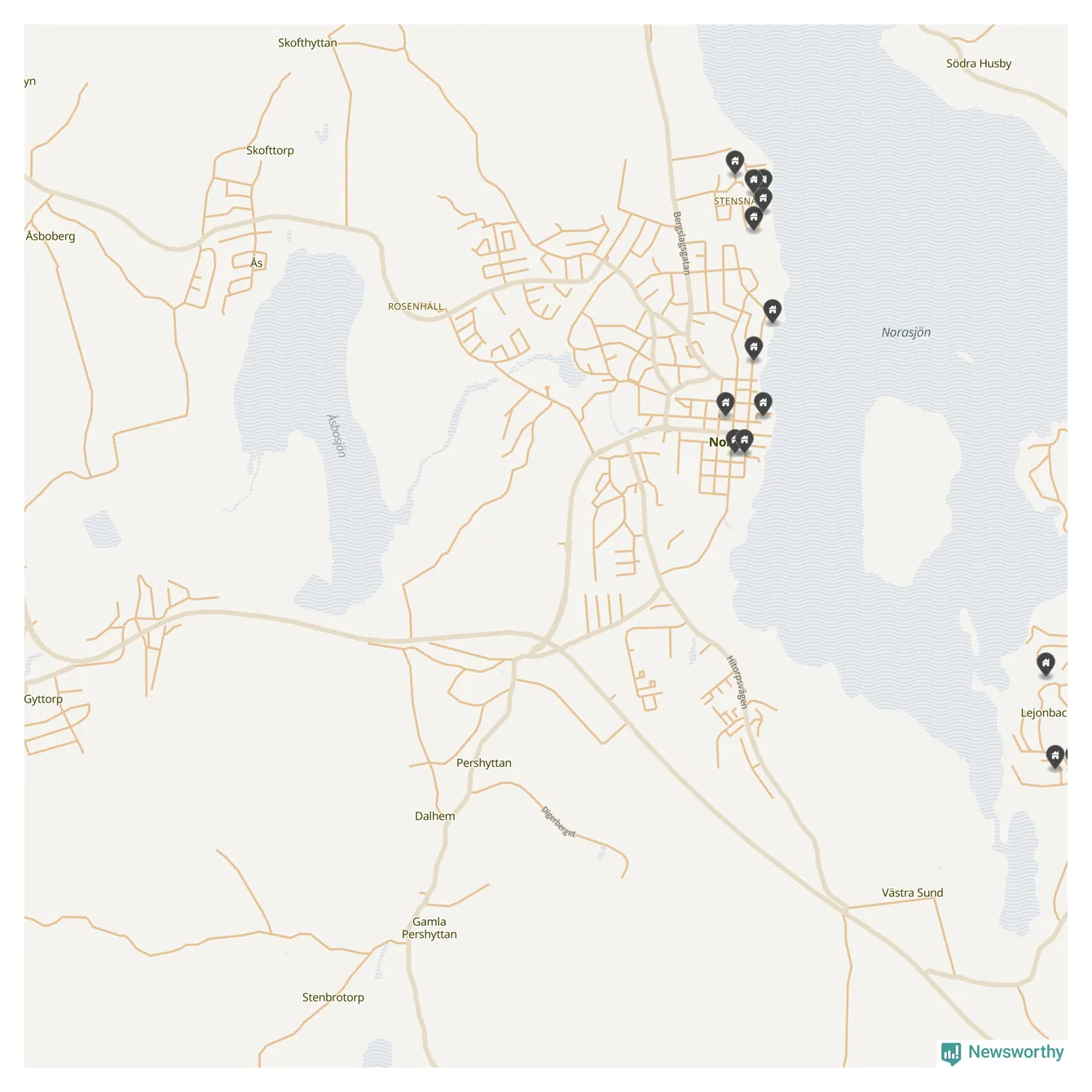 De 100 högst taxerade småhusfastigheterna i Nora har ett snittvärde på 3,6 miljoner kronor, vilket är omkring två miljoner lägre än snittet för alla kommuners 100 högst taxerade småhus. Det visar Newsworthys genomgång av kommunernas högst taxerade småhusfastigheter, som sammanställts med hjälp av data från The intelligence company.