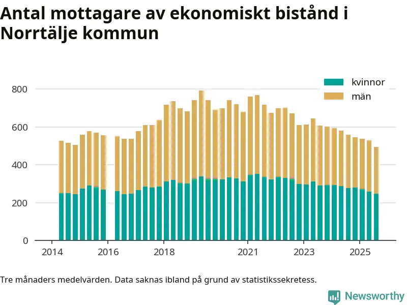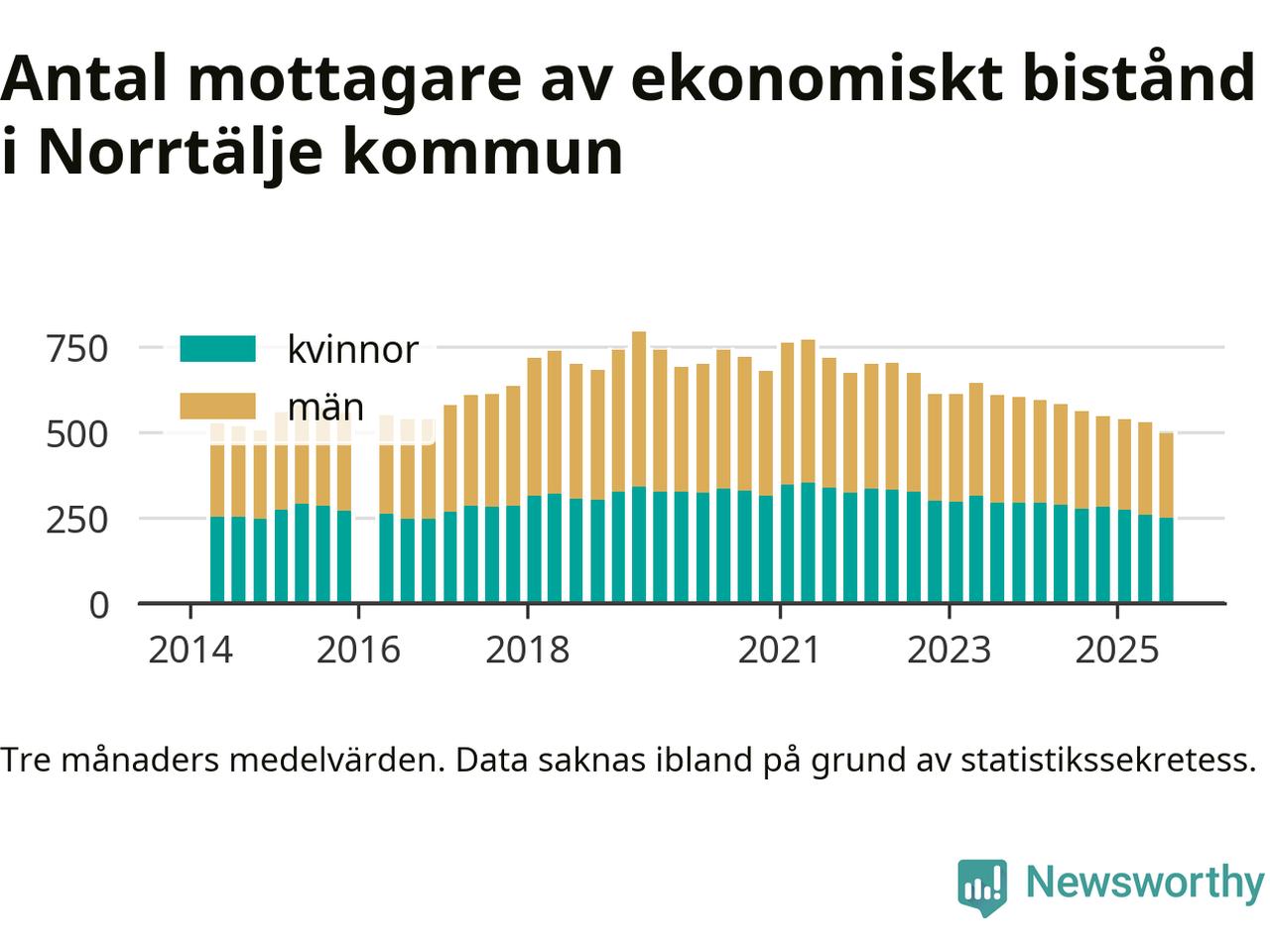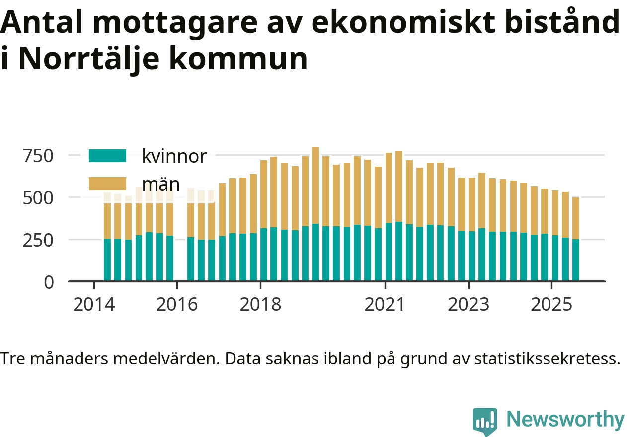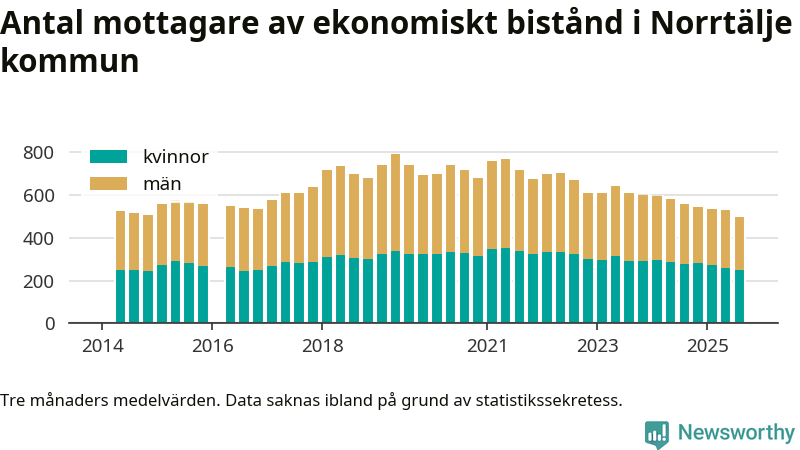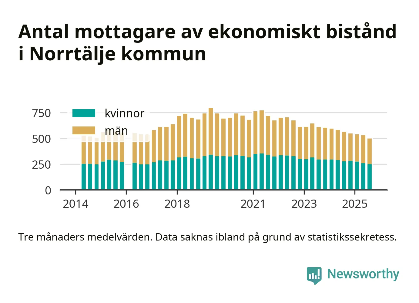 Andelen invånare med ekonomiskt bistånd i Norrtälje kommun var under sommaren den lägsta sedan åtminstone 2014. Det visar den senaste, preliminära statistiken från Socialstyrelsen.