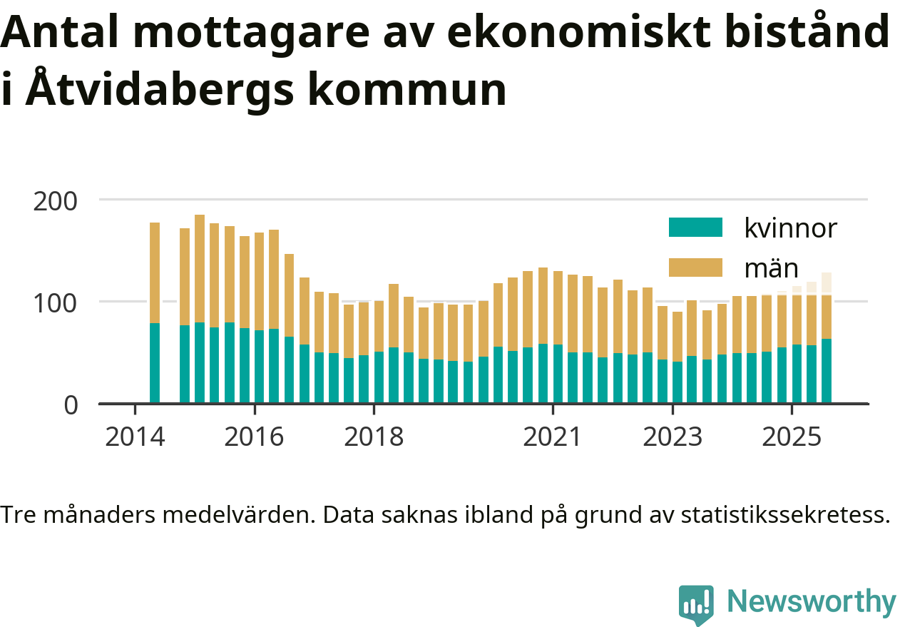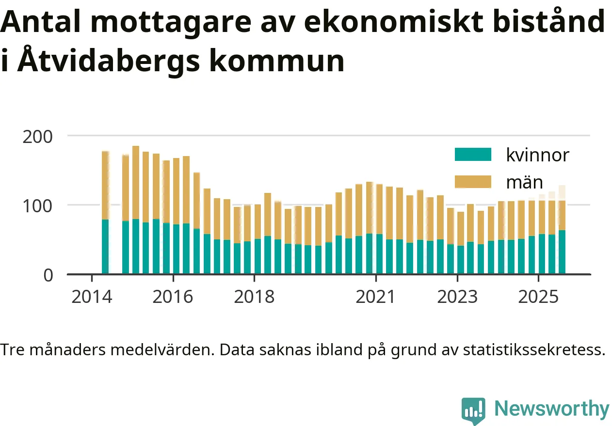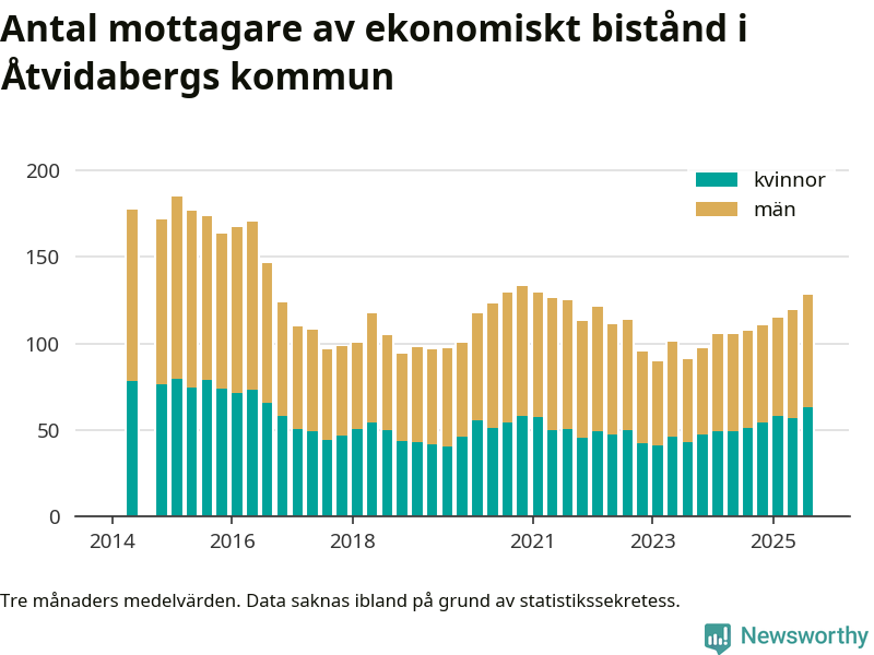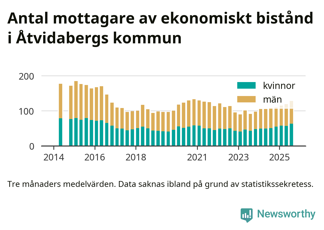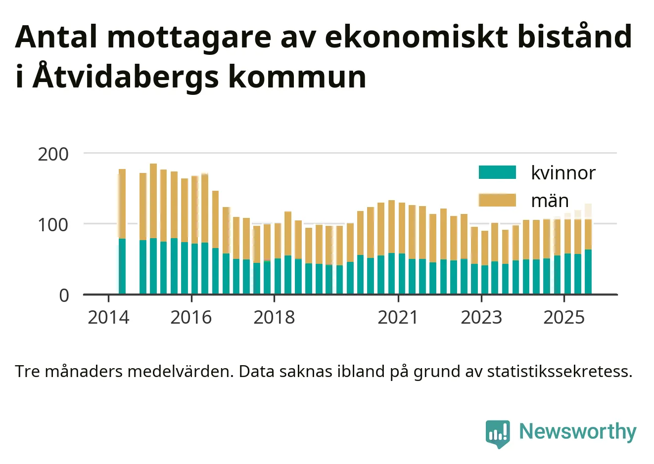 I genomsnitt 128 personer per månad fick ekonomiskt bistånd i Åtvidabergs kommun